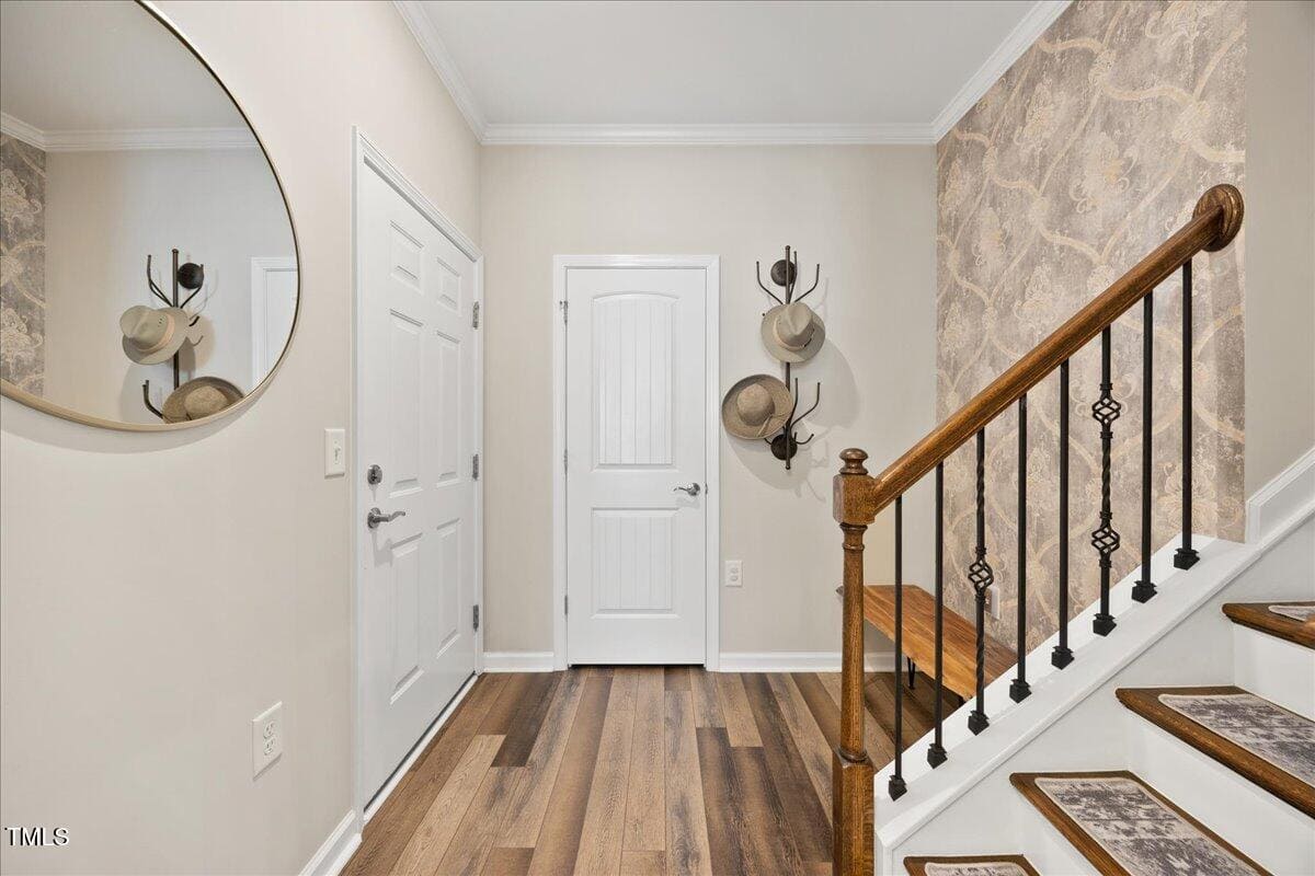 This gorgeous home has upgrades galore! You are greeted by a wide, welcoming foyer with custom trim throughout the entire 1st floor of the home! Buyers who are senitive to allergies or who have pets will enjoy the ease of LVP floors throughout the entire home. The home has a nice size guest suite on the main floor with beautiful designer wallpaper for an elevated look. The full bathroom features a walk-in shower with tile walls & floors. The designated home office has french doors for privacy. Enjoy gorgeous, custom designed window treatments throughout many areas of the home. The large family room is anchored by a pretty corner fireplace. The open floor plan makes cooking & entertaining seamless.