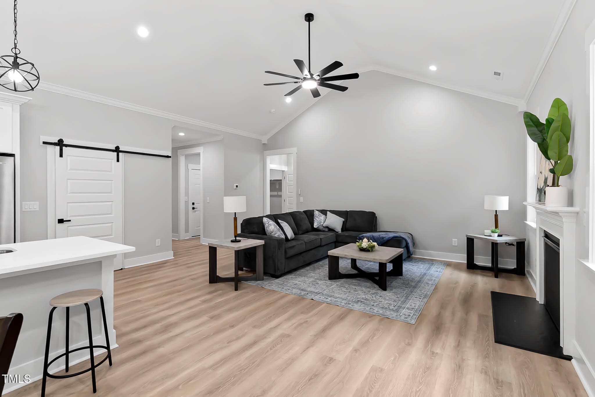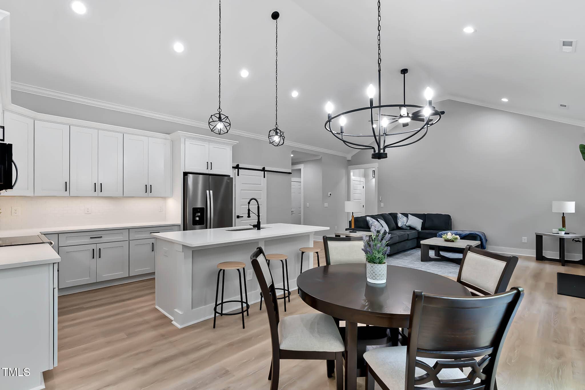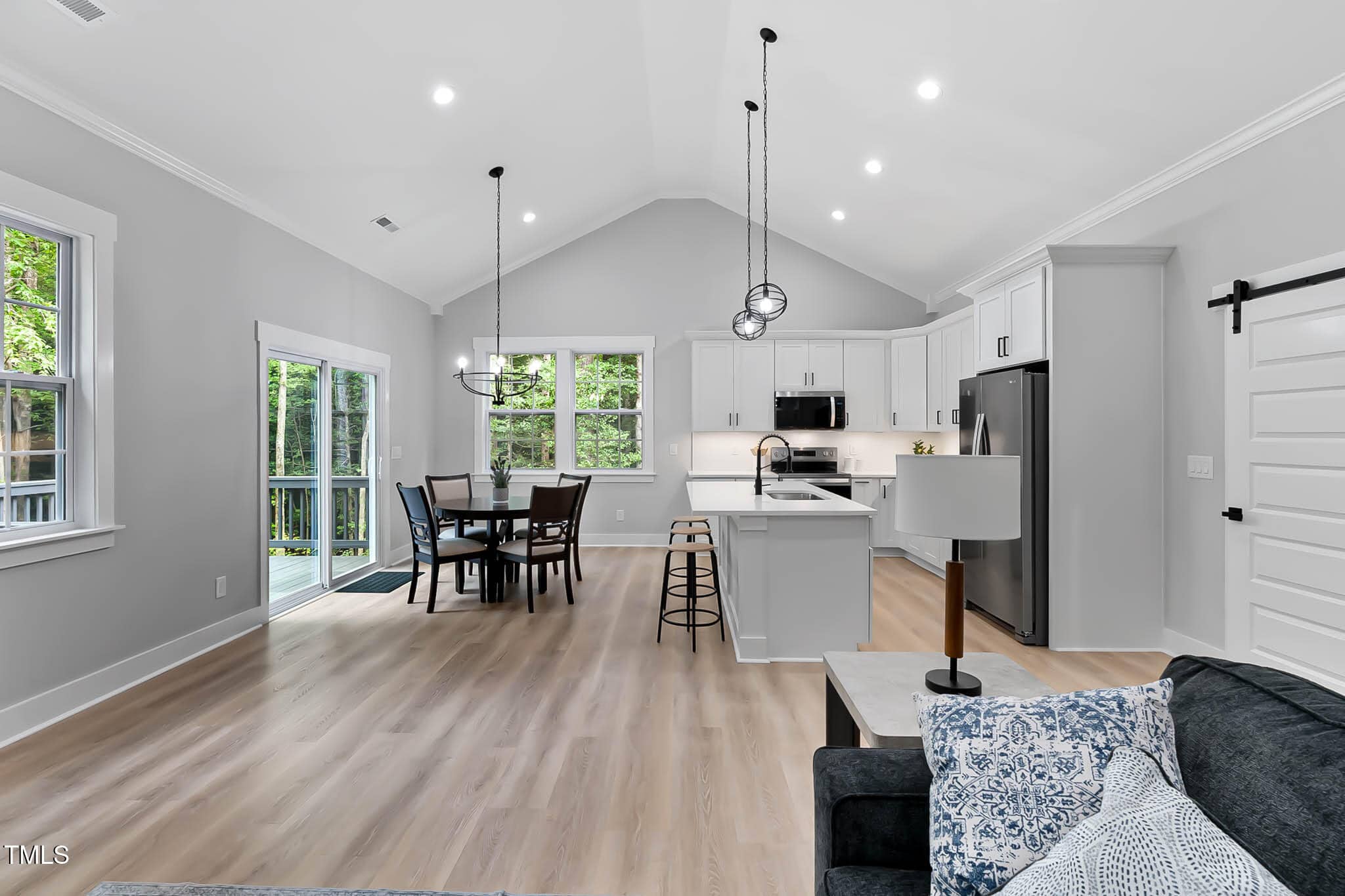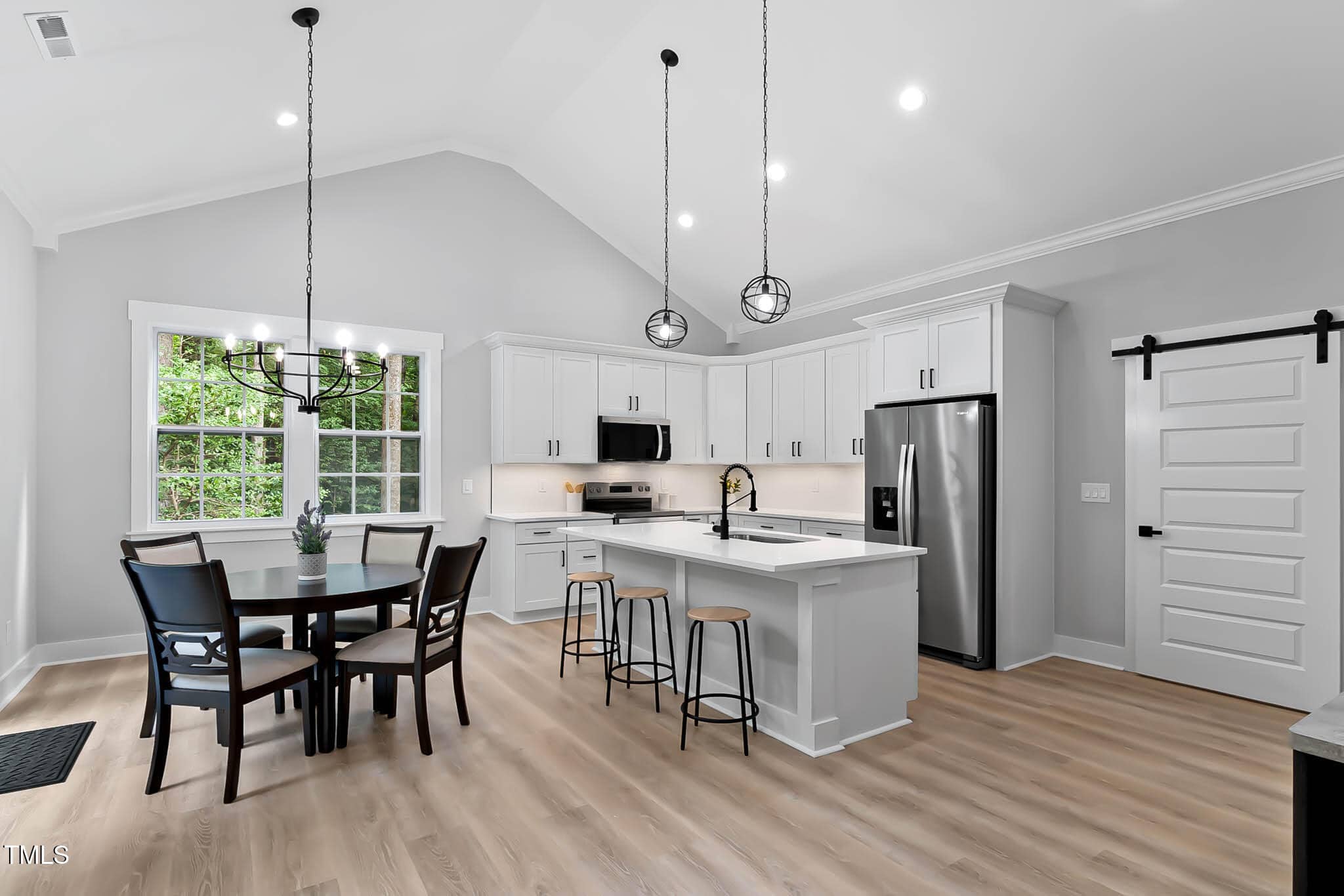 The splendid great room and casual dining room are central and bright, spacious concrete patio, and beautifully designed kitchen offering a large center island with breakfast bar, plenty of custom cabinetry, and barn style walk-in pantry. Kitchen package includes all stainless-steel appliances.