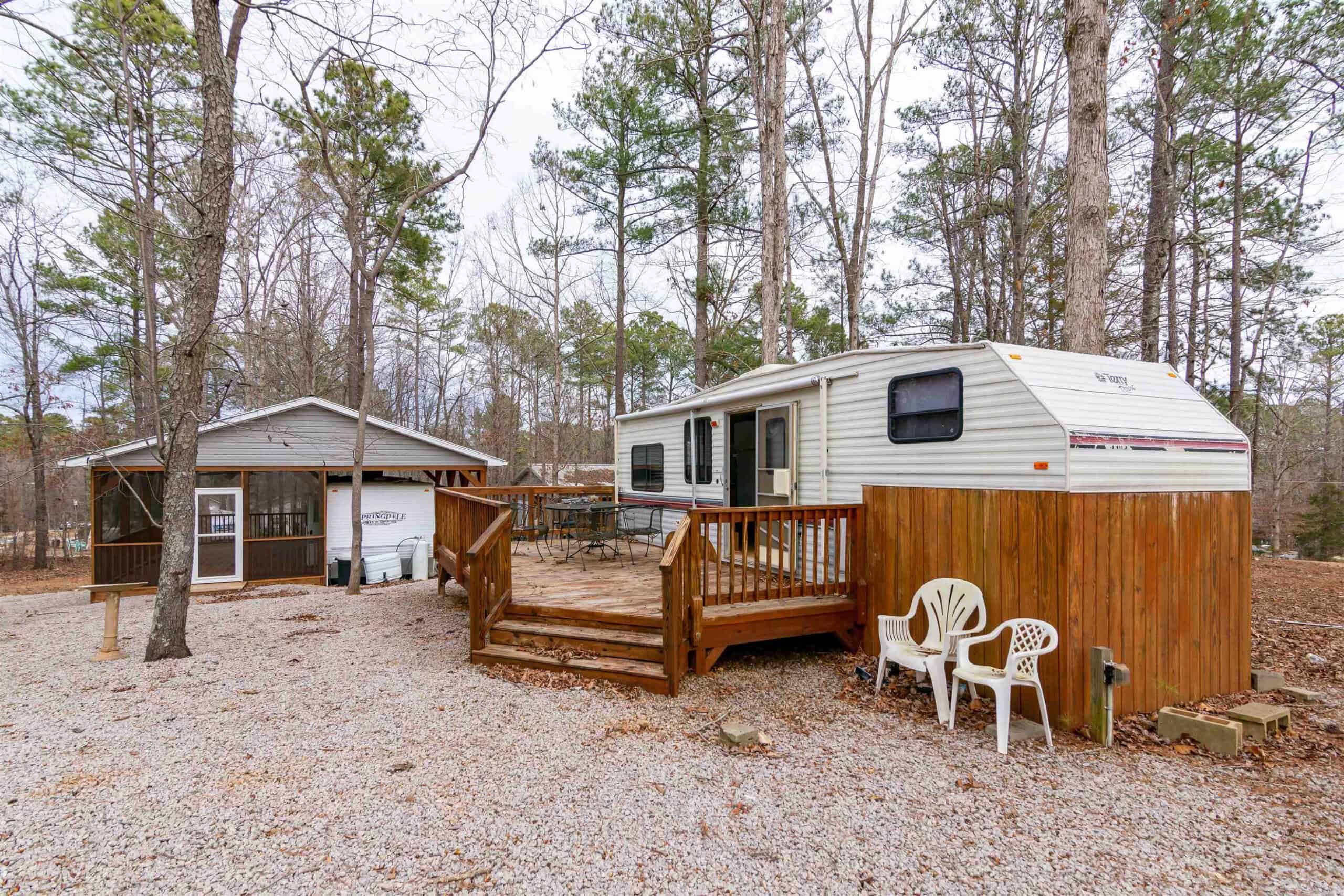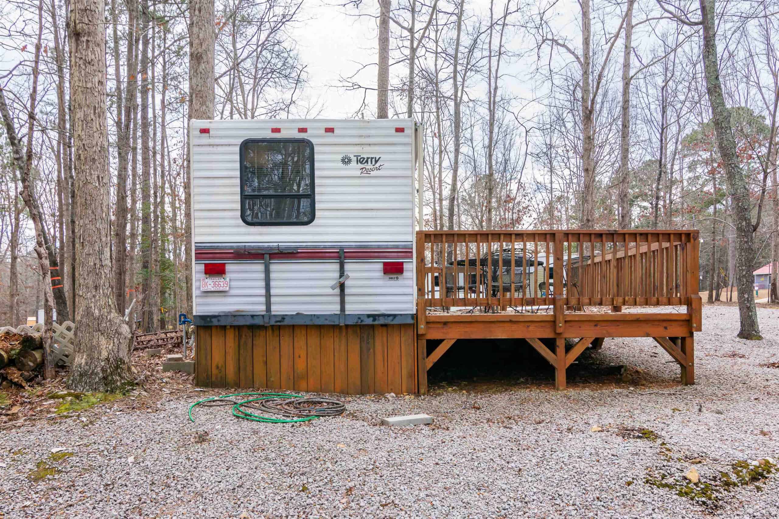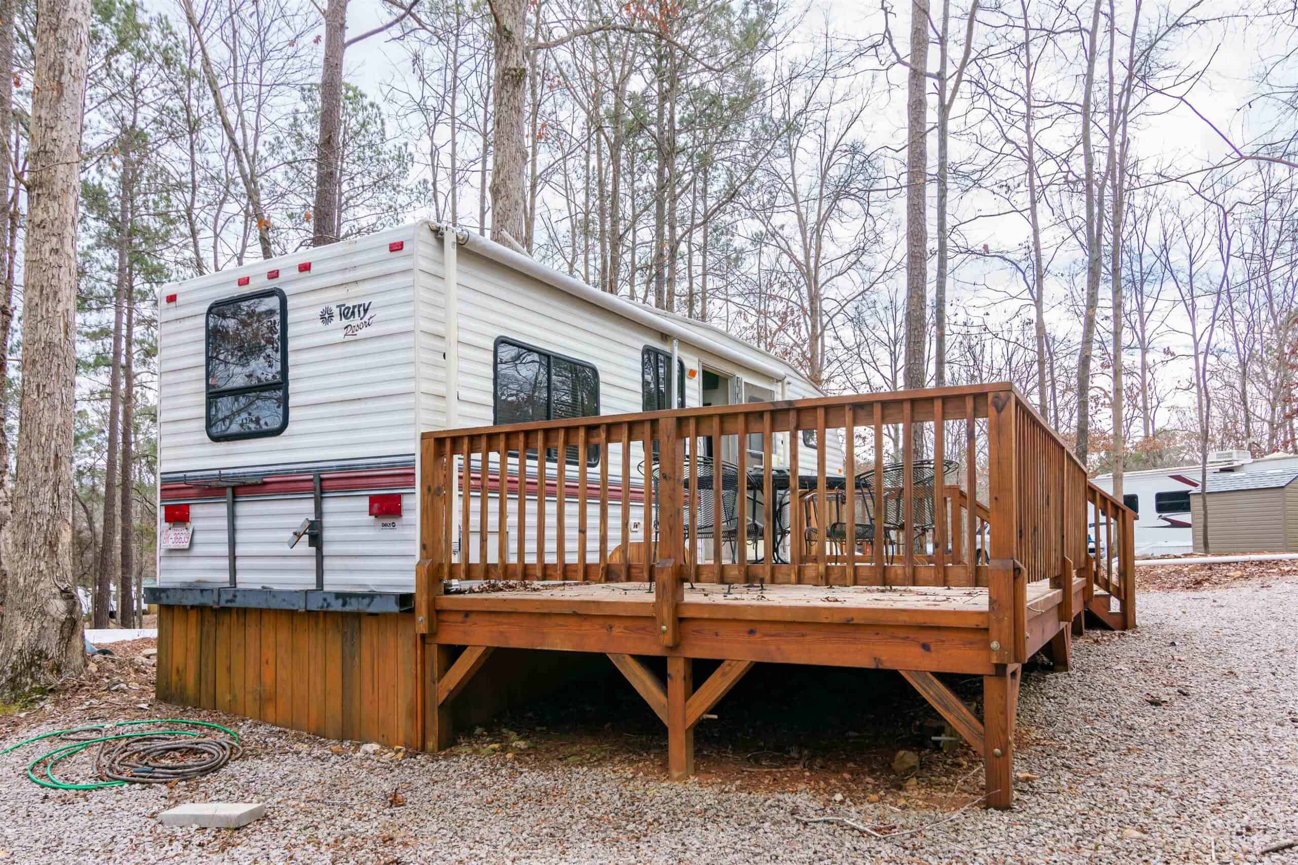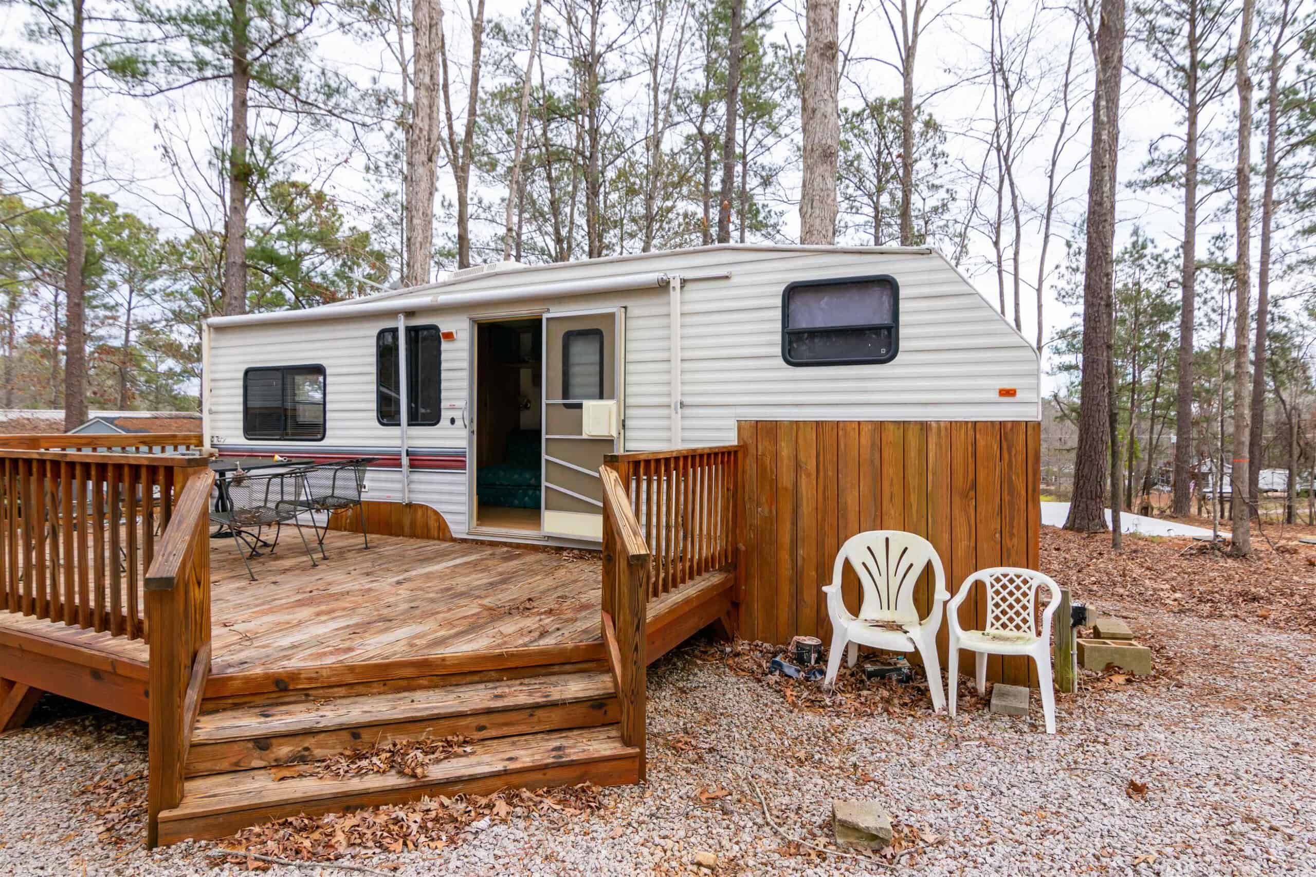 Cottage lot combined with the county! 2 Campers – one with large screen porch for entertaining or just relaxing outside and the other one has a deck! Septic system is connected to both campers. Gated community, 345 acre lake, clubhouse, pavilion, 2 beaches, walking track, swimming pool, tennis, basketball, playgrounds, pickle ball, outdoor fitness center, putt putt golf, volleyball and more! Great get-away for several people or you and your friends! Lot 154 & 152 combined.