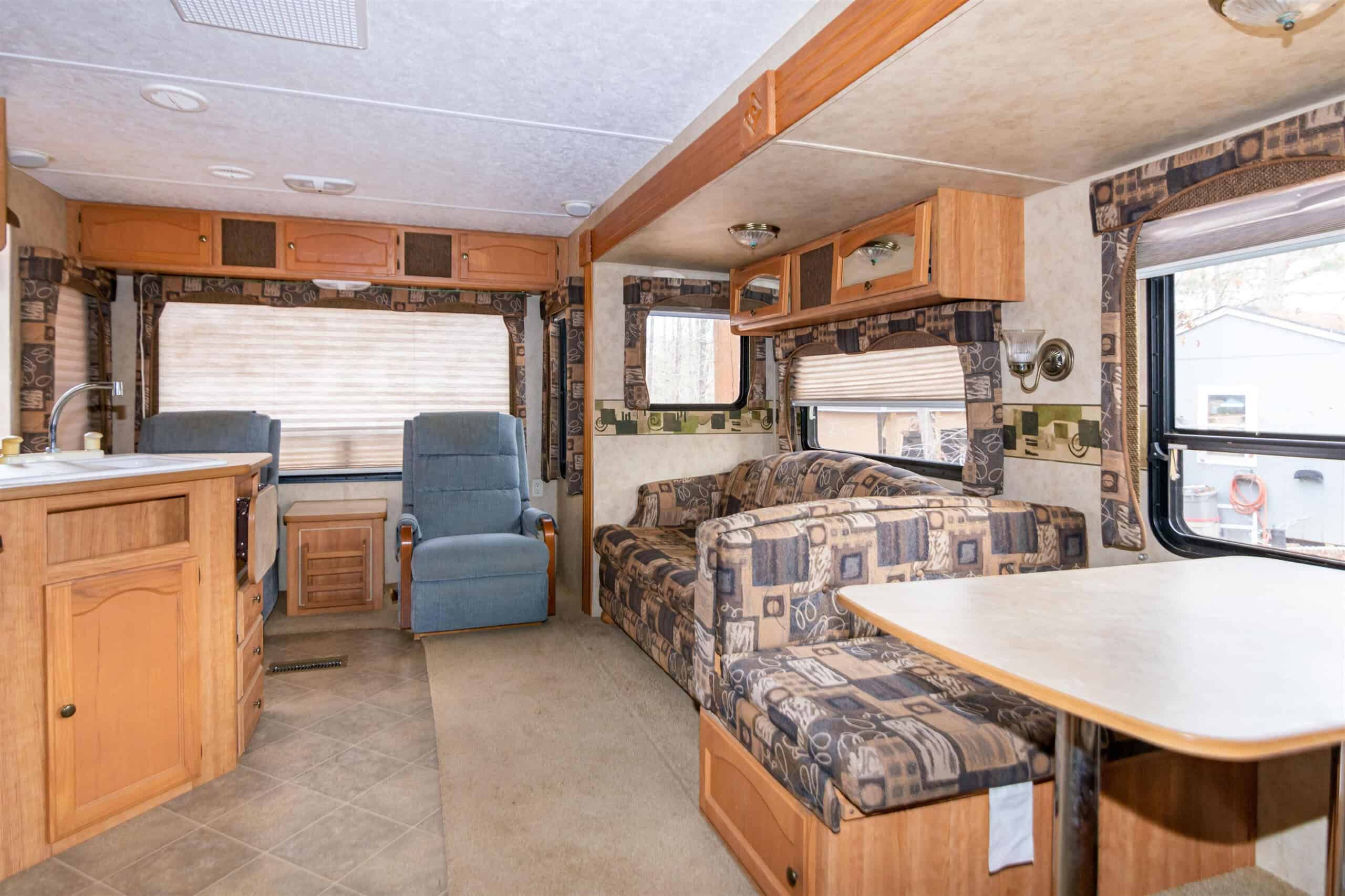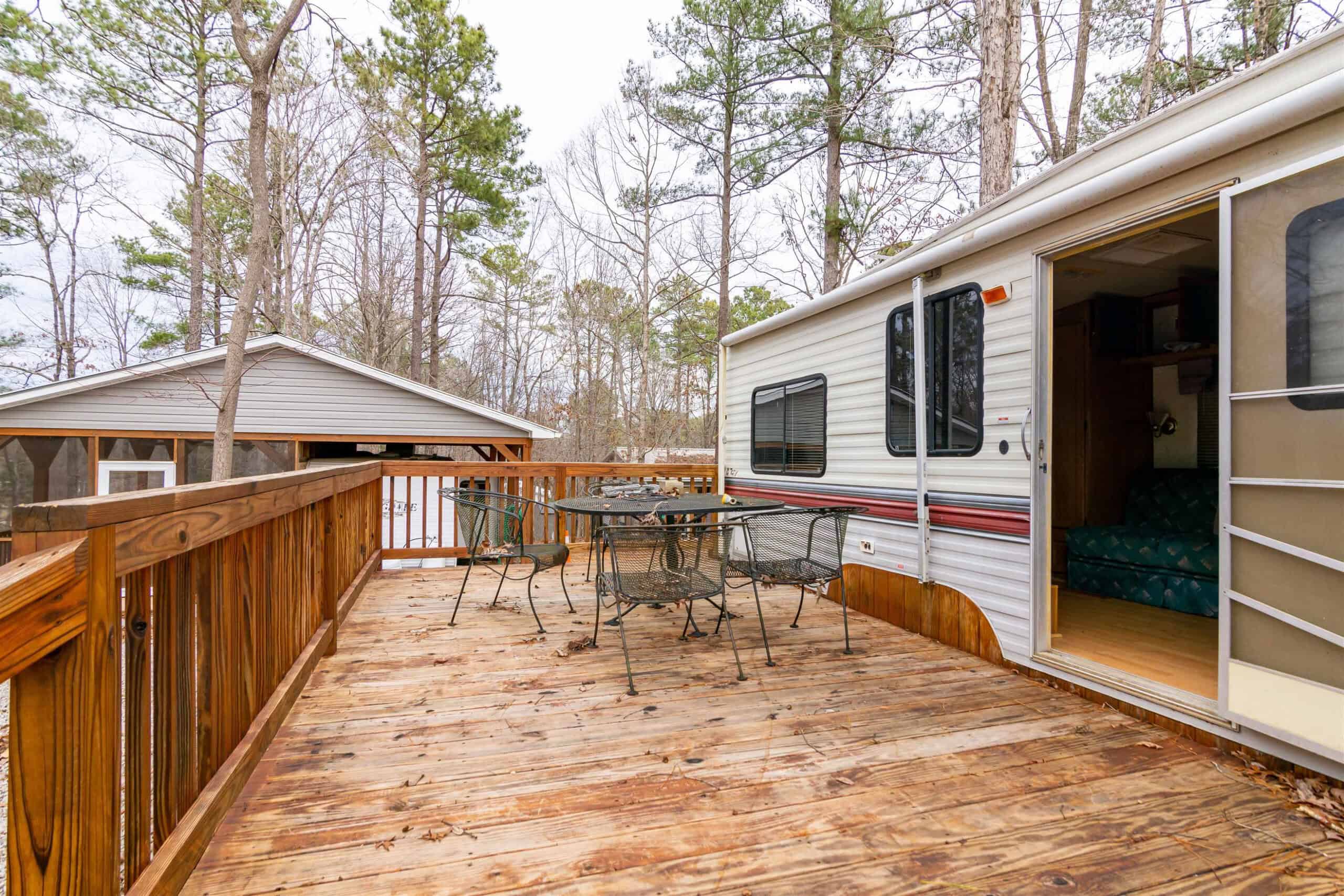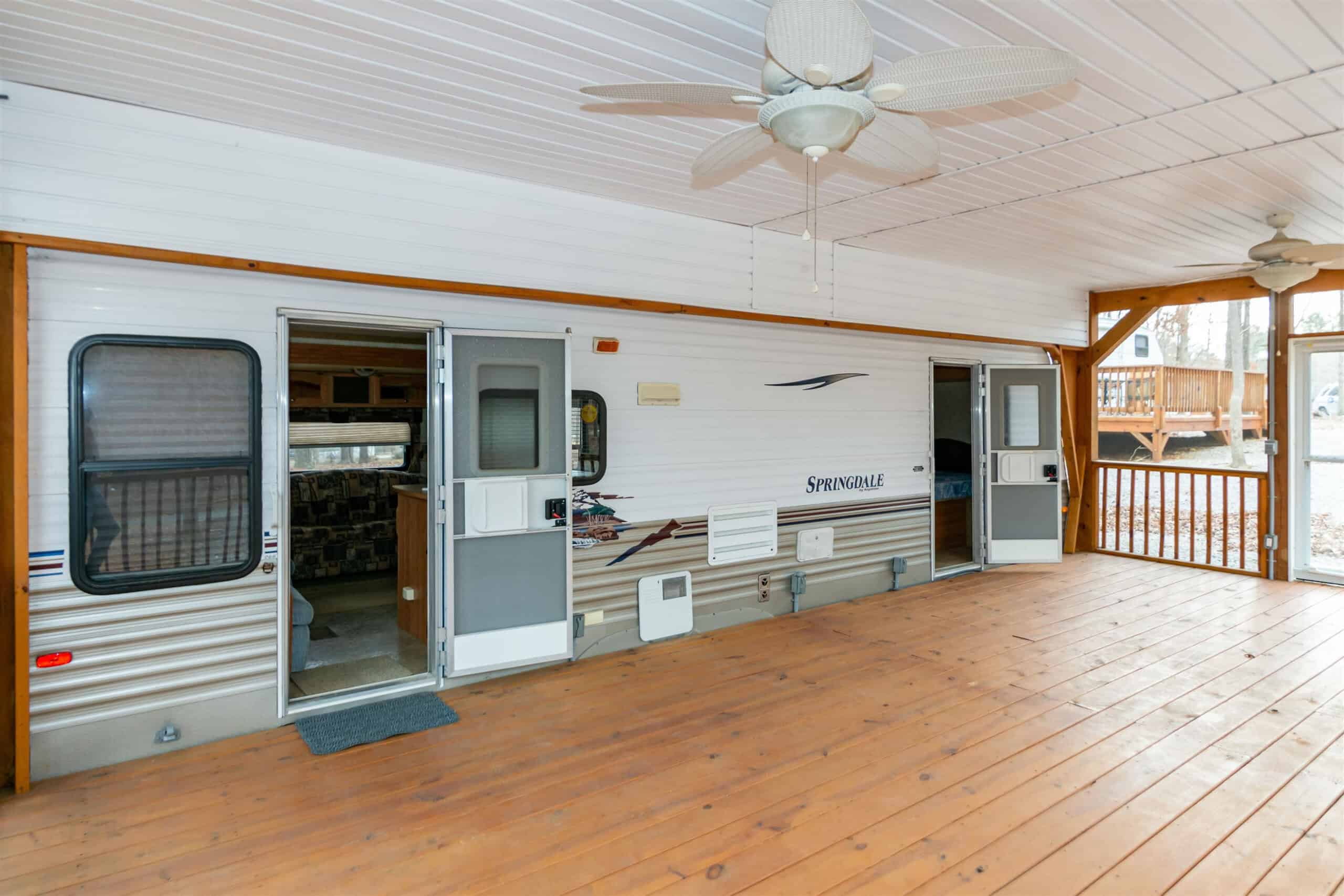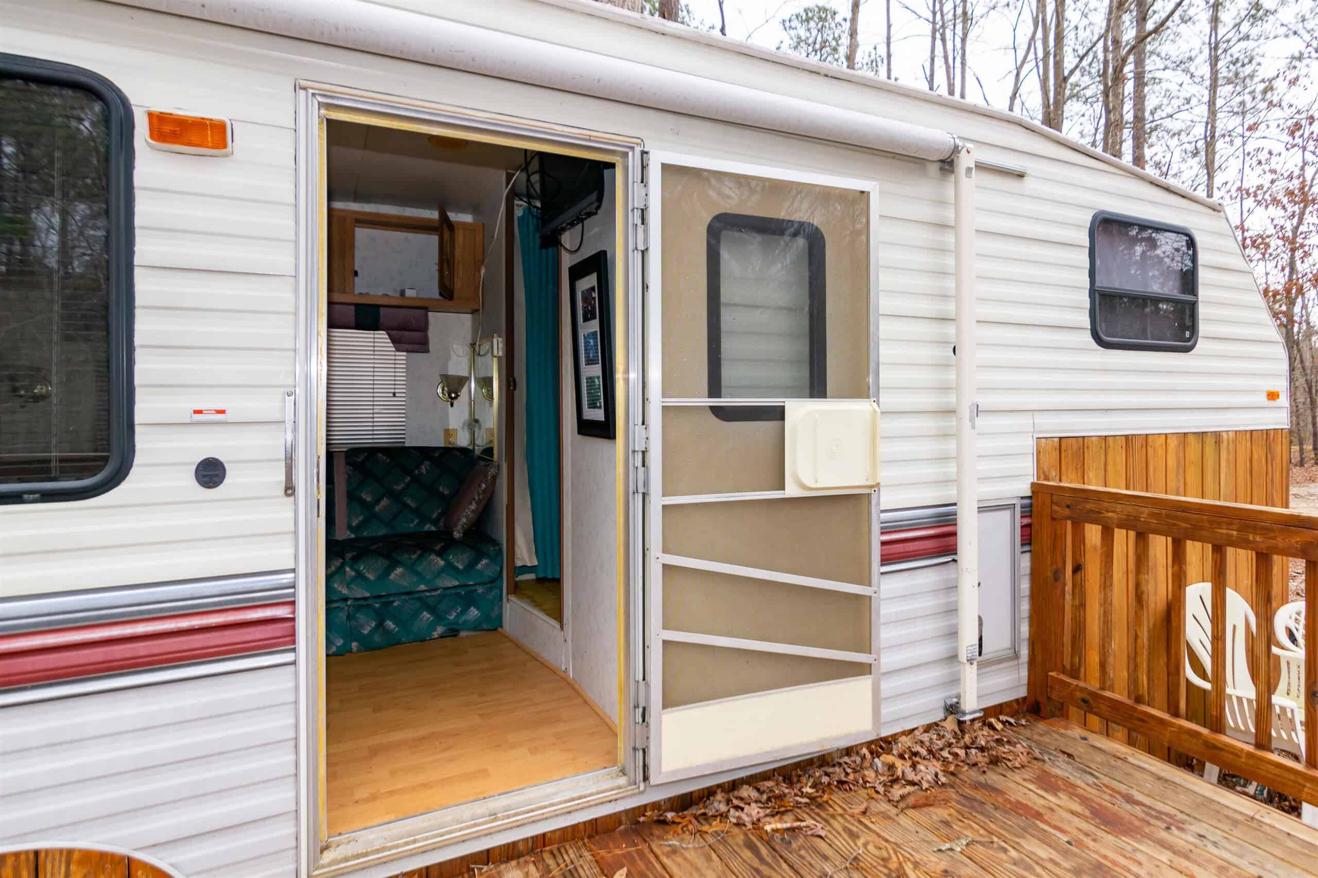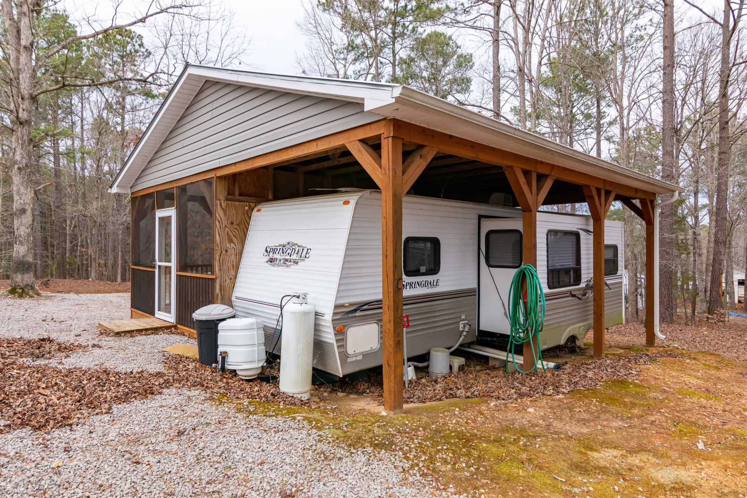 Cottage lot combined with the county! 2 Campers – one with large screen porch for entertaining or just relaxing outside and the other one has a deck! Septic system is connected to both campers. Gated community, 345 acre lake, clubhouse, pavilion, 2 beaches, walking track, swimming pool, tennis, basketball, playgrounds, pickle ball, outdoor fitness center, putt putt golf, volleyball and more! Great get-away for several people or you and your friends! Lot 154 & 152 combined.