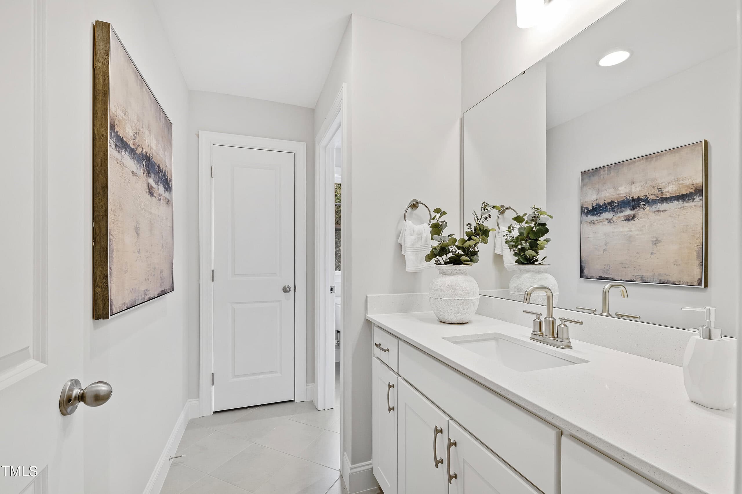 PrimaryBath: 17×17 ”Cavanite II” White Matte Diagonal Laid Tile Floor, ”Graphite” Painted Dual Vanity w/Quartz, Prvt H20 Closet, 12×24 Tile Srrnd Walk in Shower w/Niche & Bench!
