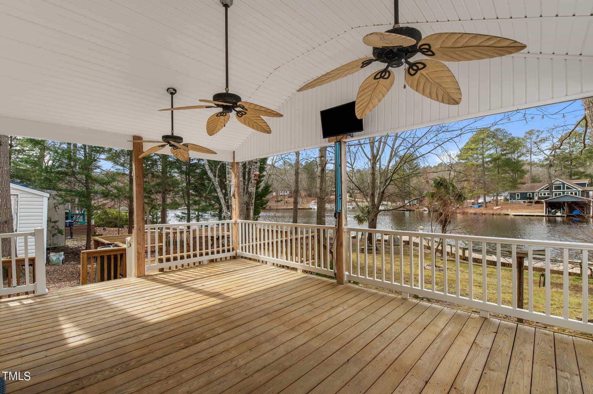 Spring is in the air and this Waterfront Getaway is a perfect place to spend your weekends and downtime! This one Bedroom Camper Build Over has a full Kitchen, Full Bathroom, and an open Living Room & Dining Space! There is also a huge, covered porch alongside an open deck for grilling and entertaining! Enjoy fishing or boating right from your private dock! You even have your own ramp to drop your jet skis right in the lake! Lake Royale is a gated community with beaches, watersports, Pickleball, Tennis courts, Basketball and a multitude of other amenities! You’ll even have access to the 18 hole professional golf course at the River community!