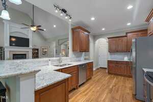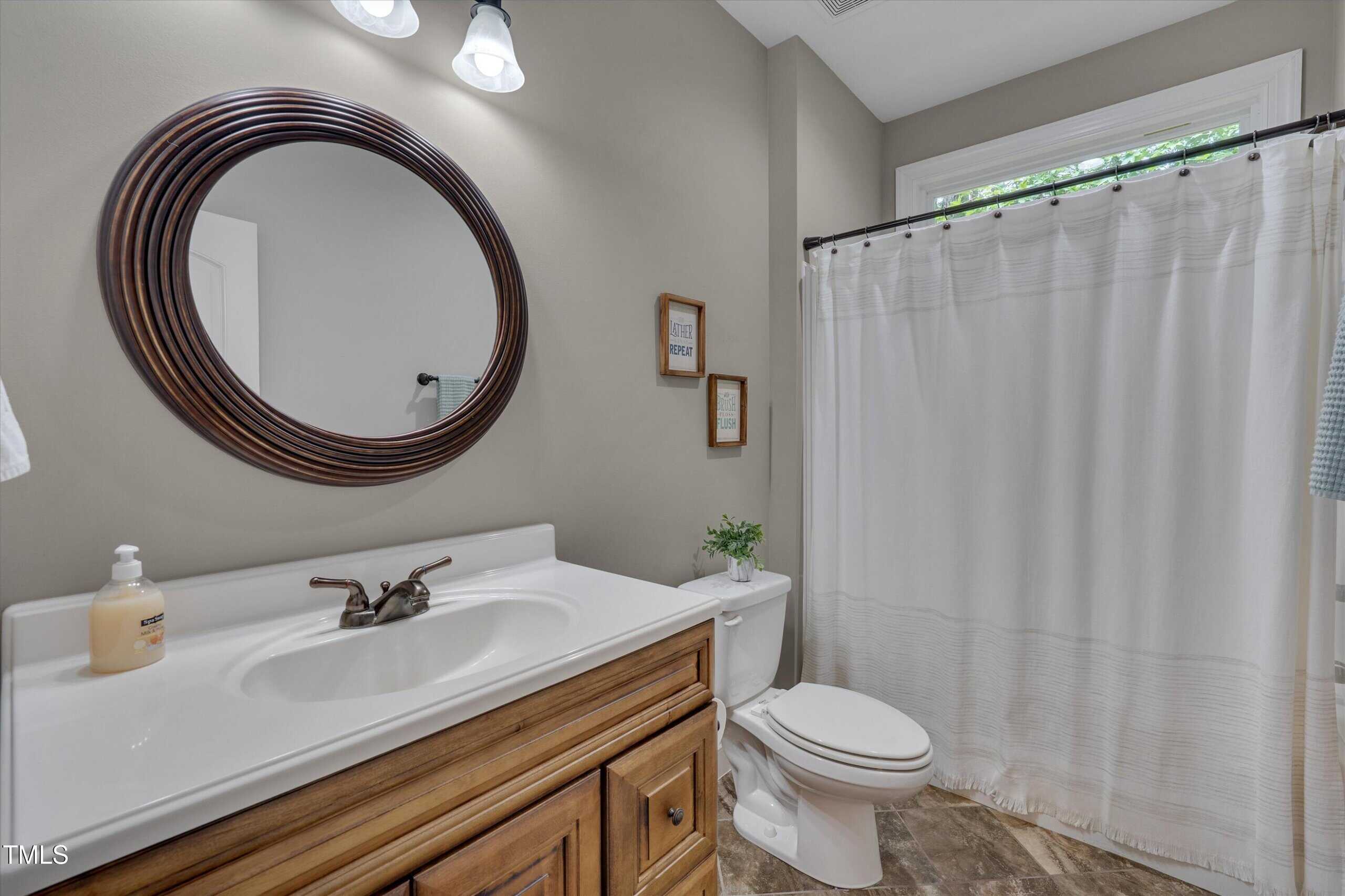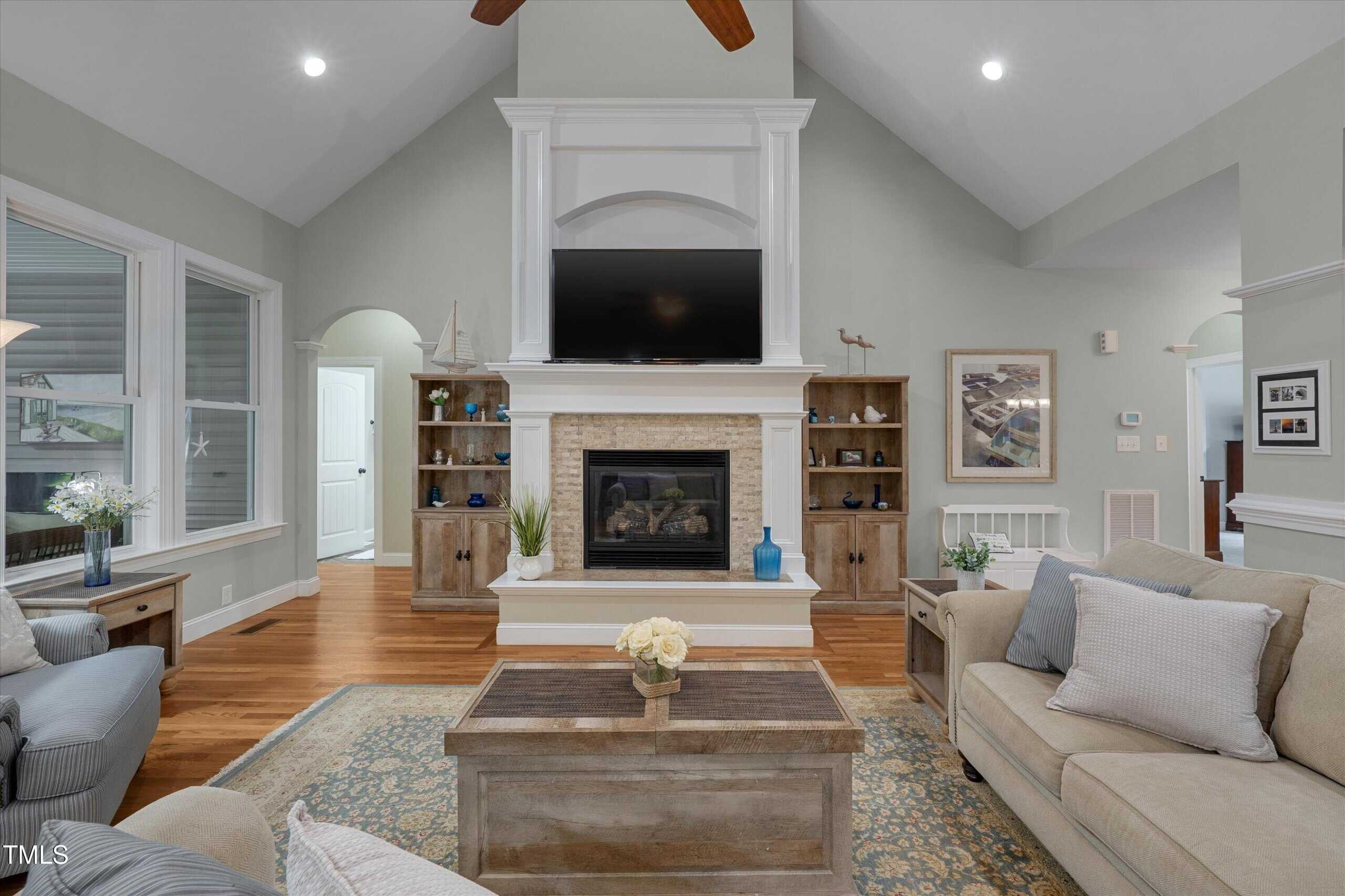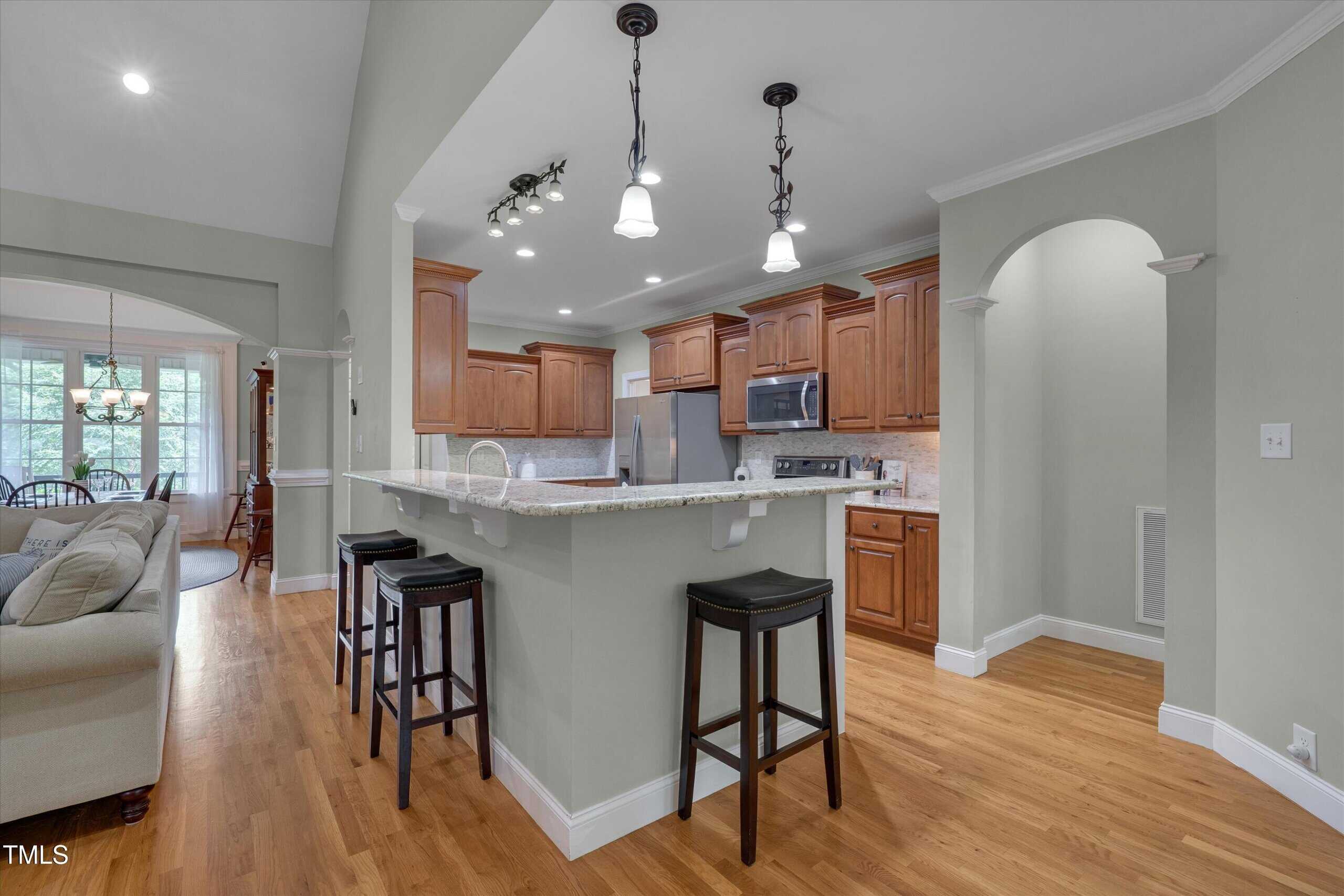 Lucky for you, the buyer got cold feet and this home is back on the market! Discover comfort, style, and thoughtful details in this beautifully maintained ranch with four bedrooms on the first floor. The main living area boasts gleaming hardwood floors, while bedrooms and the bonus feature soft carpet and bathrooms are finished with durable tile. The family room welcomes you with a propane fireplace, vaulted ceilings, recessed lighting, ceiling fan, and rich trim work. Enjoy gatherings with family and friends in the elegant dining room with its custom tray ceiling. The kitchen is a chef’s delight, featuring stainless steel appliances (including refrigerator), granite counters, tile backsplash, a lazy Susan, generous cabinetry, and a large pantry—plus a sunny breakfast area overlooking the amazing backyard. The laundry room includes shelves, and the washer and dryer convey. Two spacious guest bedrooms share a full baths, while the third guest bedroom has it’s own bath and would be perfect for elderly parents or a teenage kid. The primary suite is a true sanctuary with vaulted ceilings, a bay window, abundant natural light, walk-in closet with wooden shelving, and a spa-like bath with dual vanities, walk-in shower, linen closet, and private toilet room. The unfinished attic offers room for additional finished space, while the inviting bonus room—complete with a mini split, mini bar, built-in speakers, and a cozy window seat—makes the perfect retreat. Step outside to a screened porch with ceiling fan, or relax on the patio by the stone fireplace and hot tub, surrounded by a beautiful, private backyard with a drive-in storage shed—no homes behind you for extra privacy. This yard is every family’s dream. The covered front porch also features a ceiling fan, perfect for unwinding. Additional highlights include a 2-car garage with opener, a long driveway, and a walk-in crawlspace with water heater. The concrete walkway from the drive way to the back porch allows someone with mobility issues to enter the home without climbing the steps to the front door. This home blends function, charm, and room to grow—ready for you to move right in! With this home you get the best of two worlds … a small quiet neighborhood tucked away from hectic city life just 30 minutes from Raleigh.