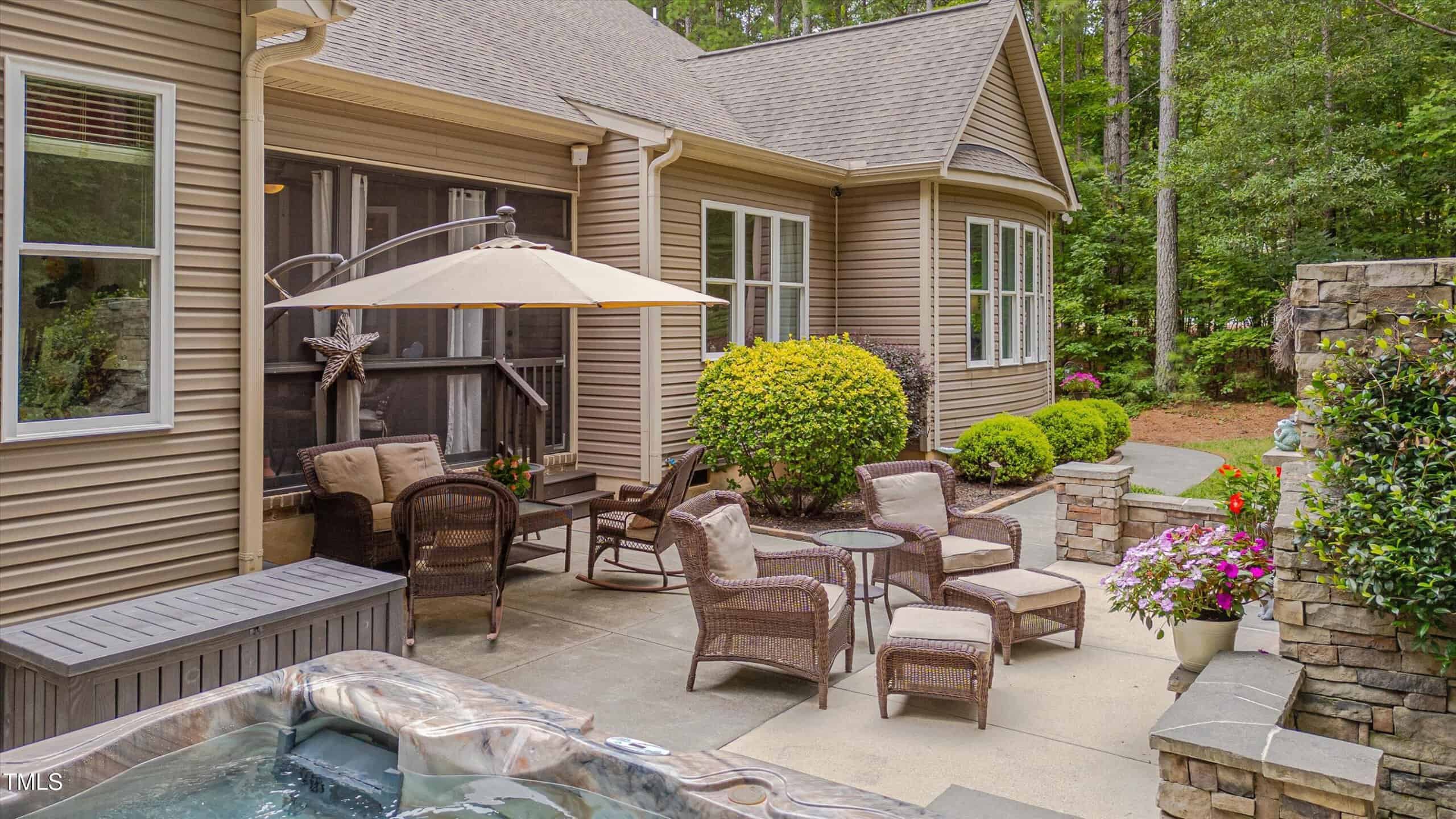 Step outside to a screened porch with ceiling fan, or relax on the patio by the stone fireplace and hot tub, surrounded by a beautiful, private backyard with a drive-in storage shed—no homes behind you for extra privacy. This yard is every family’s dream. The covered front porch also features a ceiling fan, perfect for unwinding. Additional highlights include a 2-car garage with opener, a long driveway, and a walk-in crawlspace with water heater. The concrete walkway from the drive way to the back porch allows someone with mobility issues to enter the home without climbing the steps to the front door.