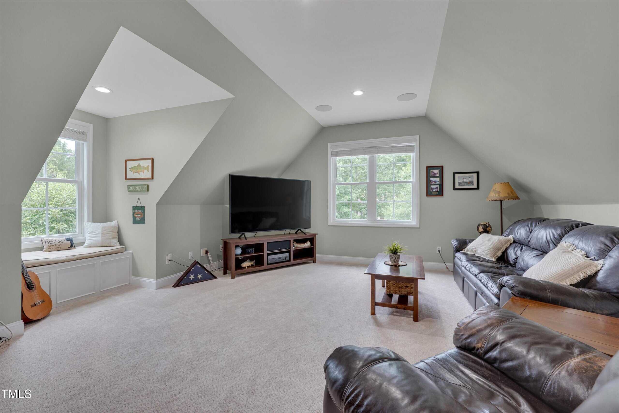 The unfinished attic offers room for additional finished space, while the inviting bonus room—complete with a mini split, mini bar, built-in speakers, and a cozy window seat—makes the perfect retreat.