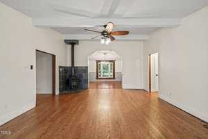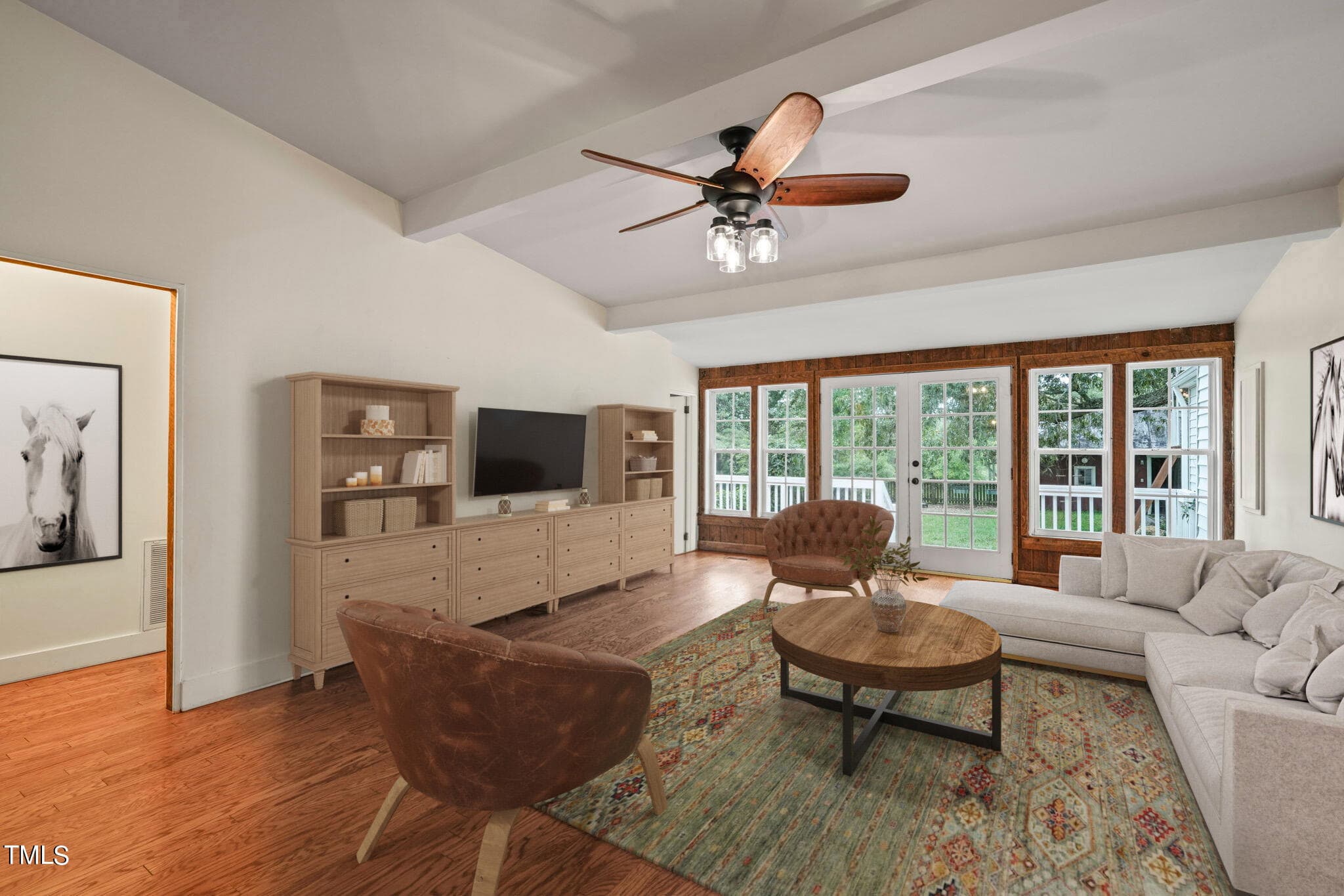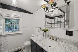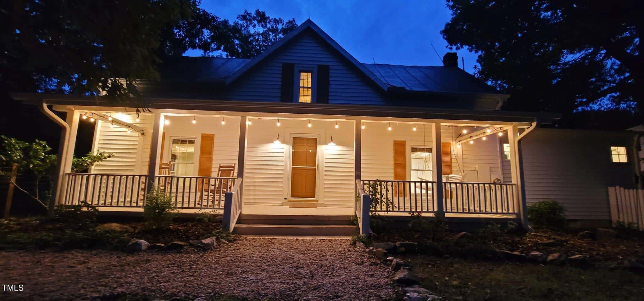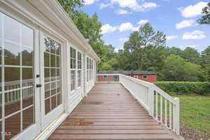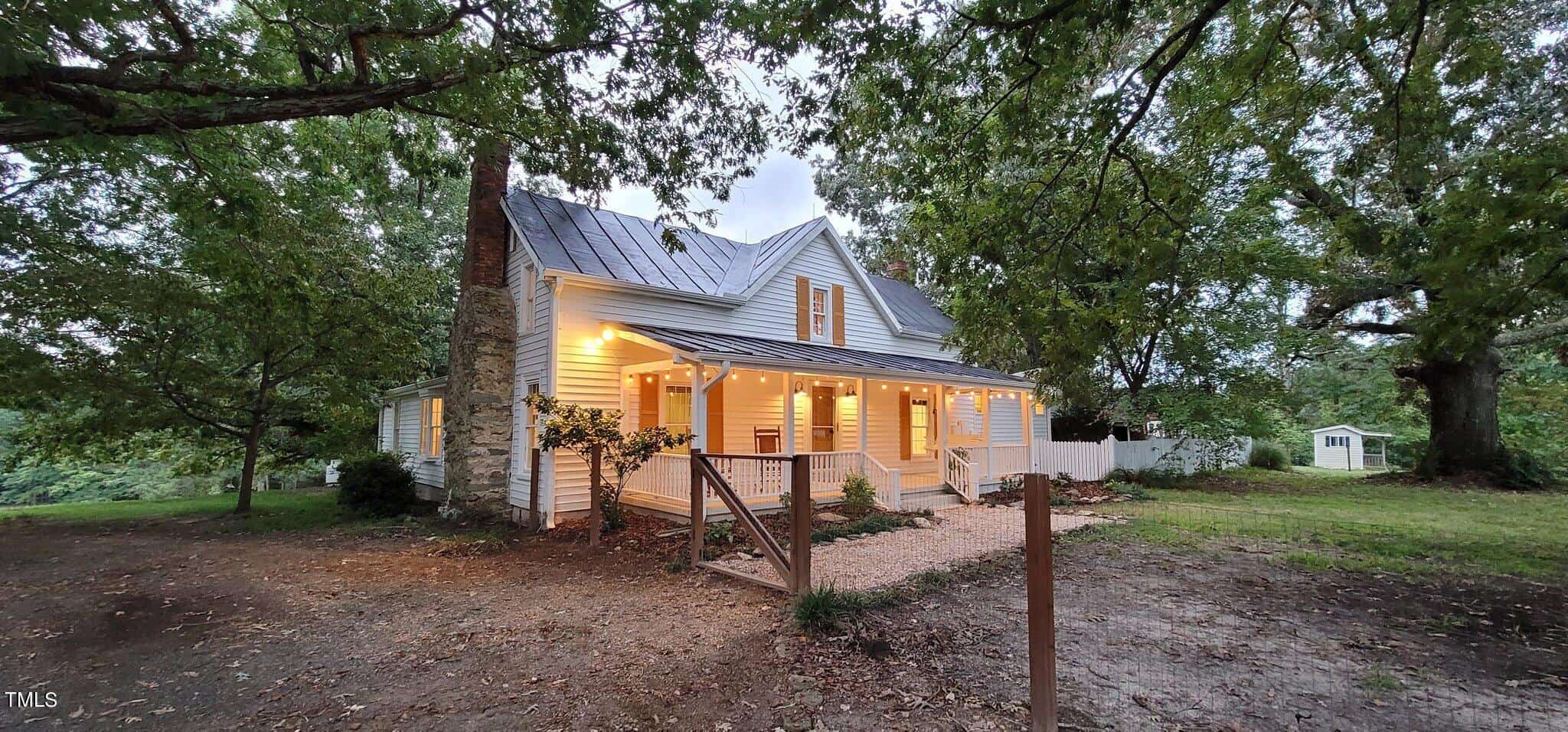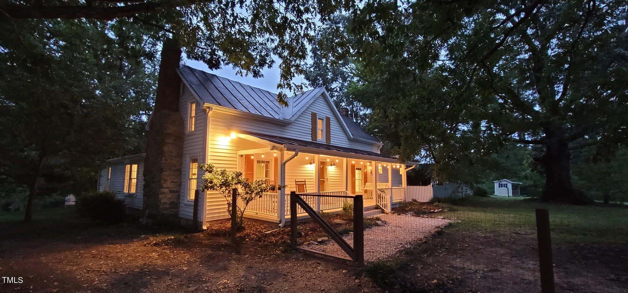 If you are looking for an updated 1800’s farmhouse with almost 13 acres, a guest house, a four-stall horse barn, private 2 acre stocked pond and easily accessible to Raleigh then you need to look at this one. Approaching the home, one of the first things you notice are the amazing White and Red Oak trees that are all along the property and the huge Magnolia tree in the front yard. This home was started in 1862 and has been lovingly growing with the needs and nurturing of all the previous owners. Large covered front porch welcomes you to the home.