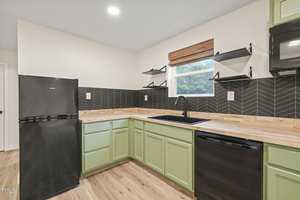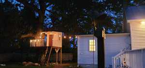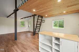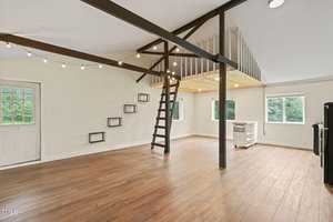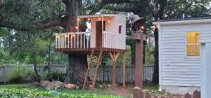 From the family room, step out onto the deck and into the enclosed courtyard. Within the landscaped courtyard you will find a very inviting treehouse and the entrance to a separate workshop. Looking for space for your visiting friends and family? This property has that covered like no other. There is a guest house at the end of the driveway that houses two separate ground-floor apartments. One end has a one bedroom and one bathroom apartment with a large living area and a kitchenette. The other end is a two bedroom and one bath apartment with a large living area and kitchenette. These are connected to a septic system separate from the main home. The homeowners had friends and family that stayed comfortably in these units for long visits.