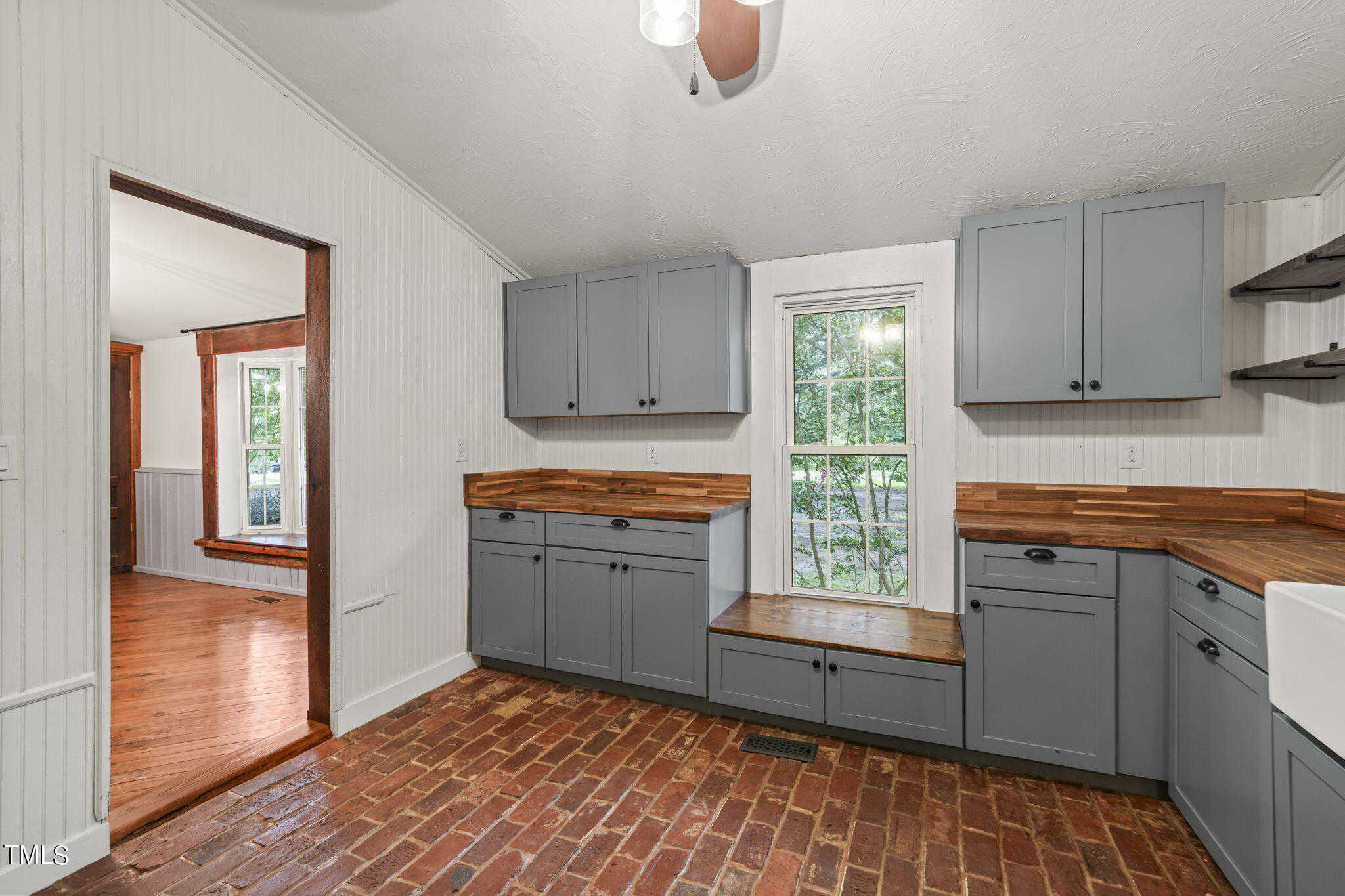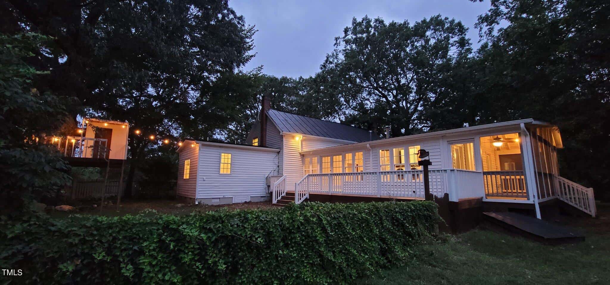 If you are looking for an updated 1800’s farmhouse with almost 13 acres, a guest house, a four-stall horse barn, private 2 acre stocked pond and easily accessible to Raleigh then you need to look at this one. Approaching the home, one of the first things you notice are the amazing White and Red Oak trees that are all along the property and the huge Magnolia tree in the front yard. This home was started in 1862 and has been lovingly growing with the needs and nurturing of all the previous owners. Large covered front porch welcomes you to the home. First floor primary suite with walk-in closet, walk-in tiled shower and a soaking garden tub. Flexible front room with masonry fireplace and built-in bookshelves that could be a comfortable living room or private office. At the end of the vestibule is the entry into the open family room with vaulted ceilings and a wood stove. The family room is encased with a wall of windows that open to the large deck and courtyard and bring a lot of light into the center of the home. All of the beautiful wood floors in the home have just been refinished. The dining room has a large bay window with built-in seat as well as built-in closets and china cabinet. Get inspired in the well laid-out kitchen that showcases a ton of recently installed countertops and cabinets that have soft-close drawers and doors. Enjoy looking out over the pond while standing at the large farm sink and garden window where you can grow your fresh cooking herbs. Cook for all of your friends and family in the newer freestanding double oven with gas range. One of the amazing design features is the brick floor that passes through the kitchen and to the door that leads out to the screened back porch. There is a second full bathroom with tile floors and a tile-surround walk-in shower on the main floor along with a separate laundry room with herringbone pattern laid brick floors. Note, the brick floors in the kitchen and laundry room are reclaimed from New England textile mills with manufacturing dates between 1890 and 1920. Upstairs is a small loft perfect for a pocket office, two additional bedrooms and a full bath with tile surround tub/ shower combo. From the family room, step out onto the deck and into the enclosed courtyard. Within the landscaped courtyard you will find a very inviting treehouse and the entrance to a separate workshop. Looking for space for your visiting friends and family? This property has that covered like no other. There is a guest house at the end of the driveway that houses two separate ground-floor apartments. One end has a one bedroom and one bathroom apartment with a large living area and a kitchenette. The other end is a two bedroom and one bath apartment with a large living area and kitchenette. These are connected to a septic system separate from the main home. The homeowners had friends and family that stayed comfortably in these units for long visits. Walk down the gradual sloping hill behind the home, that would make a great pasture area, and head to the 2-acre stocked pond. There is a meandering path around the right side of the pond that takes you back to the dock and an open area perfect for private picnics. Fish or kayak off the dock and enjoy the afternoon. The property is a mix of open areas and forest. There are a lot of deer that frequently come in for visits. All of this at a location that is handy to Raleigh, Wake Forest, Youngsville, Franklinton, Creedmoor, Oxford, etc. You don’t find special properties like this one very often, where you have the opportunity to carry on a history and make your own. Come see it today while it is still available.