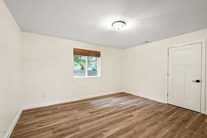 First floor primary suite with walk-in closet, walk-in tiled shower and a soaking garden tub. Flexible front room with masonry fireplace and built-in bookshelves that could be a comfortable living room or private office. At the end of the vestibule is the entry into the open family room with vaulted ceilings and a wood stove. The family room is encased with a wall of windows that open to the large deck and courtyard and bring a lot of light into the center of the home. All of the beautiful wood floors in the home have just been refinished.
