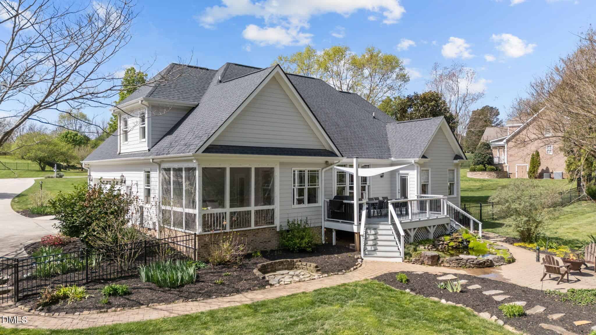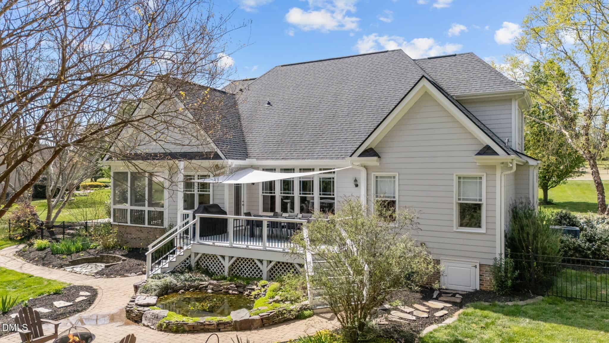 Step outside and fall in love. Enjoy peaceful mornings and relaxing evenings from the screened porch with all-weather panels, or entertain on the expansive deck with custom shade awning. The fenced backyard is truly something special. A private sanctuary featuring a tranquil koi pond, lush landscaping, flowering trees, and a thoughtfully curated fenced garden with asparagus, herbs, berries, and more.