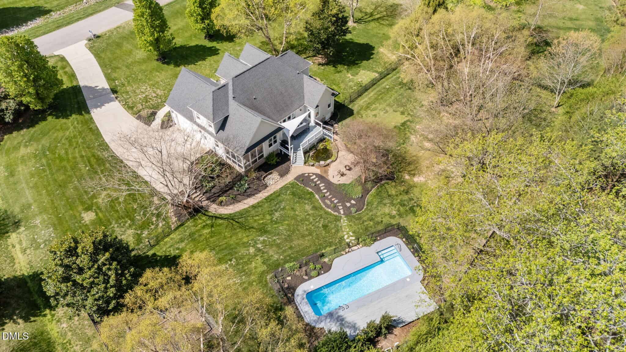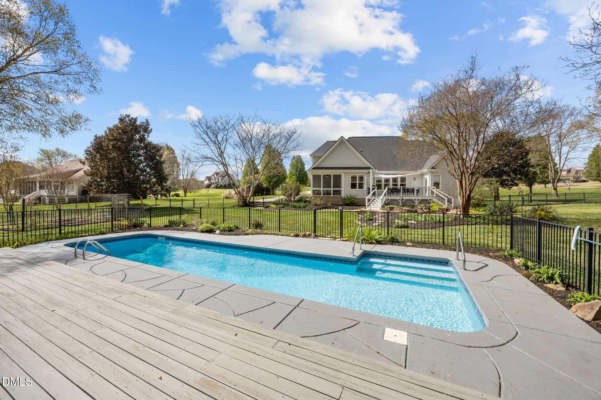 Welcome to your private backyard oasis, where comfort, style, and resort-style living come together beautifully! Set on a serene 1.02-acre lot backing to mature woods and land that will not be developed, this meticulously maintained 4-bedroom home offers the perfect blend of privacy, space, and functionality. The showstopper is a low-maintenance, in-ground heated saltwater lap pool, designed for year-round enjoyment, exercise, and entertaining. Inside, the thoughtfully designed floor plan delivers everything today’s buyers are looking for. The main level features a spacious primary suite, a dedicated home office or flex room, formal dining room or game room, and a stunning family room with vaulted ceilings and a stone fireplace. The bright and airy kitchen is equipped with stainless steel appliances, granite countertops, and flows seamlessly into a breakfast area overlooking the backyard and pool. A generously sized laundry room with custom cabinetry, granite countertops and a utility sink adds both charm and convenience. Upstairs, you’ll find three large bedrooms and a versatile bonus room, along with ample walk-in storage. Step outside and fall in love. Enjoy peaceful mornings and relaxing evenings from the screened porch with all-weather panels, or entertain on the expansive deck with custom shade awning. The fenced backyard is truly something special. A private sanctuary featuring a tranquil koi pond, lush landscaping, flowering trees, and a thoughtfully curated fenced garden with asparagus, herbs, berries, and more. Additional highlights include a fenced yard, low HOA, and a home that has been lovingly cared for inside and out. At this price point, opportunities like this are rare, offering acreage, privacy, a pool, and a move-in ready home all in one. This is more than a home, it’s a retreat. A must-see and the perfect place to call home.