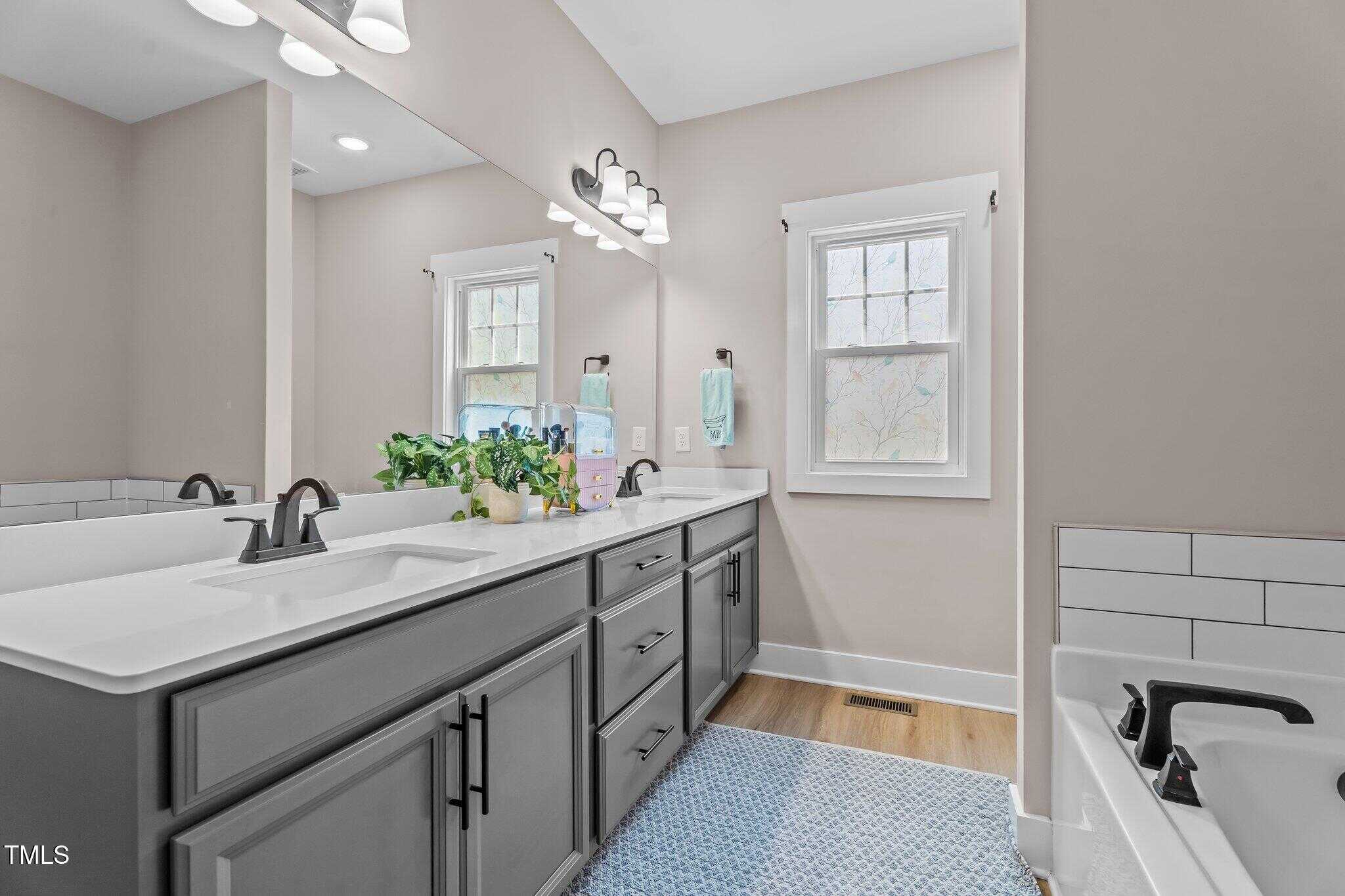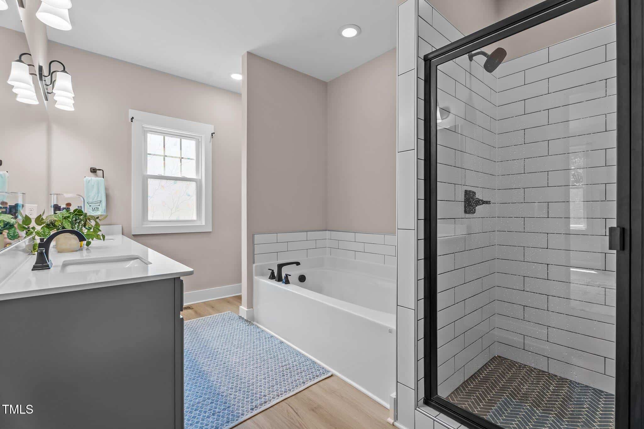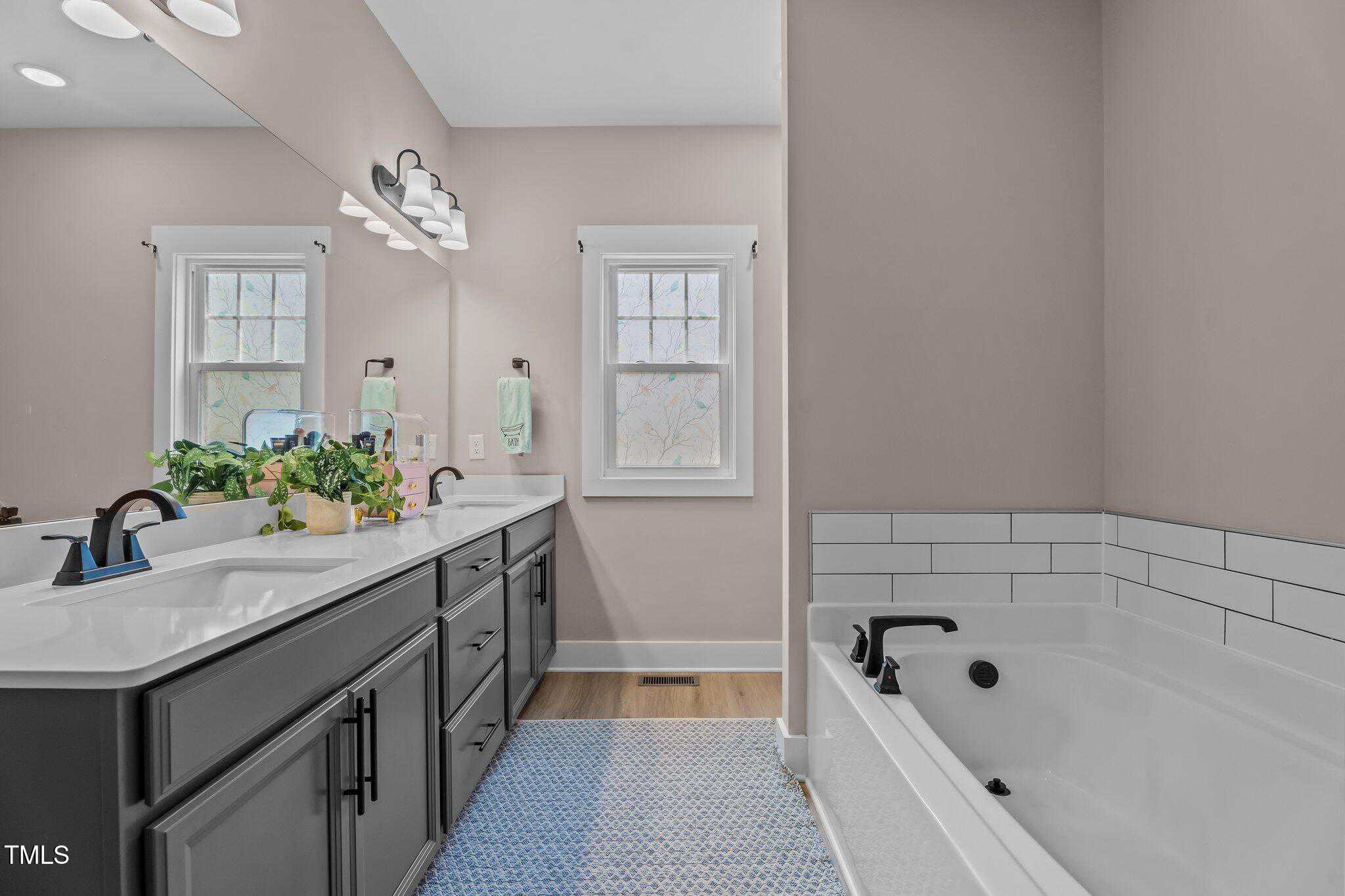 Inside you will find an inviting open concept layout, with a modern kitchen that seamlessly flows into the living and dining areas.This is a split plan featuring 2 bedrooms at the front of the home, and the primary w/ en-suite at the rear-featuring a separate shower, garden tub, dual vanities and tons of natural light!