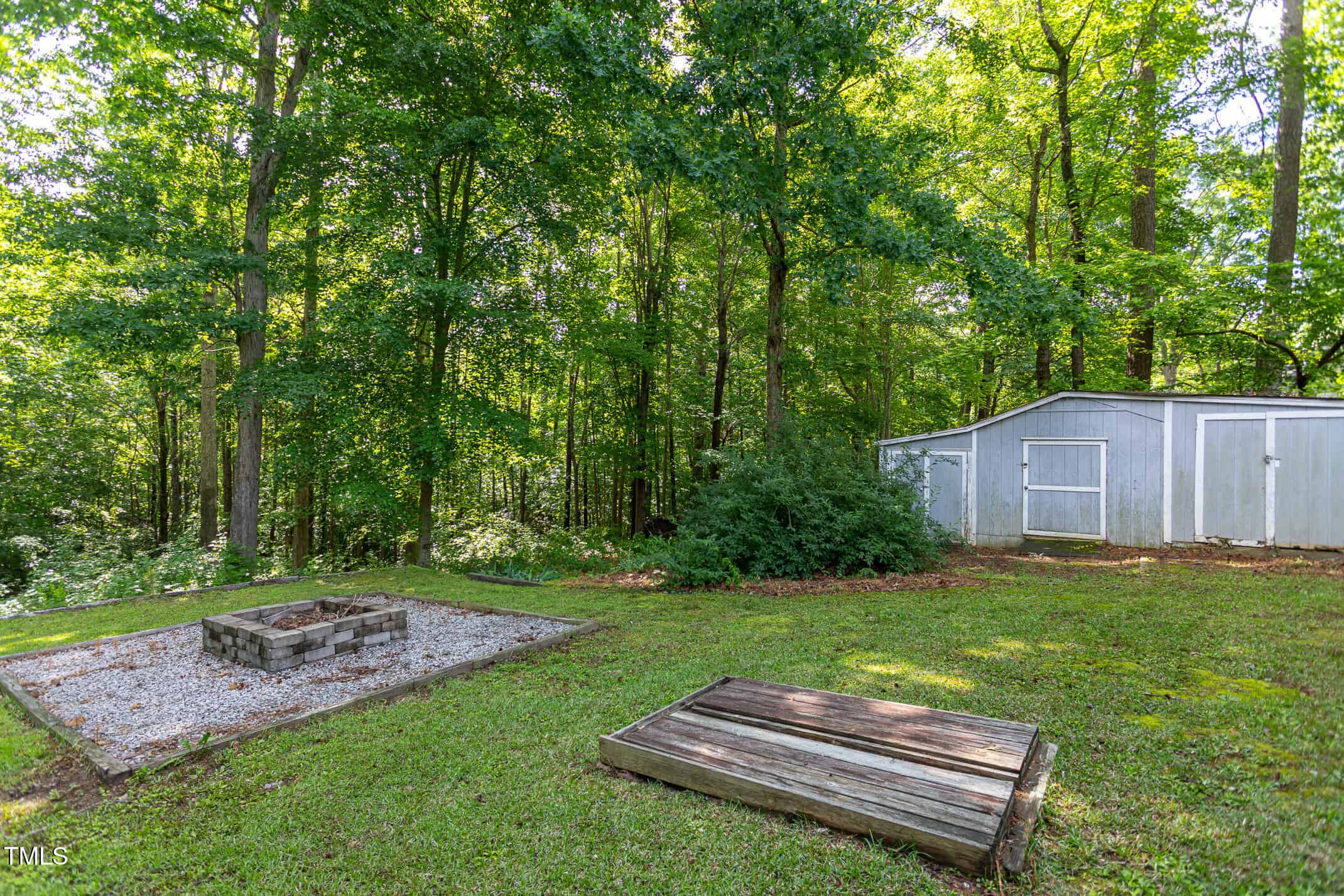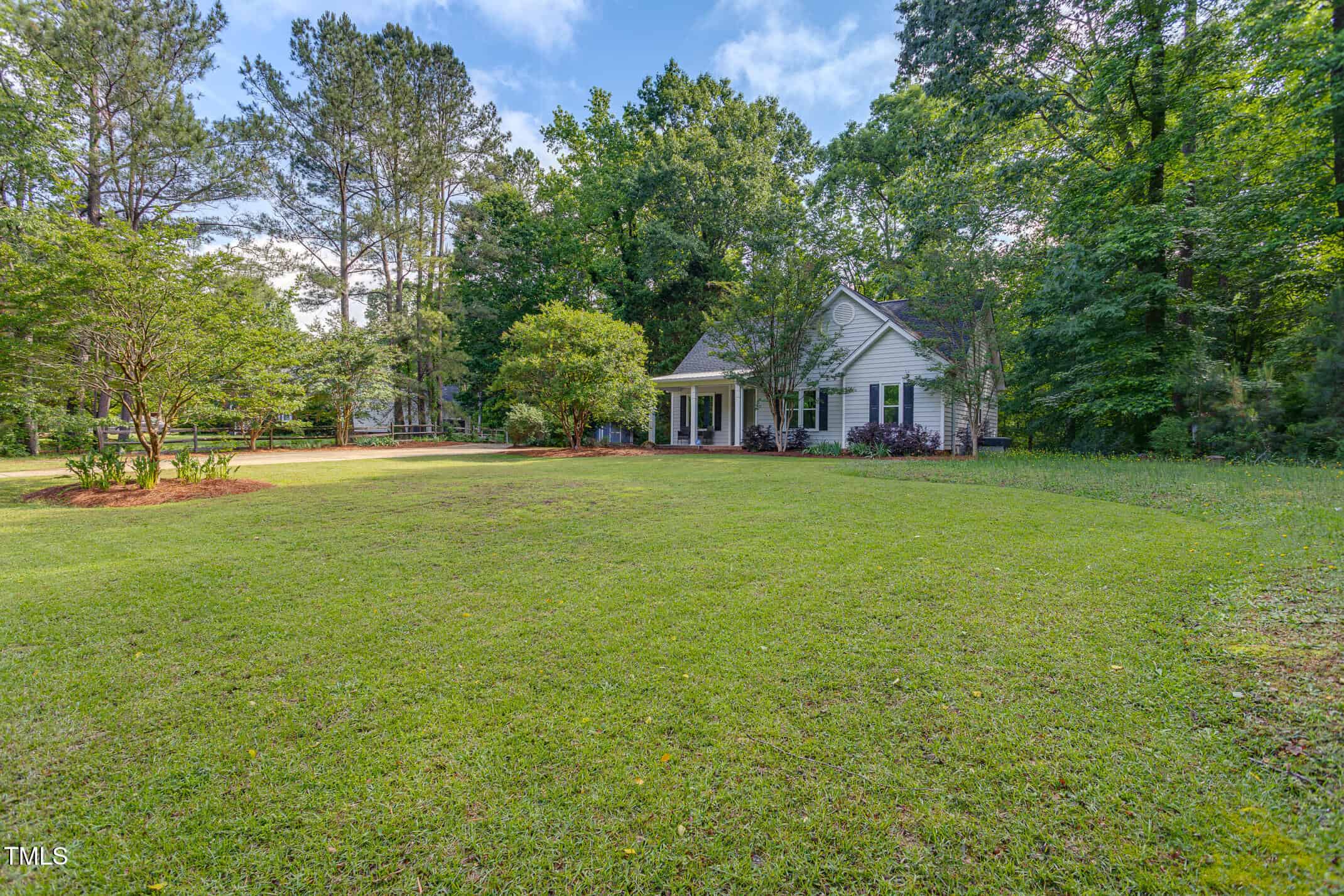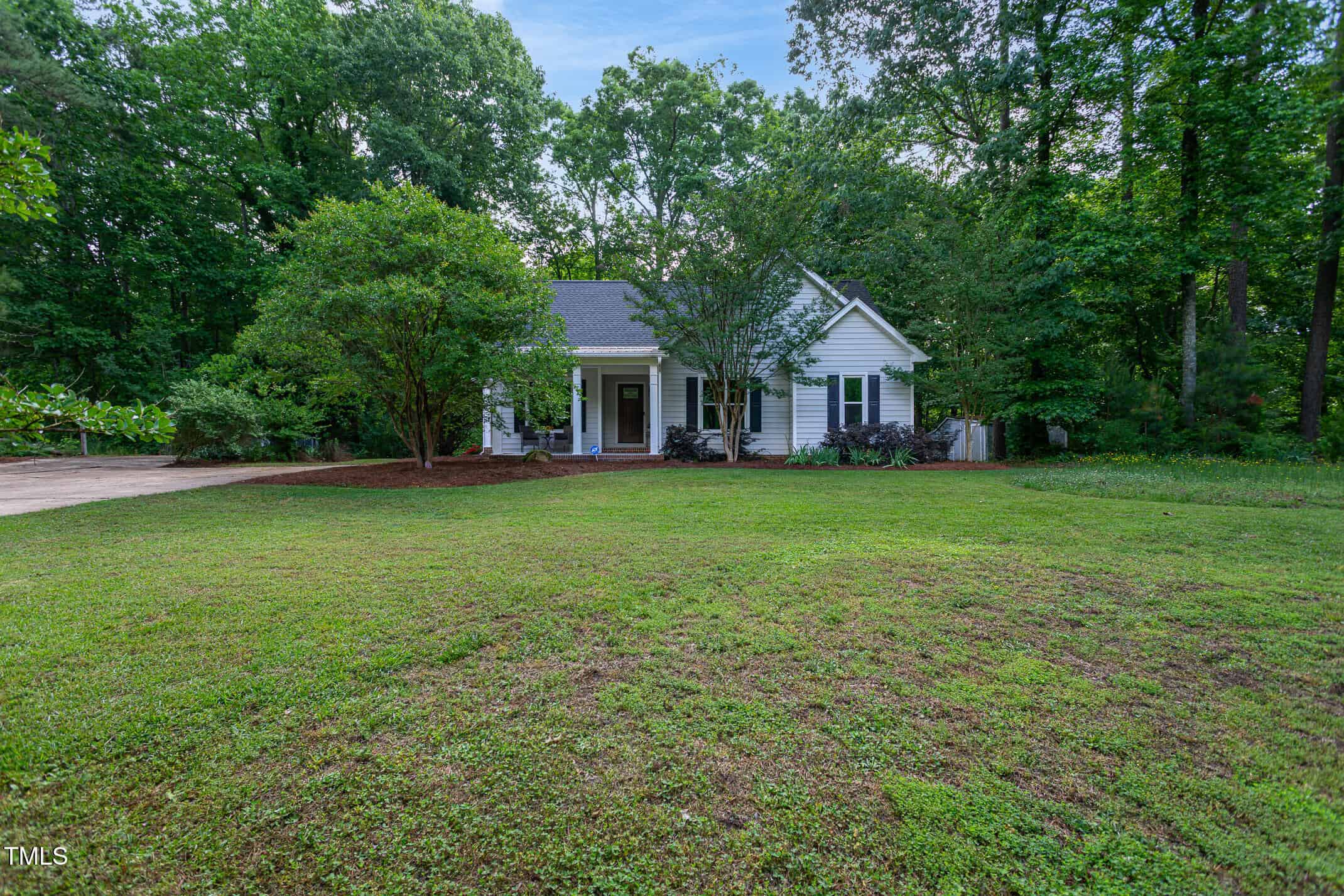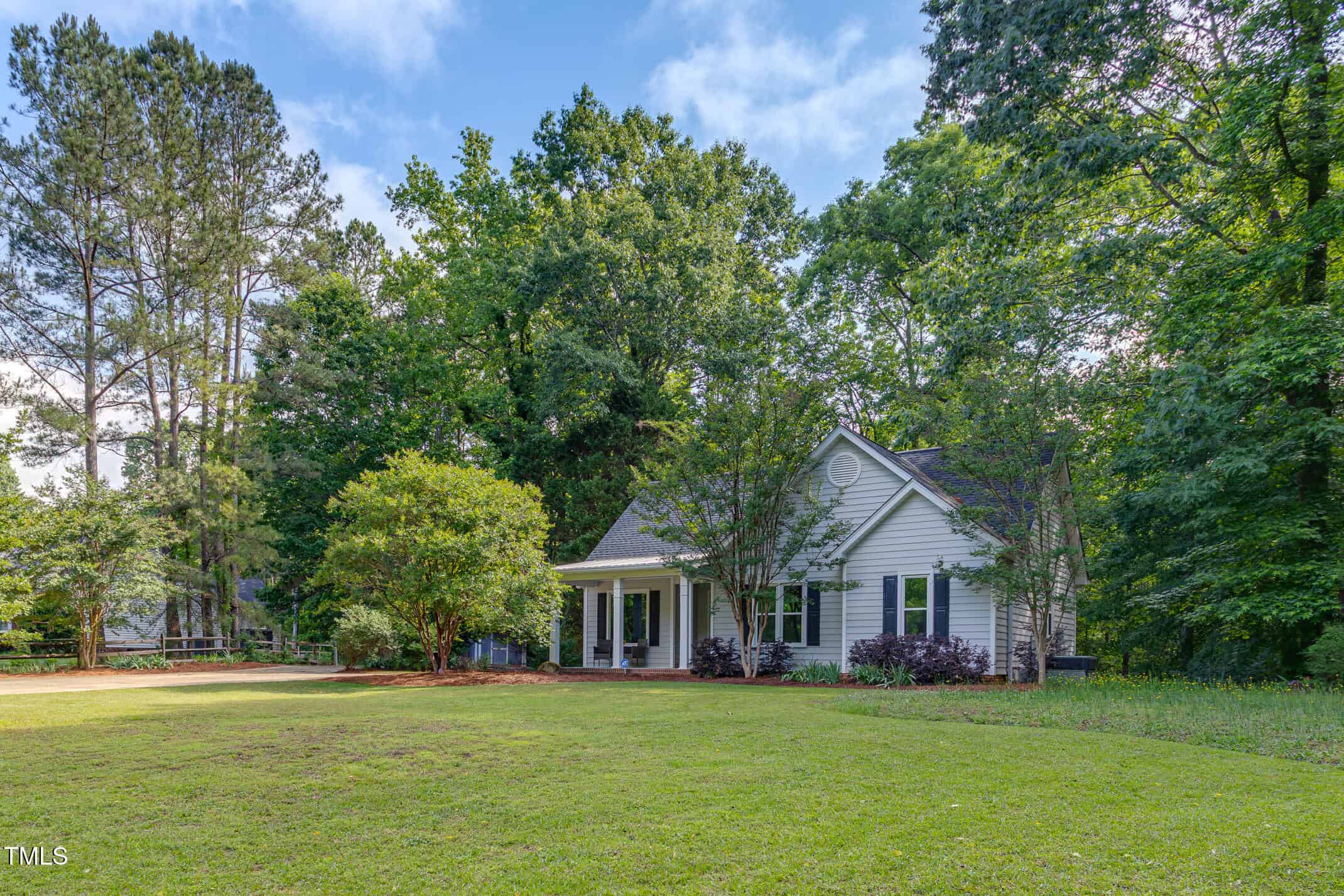 Super Convenient country setting nicely placed between historic downtown Wake Forest and downtown Youngsville. Within 3.2 miles from both destinations you will find this a perfect retreat with access to popular parks, shopping and dining. This hidden gem rests beautifully amongst trees and a private wooded view. And this home blends everyday comfort with practical spaces with two separate entry points and no carpet throughout, it’s designed for ease of living. Engineered hardwood flooring adorns the home extensively with tile flooring in the kitchen/dining rooms. Cozy living room has built-in shelving, and a classic fireplace, perfect for relaxed quiet evenings. Formerly a formal dining room, the room at the front is separated from the rest of the spaces, ideal for a home office, play space, music room or study. The kitchen delivers plenty of counter space and includes a dining area that has a beautiful view and easy access to the living room and the sunroom. The sunroom, full of windows has built-in bookshelves and creates a cozy secondary space to relax and enjoy friends and family. Three bedrooms include a welcoming owner’s suite with it’s own full bath and two additional rooms, having easy access to the full secondary bath. Out back, enjoy endless discoveries while you’re enveloped in a beautiful natural setting. Easily entertain on your spacious patio, roast marshmallows by the firepit, and bask in the delight of having three additional storage structures, positioned at the edge of the unknown. Welcome to your next adventure!