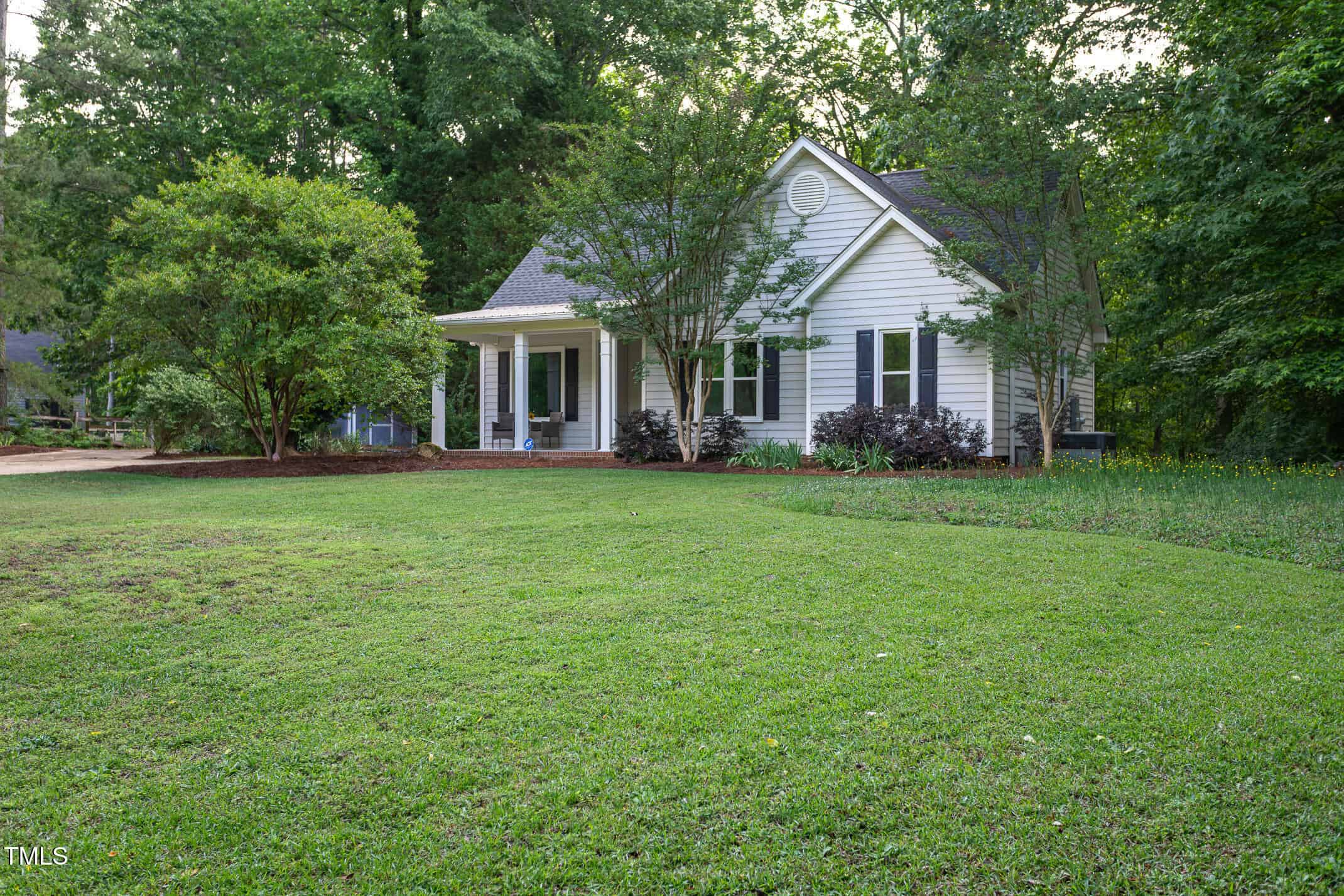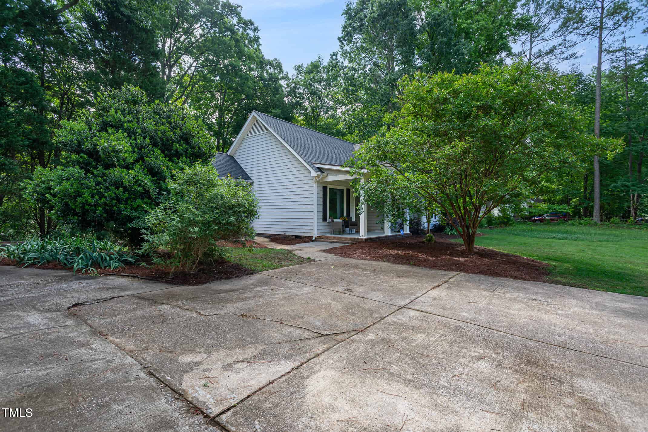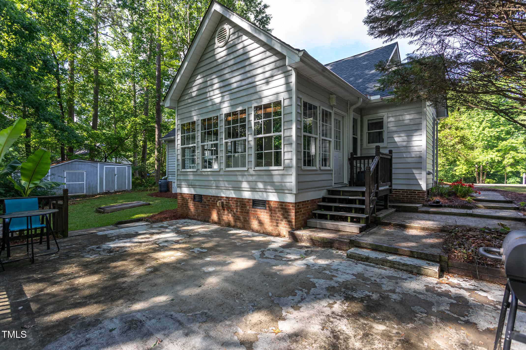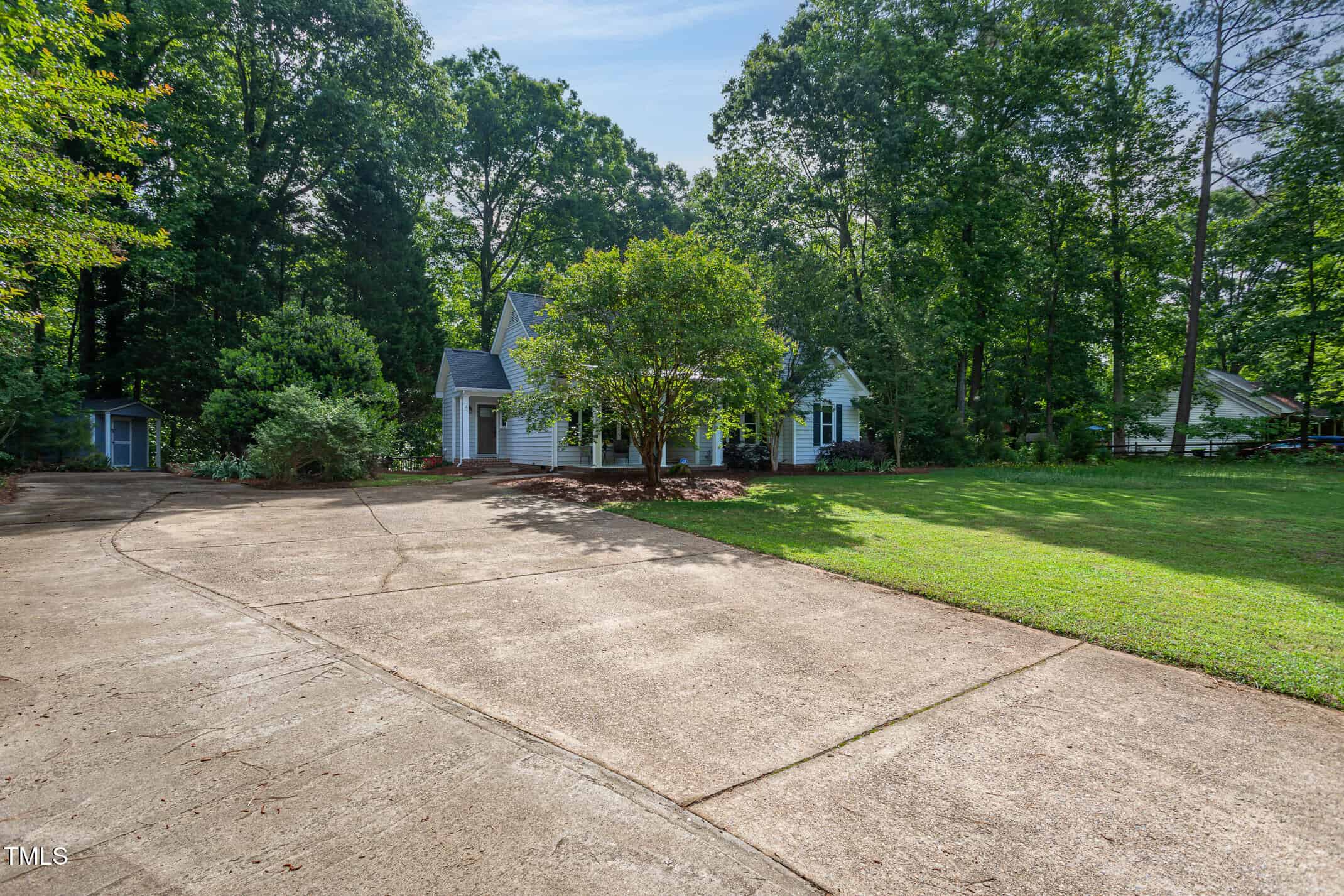 Super Convenient country setting nicely placed between historic downtown Wake Forest and downtown Youngsville. Within 3.2 miles from both destinations you will find this a perfect retreat with access to popular parks, shopping and dining. This hidden gem rests beautifully amongst trees and a private wooded view. And this home blends everyday comfort with practical spaces with two separate entry points and no carpet throughout, it’s designed for ease of living. Engineered hardwood flooring adorns the home extensively with tile flooring in the kitchen/dining rooms. Cozy living room has built-in shelving, and a classic fireplace, perfect for relaxed quiet evenings. Formerly a formal dining room, the room at the front is separated from the rest of the spaces, ideal for a home office, play space, music room or study. The kitchen delivers plenty of counter space and includes a dining area that has a beautiful view and easy access to the living room and the sunroom. The sunroom, full of windows has built-in bookshelves and creates a cozy secondary space to relax and enjoy friends and family. Three bedrooms include a welcoming owner’s suite with it’s own full bath and two additional rooms, having easy access to the full secondary bath. Out back, enjoy endless discoveries while you’re enveloped in a beautiful natural setting. Easily entertain on your spacious patio, roast marshmallows by the firepit, and bask in the delight of having three additional storage structures, positioned at the edge of the unknown. Welcome to your next adventure!