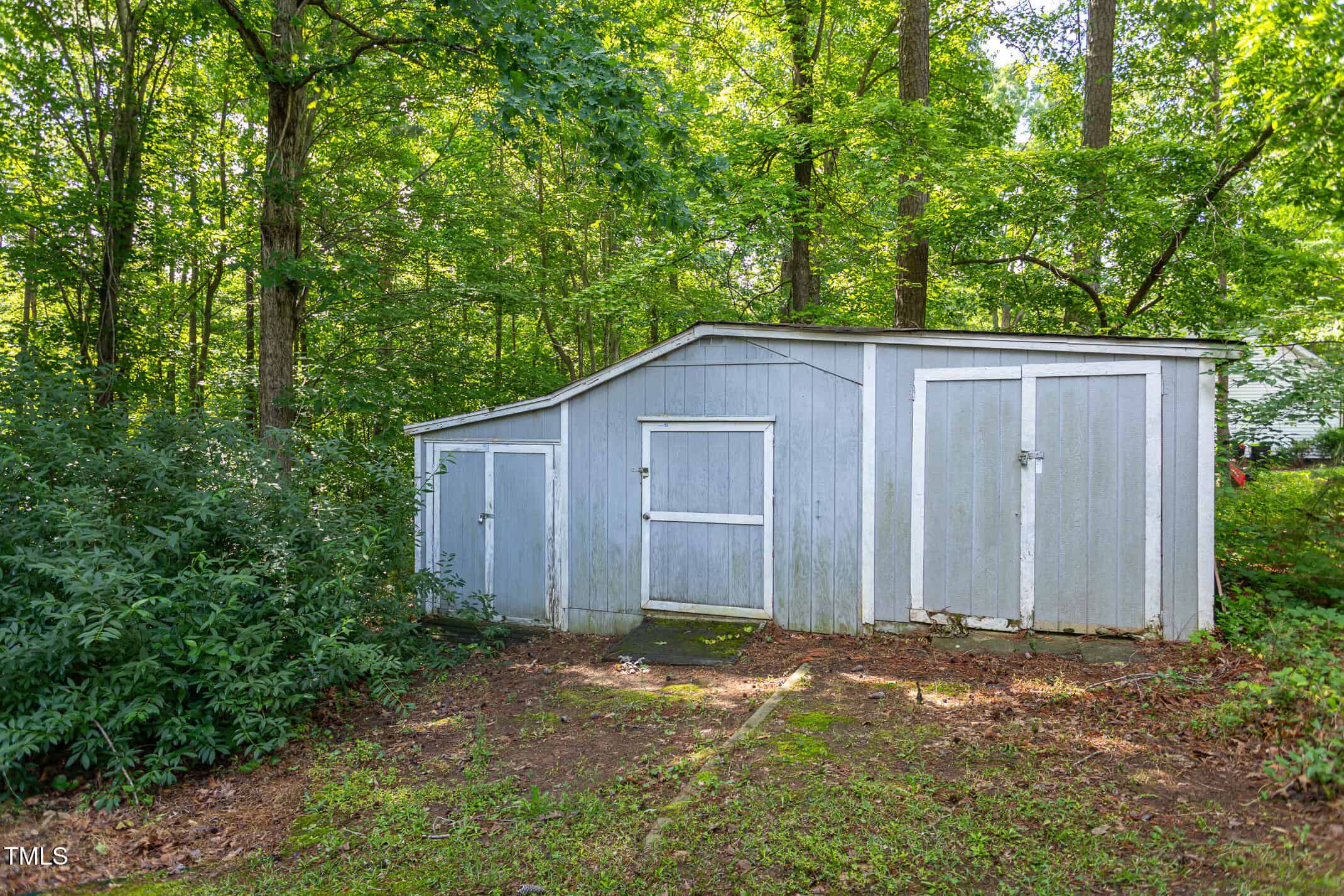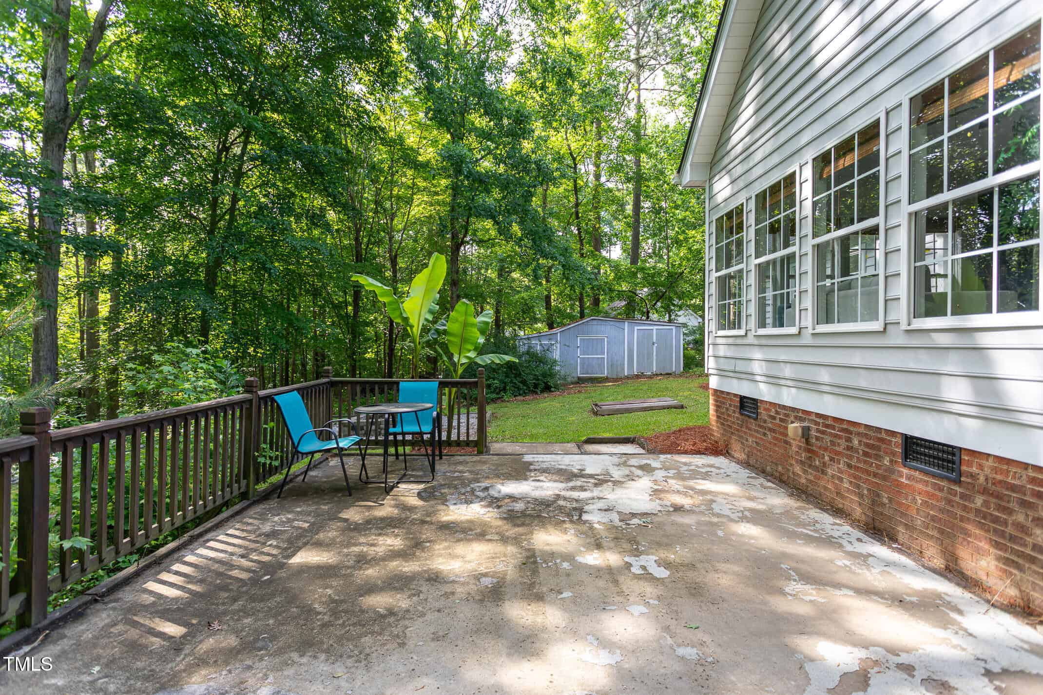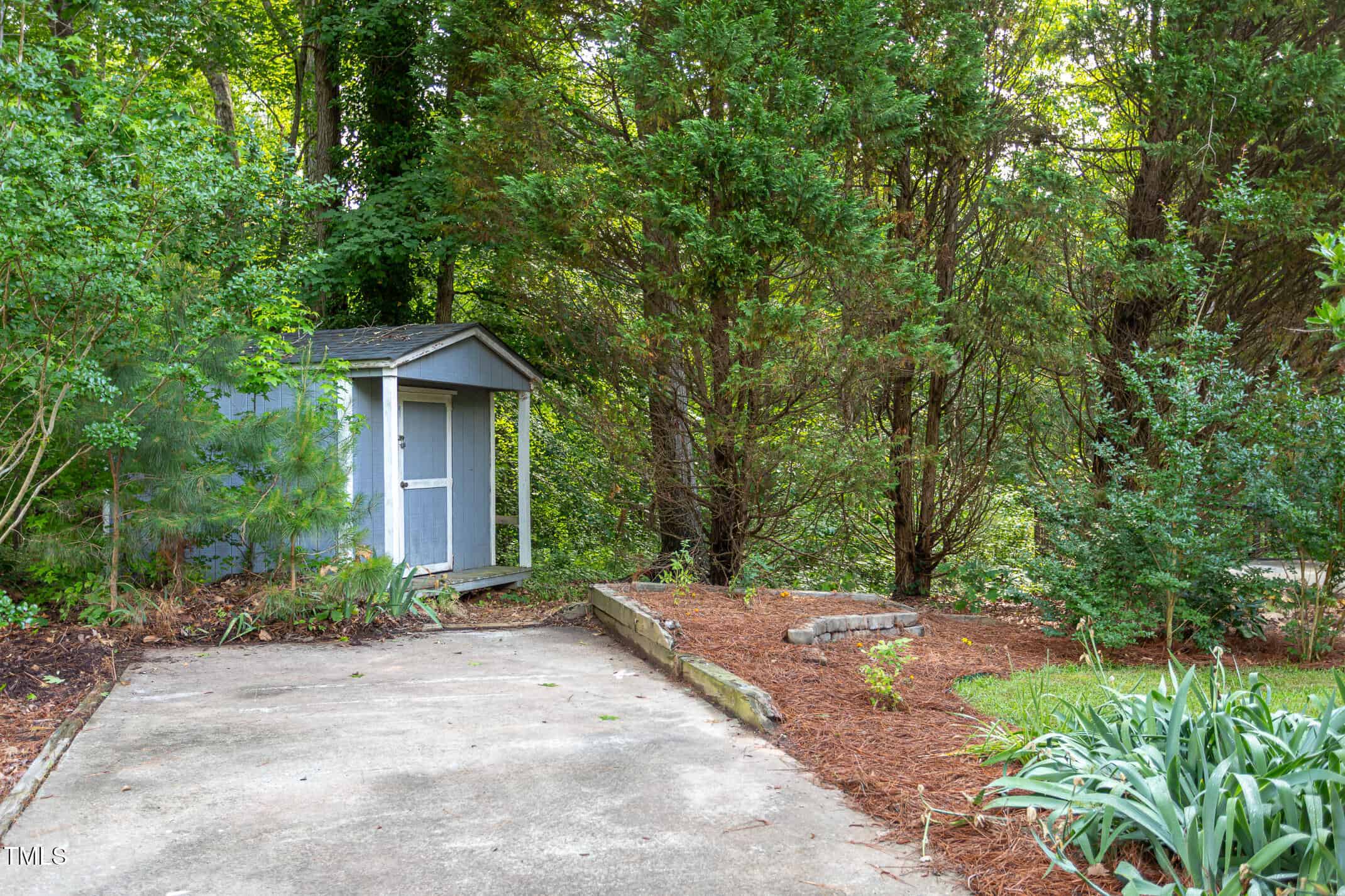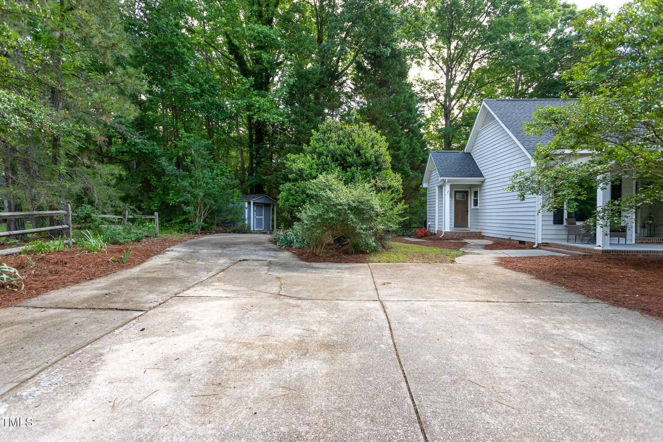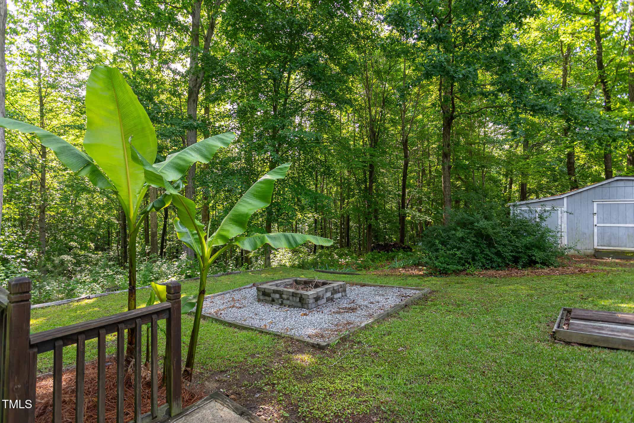 Super Convenient country setting nicely placed between historic downtown Wake Forest and downtown Youngsville. Within 3.2 miles from both destinations you will find this a perfect retreat with access to popular parks, shopping and dining. This hidden gem rests beautifully amongst trees and a private wooded view. And this home blends everyday comfort with practical spaces with two separate entry points and no carpet throughout, it’s designed for ease of living. Engineered hardwood flooring adorns the home extensively with tile flooring in the kitchen/dining rooms. Cozy living room has built-in shelving, and a classic fireplace, perfect for relaxed quiet evenings. Formerly a formal dining room, the room at the front is separated from the rest of the spaces, ideal for a home office, play space, music room or study. The kitchen delivers plenty of counter space and includes a dining area that has a beautiful view and easy access to the living room and the sunroom. The sunroom, full of windows has built-in bookshelves and creates a cozy secondary space to relax and enjoy friends and family. Three bedrooms include a welcoming owner’s suite with it’s own full bath and two additional rooms, having easy access to the full secondary bath. Out back, enjoy endless discoveries while you’re enveloped in a beautiful natural setting. Easily entertain on your spacious patio, roast marshmallows by the firepit, and bask in the delight of having three additional storage structures, positioned at the edge of the unknown. Welcome to your next adventure!