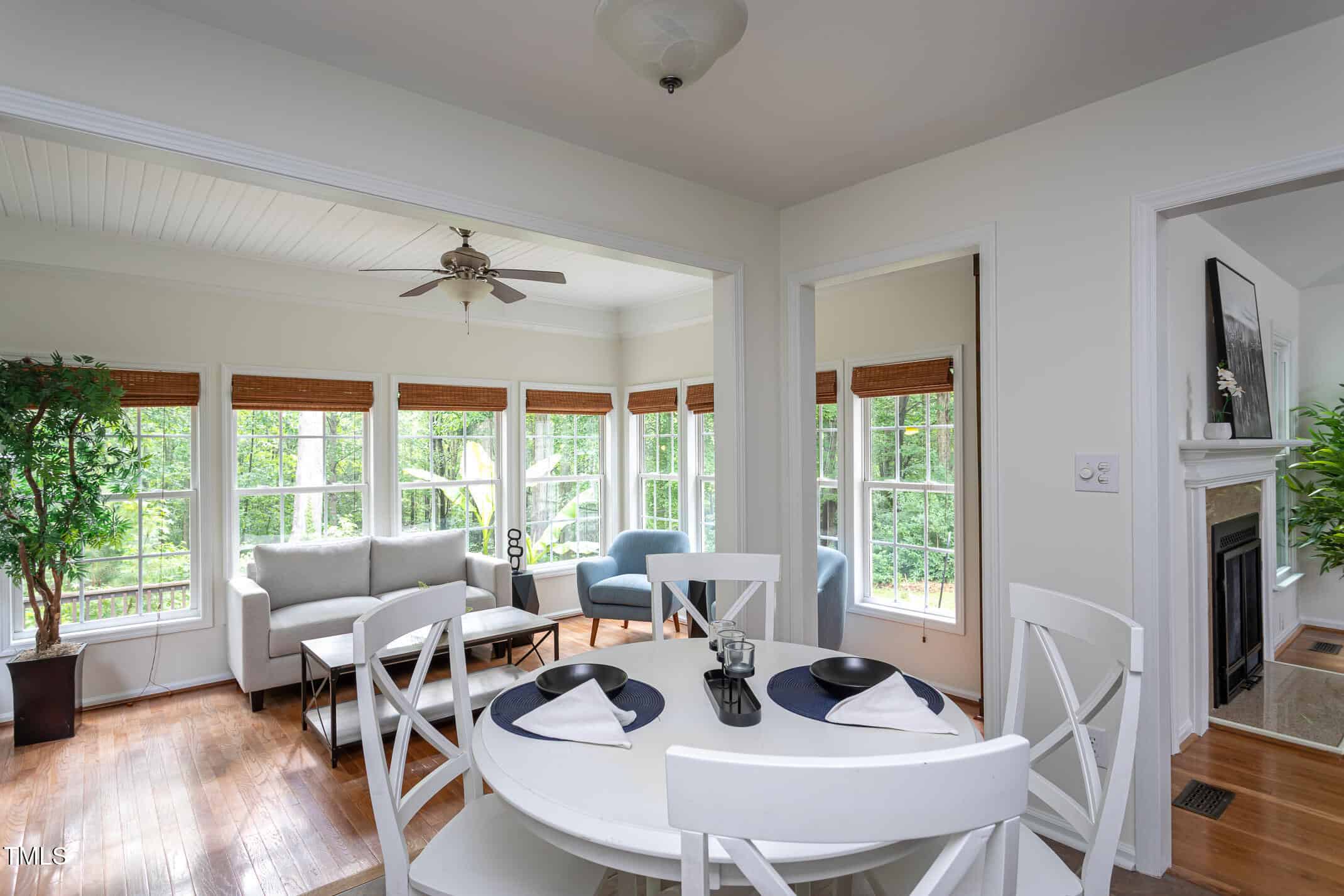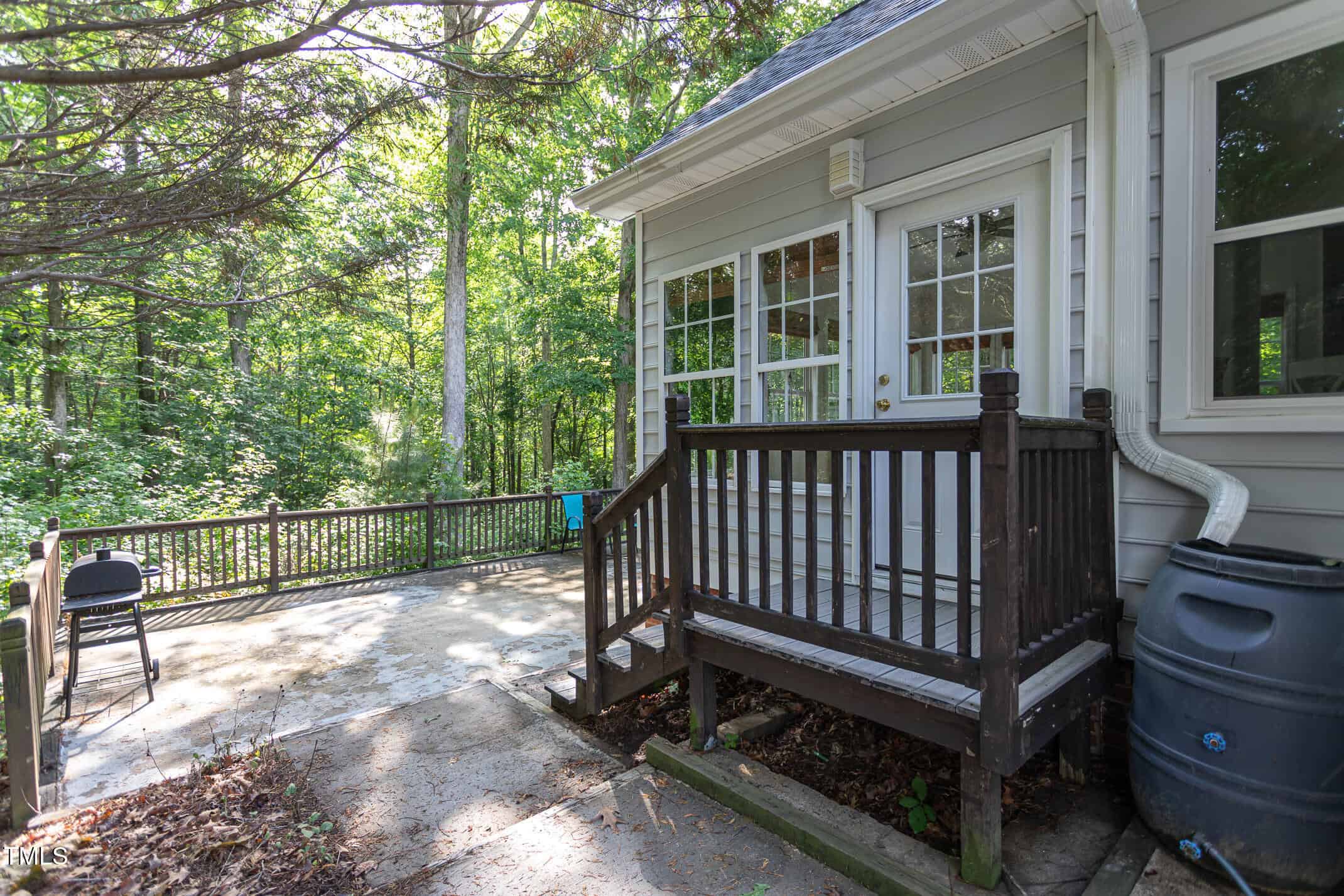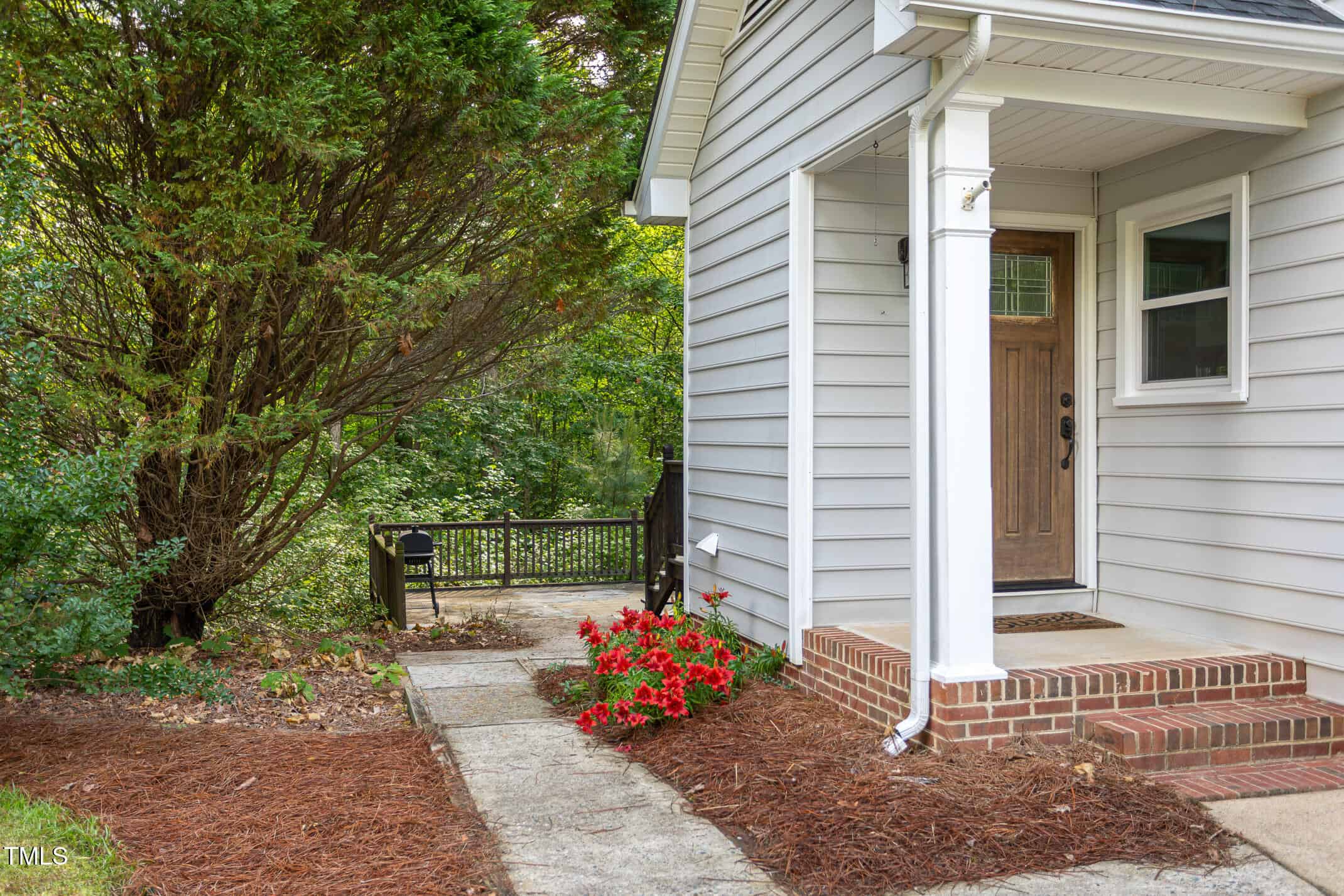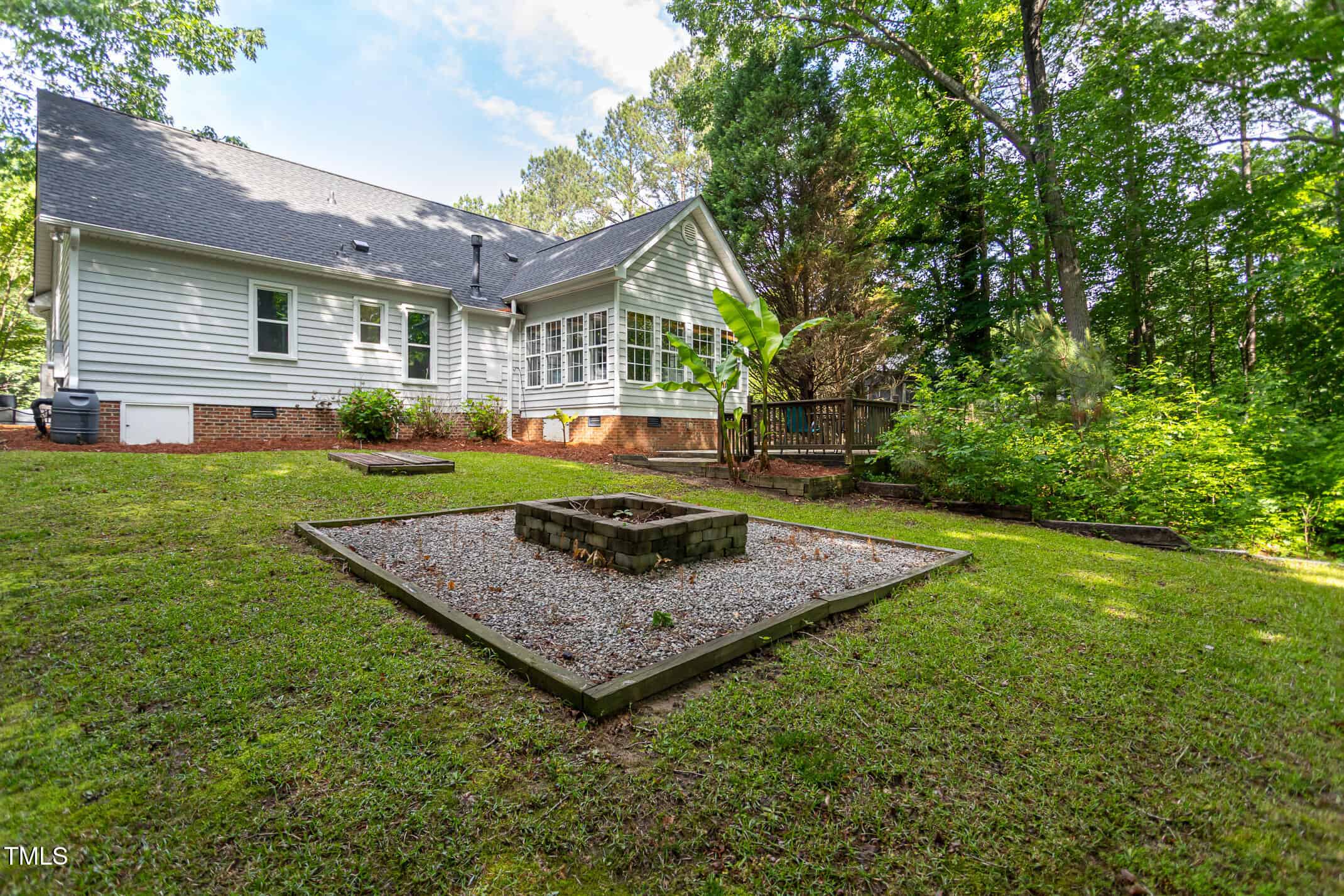 Super Convenient country setting nicely placed between historic downtown Wake Forest and downtown Youngsville. Within 3.2 miles from both destinations you will find this a perfect retreat with access to popular parks, shopping and dining. This hidden gem rests beautifully amongst trees and a private wooded view. And this home blends everyday comfort with practical spaces with two separate entry points and no carpet throughout, it’s designed for ease of living. Engineered hardwood flooring adorns the home extensively with tile flooring in the kitchen/dining rooms. Cozy living room has built-in shelving, and a classic fireplace, perfect for relaxed quiet evenings. Formerly a formal dining room, the room at the front is separated from the rest of the spaces, ideal for a home office, play space, music room or study. The kitchen delivers plenty of counter space and includes a dining area that has a beautiful view and easy access to the living room and the sunroom. The sunroom, full of windows has built-in bookshelves and creates a cozy secondary space to relax and enjoy friends and family. Three bedrooms include a welcoming owner’s suite with it’s own full bath and two additional rooms, having easy access to the full secondary bath. Out back, enjoy endless discoveries while you’re enveloped in a beautiful natural setting. Easily entertain on your spacious patio, roast marshmallows by the firepit, and bask in the delight of having three additional storage structures, positioned at the edge of the unknown. Welcome to your next adventure!