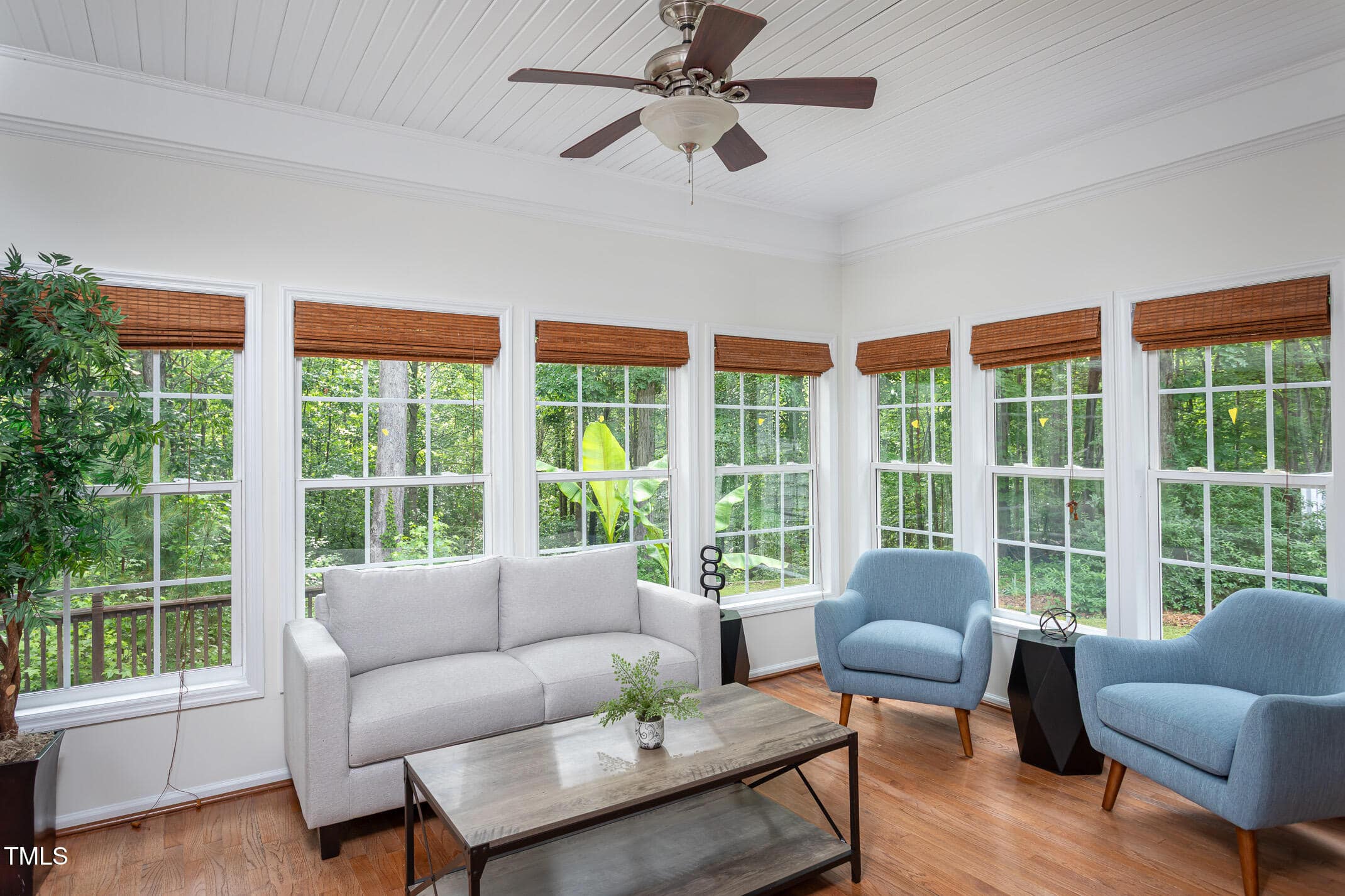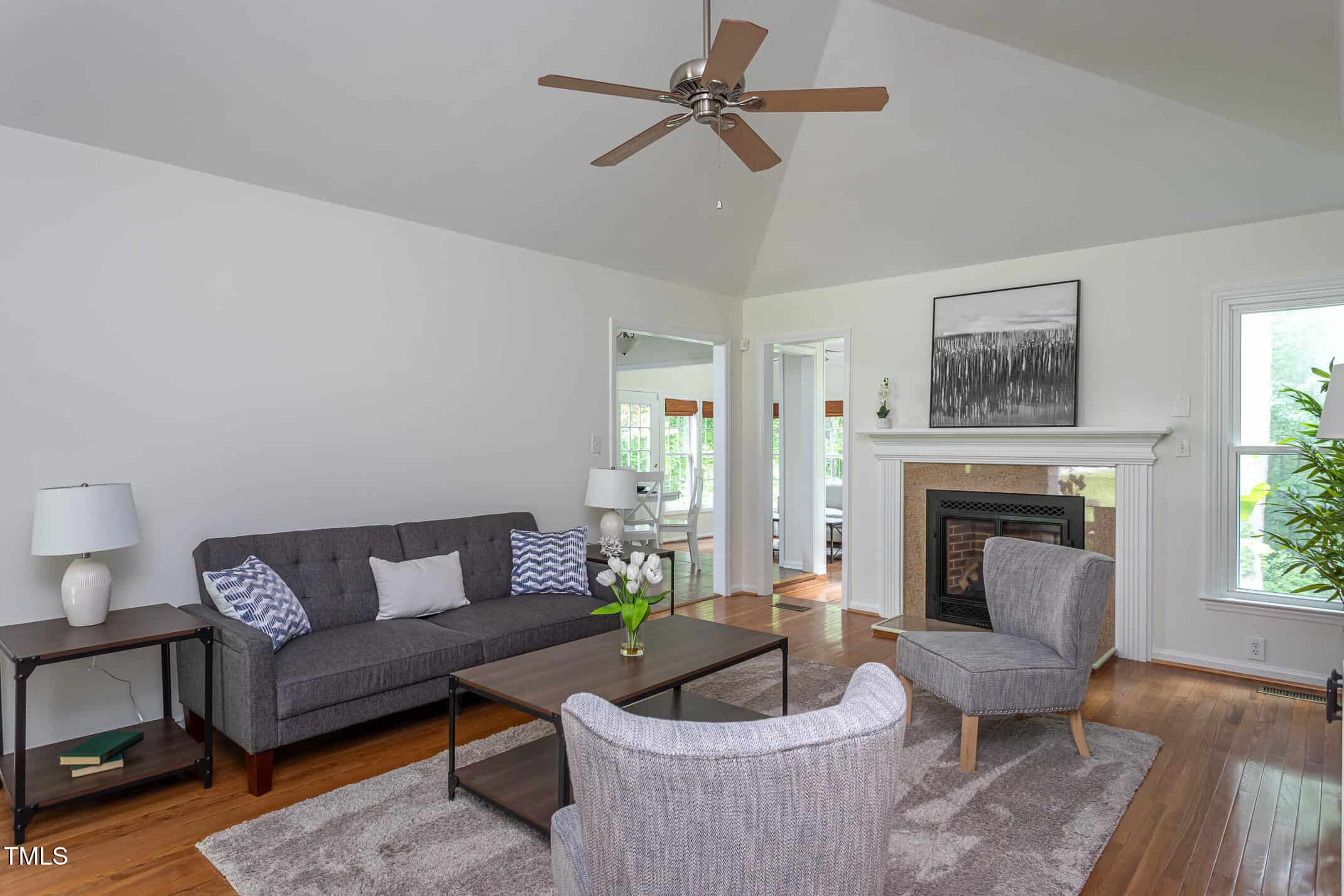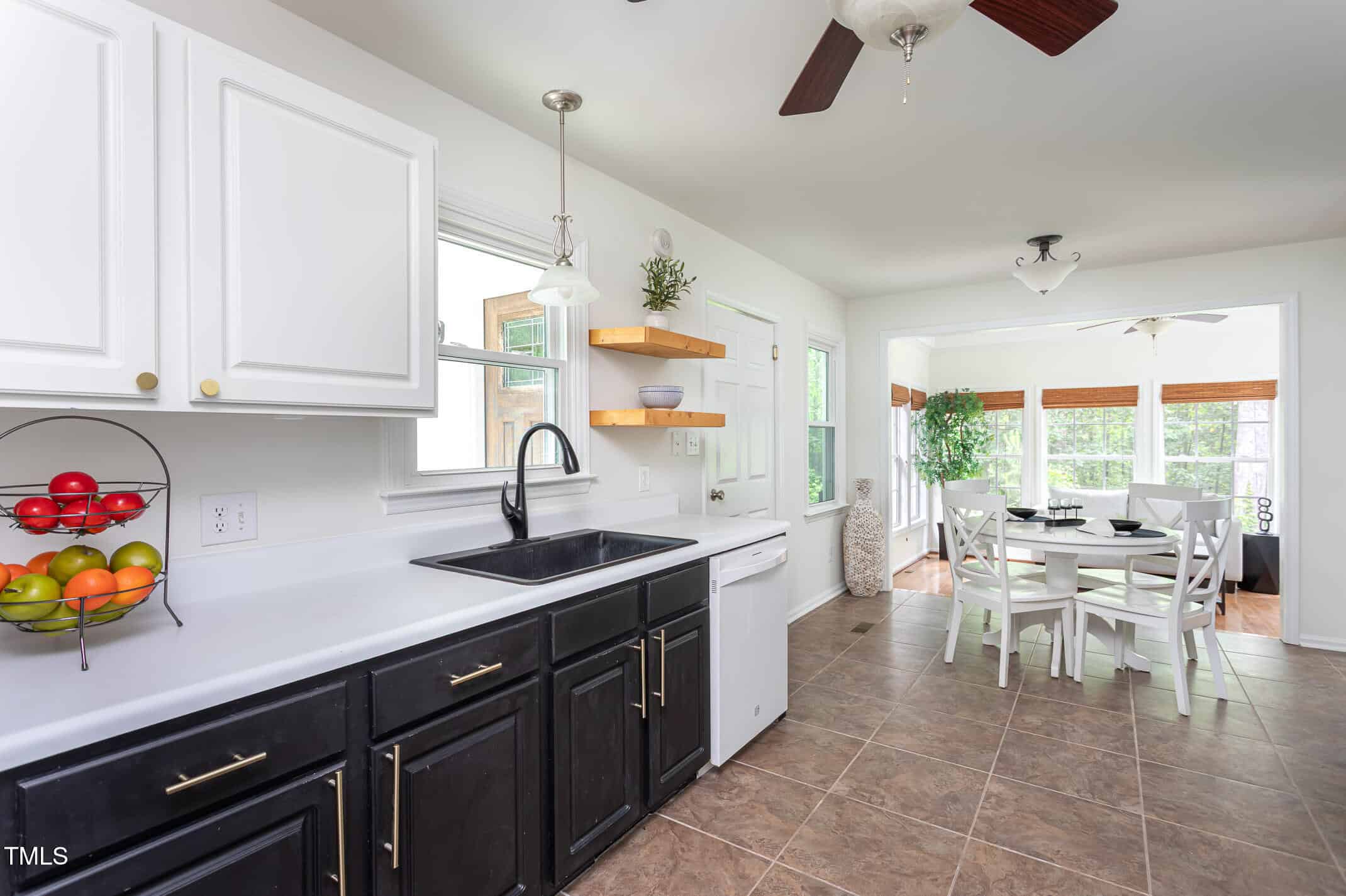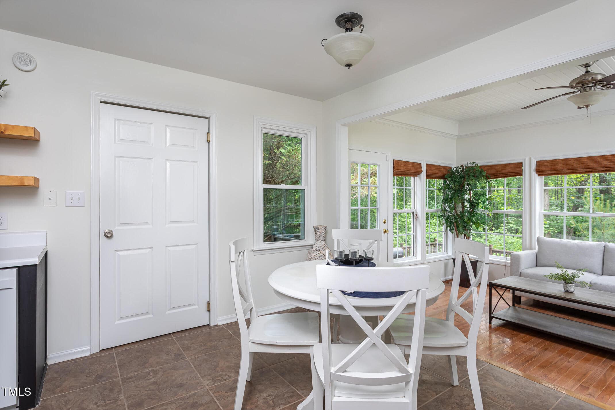 Super Convenient country setting nicely placed between historic downtown Wake Forest and downtown Youngsville. Within 3.2 miles from both destinations you will find this a perfect retreat with access to popular parks, shopping and dining. This hidden gem rests beautifully amongst trees and a private wooded view. And this home blends everyday comfort with practical spaces with two separate entry points and no carpet throughout, it’s designed for ease of living. Engineered hardwood flooring adorns the home extensively with tile flooring in the kitchen/dining rooms. Cozy living room has built-in shelving, and a classic fireplace, perfect for relaxed quiet evenings. Formerly a formal dining room, the room at the front is separated from the rest of the spaces, ideal for a home office, play space, music room or study. The kitchen delivers plenty of counter space and includes a dining area that has a beautiful view and easy access to the living room and the sunroom. The sunroom, full of windows has built-in bookshelves and creates a cozy secondary space to relax and enjoy friends and family. Three bedrooms include a welcoming owner’s suite with it’s own full bath and two additional rooms, having easy access to the full secondary bath. Out back, enjoy endless discoveries while you’re enveloped in a beautiful natural setting. Easily entertain on your spacious patio, roast marshmallows by the firepit, and bask in the delight of having three additional storage structures, positioned at the edge of the unknown. Welcome to your next adventure!
