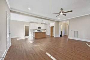 Slow Down…Relax…You’re Home. This lovely custom new home, in a quiet acre country setting, has design elements galore. Main level is an open floorplan with handsome LVP flooring throughout.