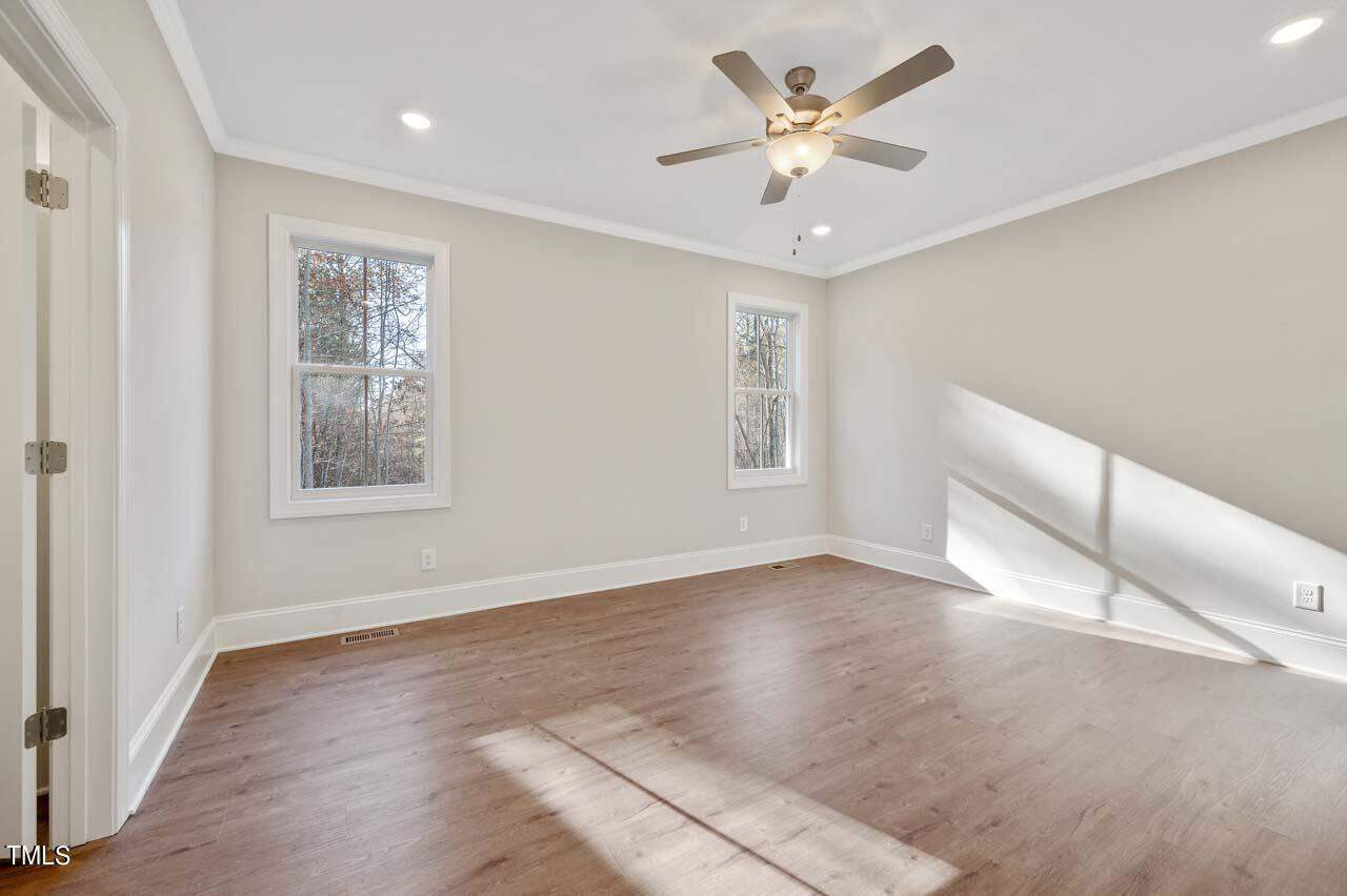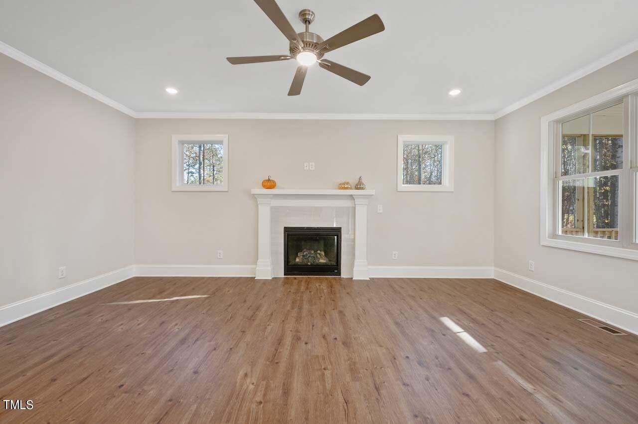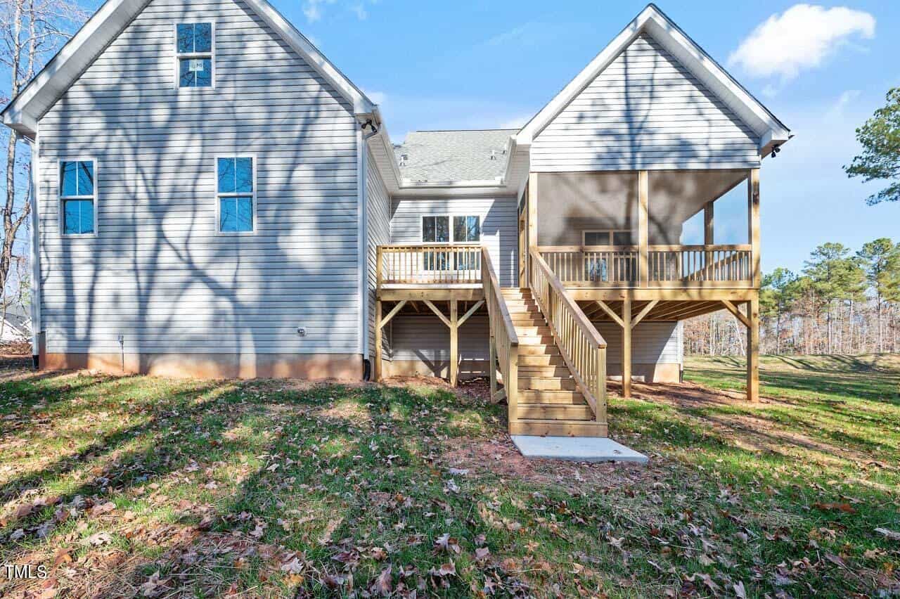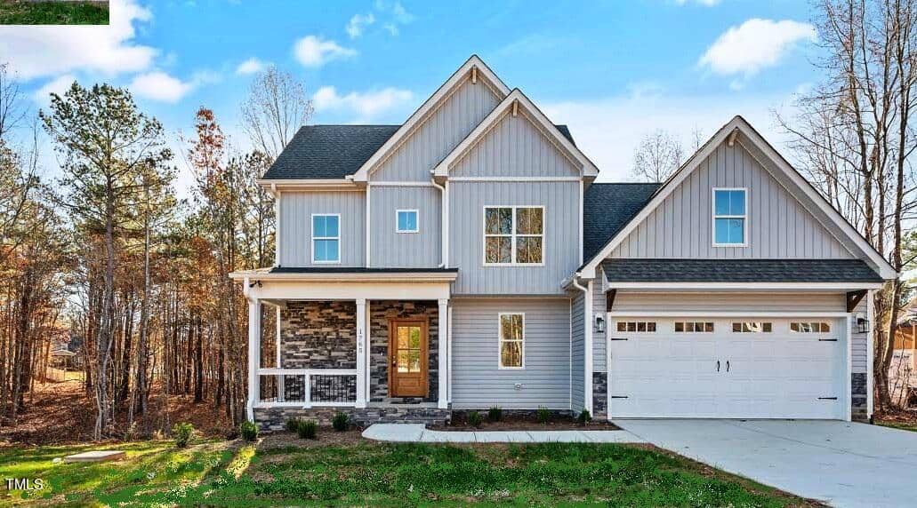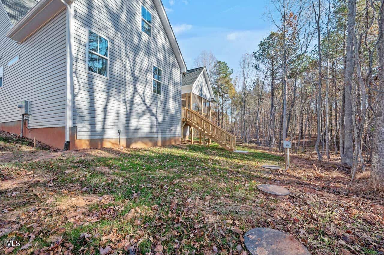 Slow Down…Relax…You’re Home. This lovely custom new home, in a quiet acre country setting, has design elements galore. Main level is an open floorplan with handsome LVP flooring throughout. The designer kitchen dazzles with quartz countertops and stainless steel appliances. Soft-close cabinets and drawers, and 42” tall wall cabinets are additional compliments. Mega storage in the adjacent walk-in large separate pantry room. Enjoy time in the family room with its striking gas logs fireplace and windows with a relaxing natural view. The idyllic screen porch is a step near and has attached grilling deck. Natural gas items include the range, log fireplace, tankless water heater and heating. Moldings, heavy trim and tall baseboards add handsome architectural detail. 1st floor main bedroom and walk-in closet (with solid shelving and built-ins) has LVP flooring. The gorgeous ensuite bath has a 9′ 2-sink quartz -top vanity (with tons of storage cabinets/drawers), beautiful ceramic tiled floor, and an oversized floor to ceiling gorgeous tiled shower with built-in nooks and bench, and frameless glass shower enclosure, plus a transom window. Private roomy water closet includes a linen closet for even more storage. Powder room with a quartz-top vanity adds more style to this home. Main level roomy laundry room with wall cabinet is conveniently located. 2-car garage has a finished and painted interior, and remote (WiFi) control garage door. UPstairs are 2 more bedrooms, a full bath with tile floor, 2-sink quartz top vanity and linen closet, all private from the separate tub/shower & toilet room. The large bonus room has storage closet and 2 floored walk-in attic rooms (possible future flex room, exercise, office, or…) completing the 2nd level. Stairs have stained hardwood stair treads and metal railings. Upstairs has upgraded carpet and carpet padding. This ~acre homesite is partially cleared, has idyllic natural views with hardwoods. No HOA dues and no city taxes This Ironwood Phase 3 neighborhood has 16+Acres of Deeded Open Space on the north side of River Club Way. Enjoy Country Living with just a 12-20 minutes drive to 2 different large Shopping Centers, sundry services, restaurants, Wake Forest downtown and the major shopping district located Hwys 1 and 98. Come see for yourself!