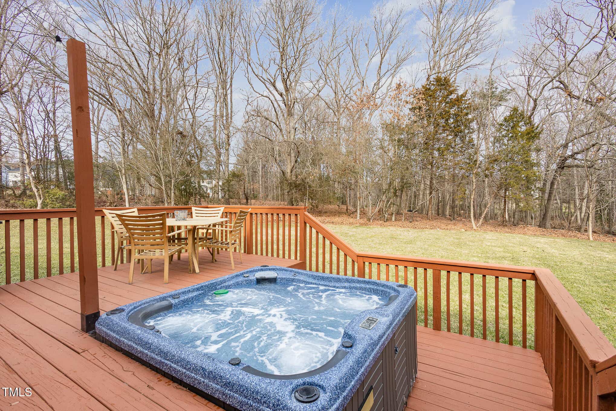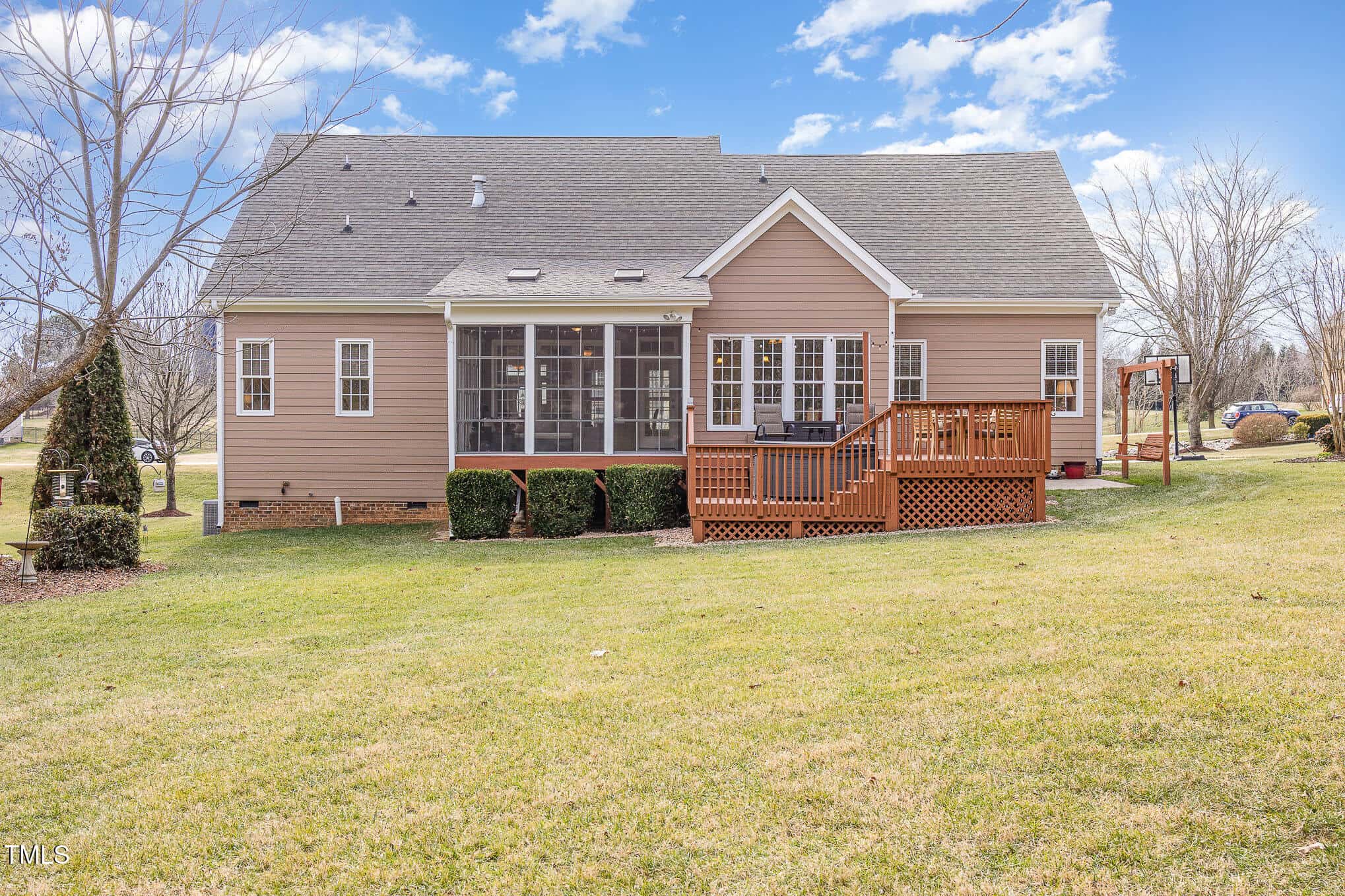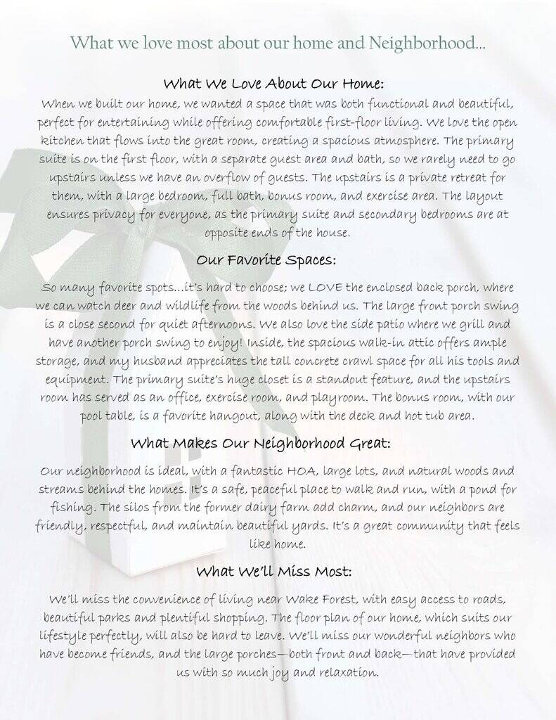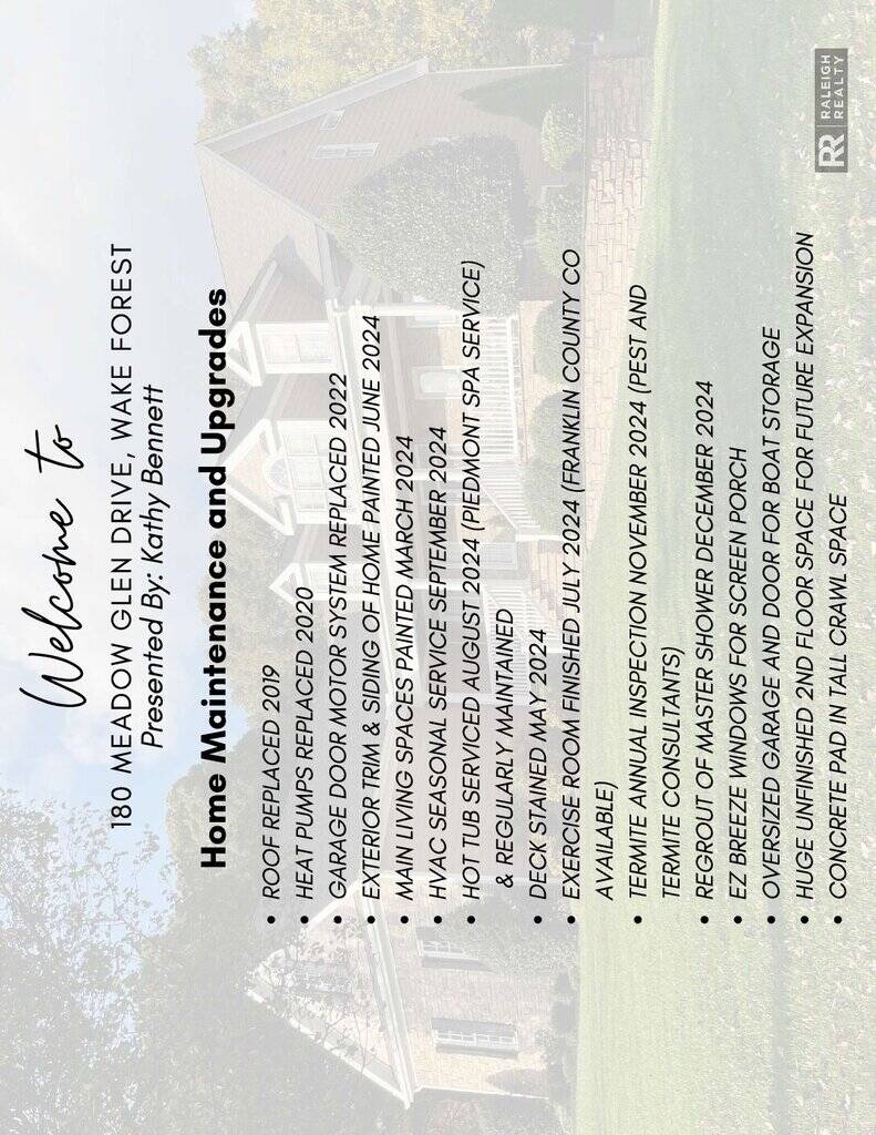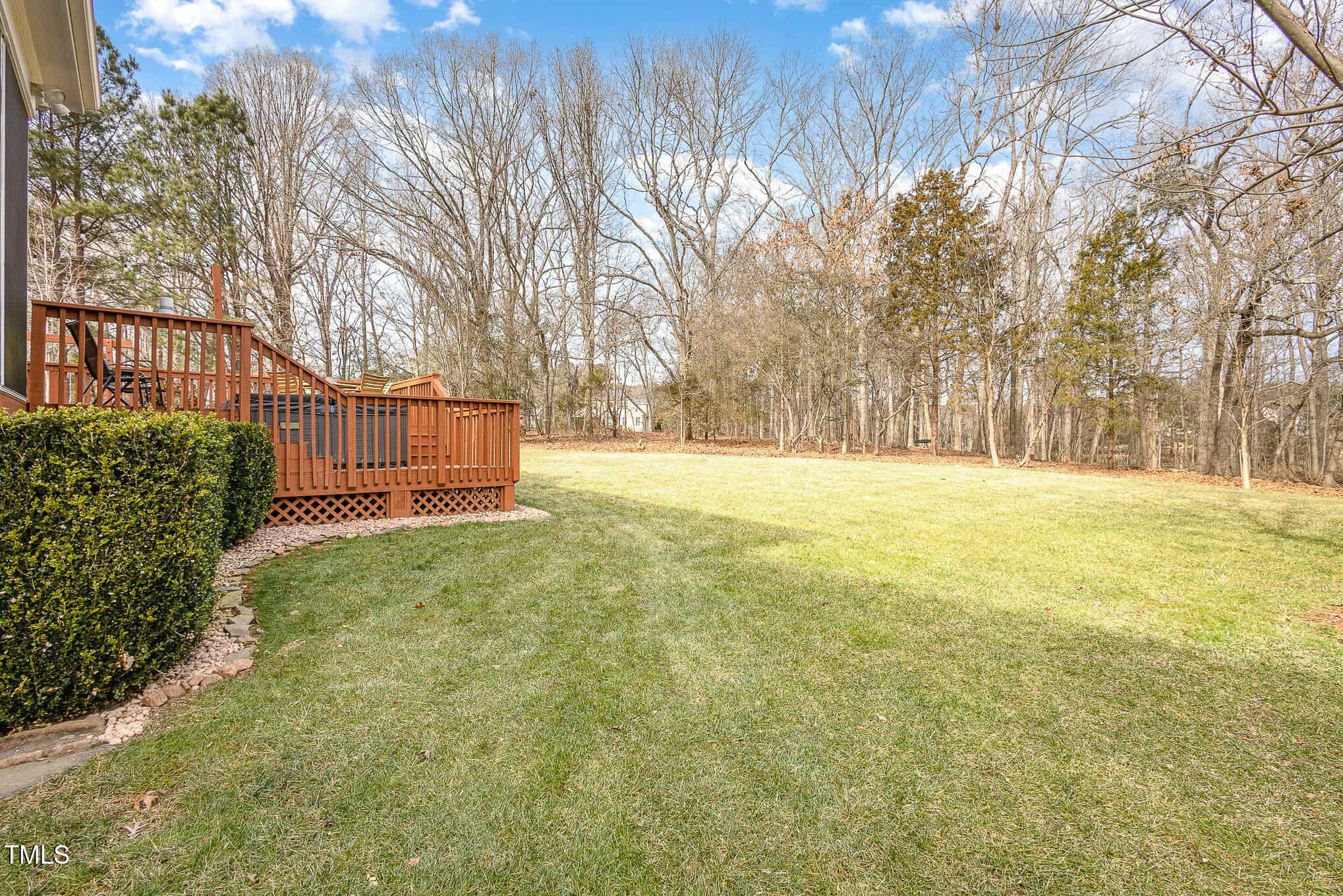 Welcome to your custom dream home in one of Wake Forest’s most coveted neighborhoods! Nestled on a private, tree-lined 1-acre lot with an irrigation system, this stunning property is perfect for relaxation and entertaining. Enjoy serene views from the kitchen, the screened porch with EZ Breeze windows, or the expansive deck featuring a sunken hot tub.