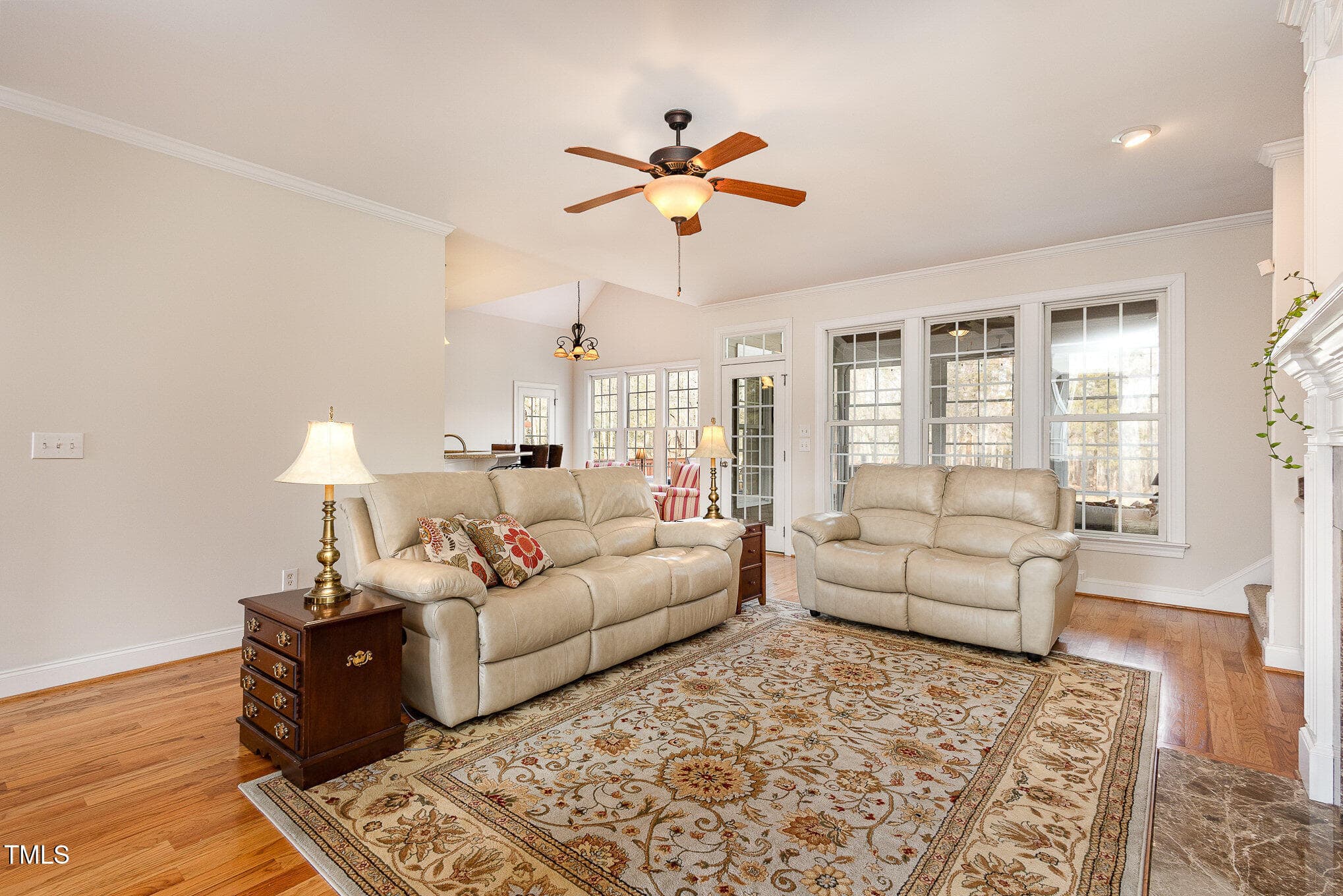 The main floor boasts a luxurious primary suite with a spa-like bath and oversized walk-in closet, along with two additional bedrooms and a full bathroom. The open kitchen overlooks a vaulted breakfast room and a cozy family room with a fireplace, while the formal dining room offers the perfect setting for gatherings.