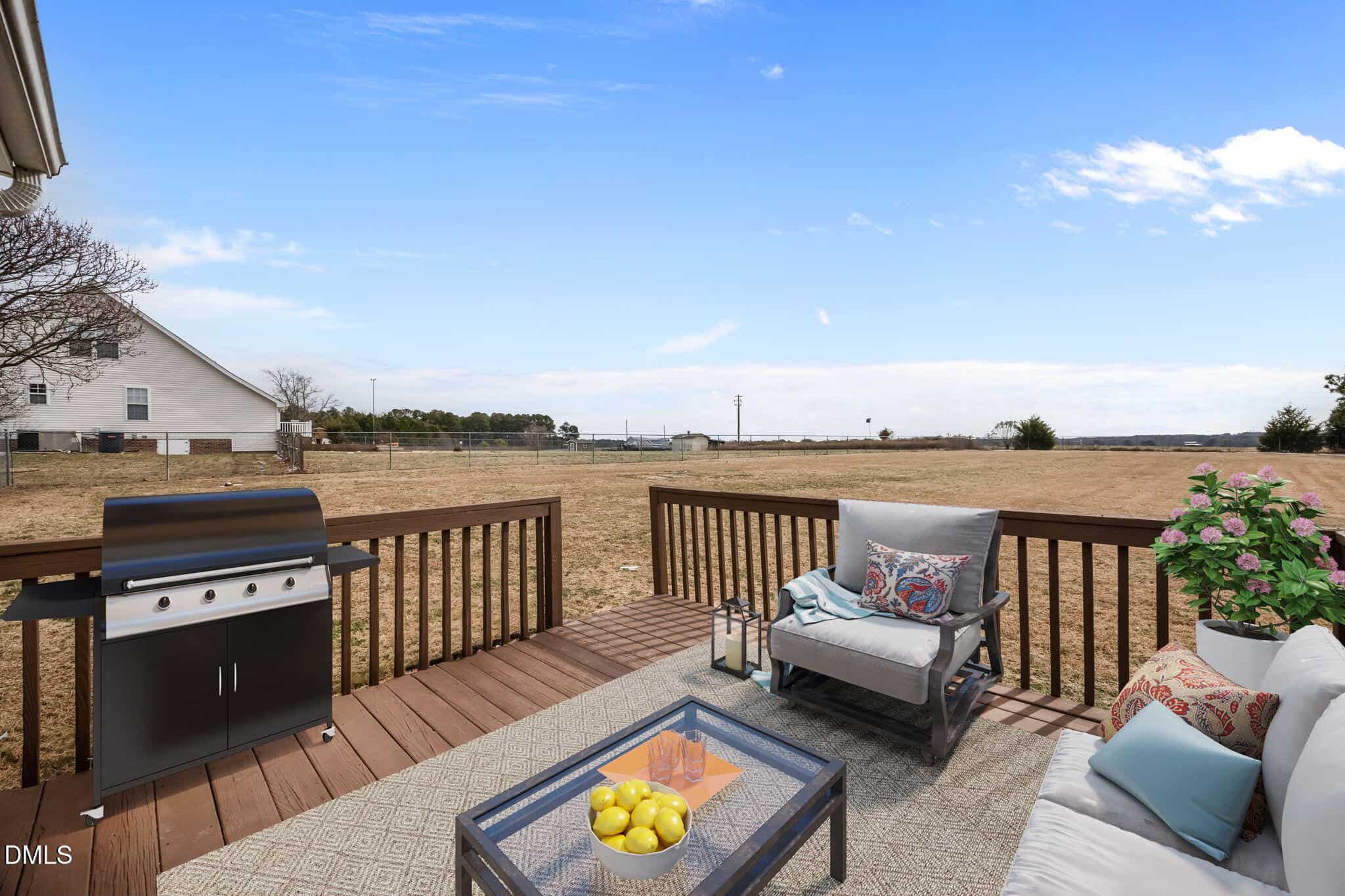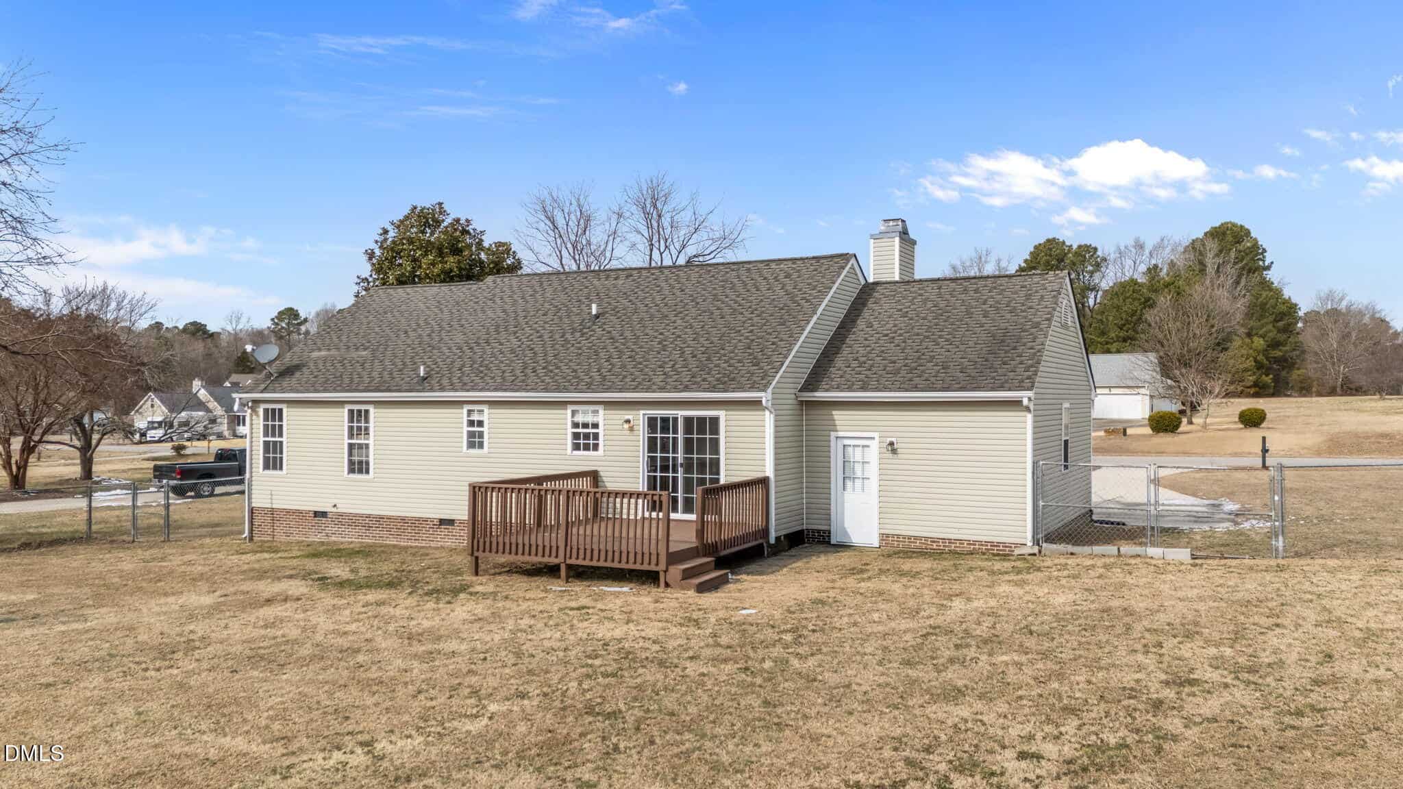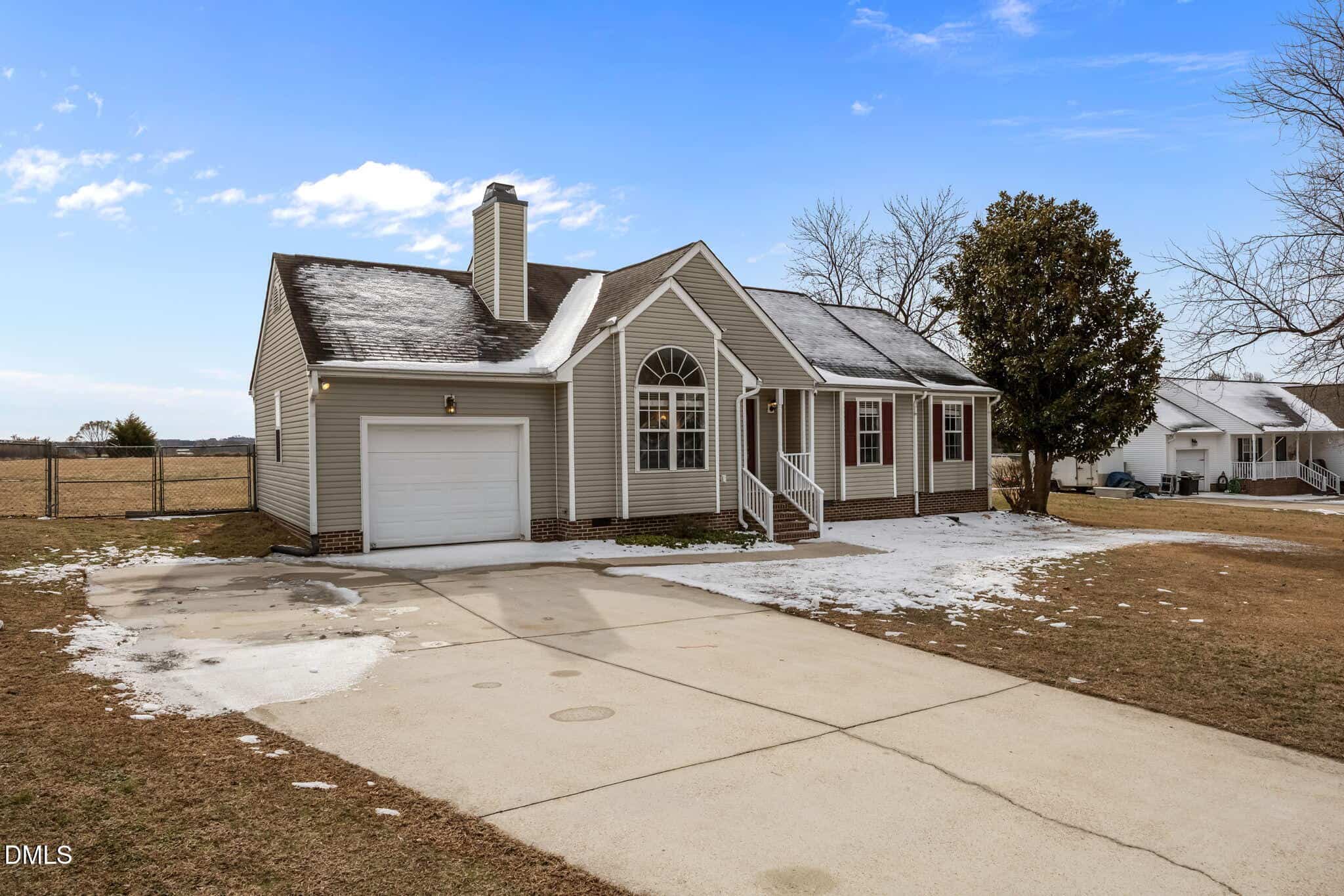 Nestled on an almost 1-acre lot, this charming ranch home offers 1,225 square feet of inviting living area. The spacious primary suite includes a generous walk-in closet and a large ensuite bath for ultimate comfort. Two additional bedrooms provide plenty of space for guests. The kitchen is bright and cheerful with green cabinetry and stainless steel appliances, including a refrigerator that conveys. Enjoy meals in the dining area, which offers a stunning view of the expansive backyard – imagine relaxing here, planting a garden, or playing with the dog in the open space. Situated in an established neighborhood with large lots and no HOA, this home provides the privacy and freedom you’ve been seeking. The property is served by a septic system and well, with newer updates including the water heater and well pump. Whether you’re greeting guests on the welcoming front porch or hosting gatherings on the back deck, this home offers the perfect setting for making memories. Garage is semi-finished (no heat or A/C & no permit for work-”as is”). More usable space, storage space or buyer can convert back to a 1 car garage after moving in!