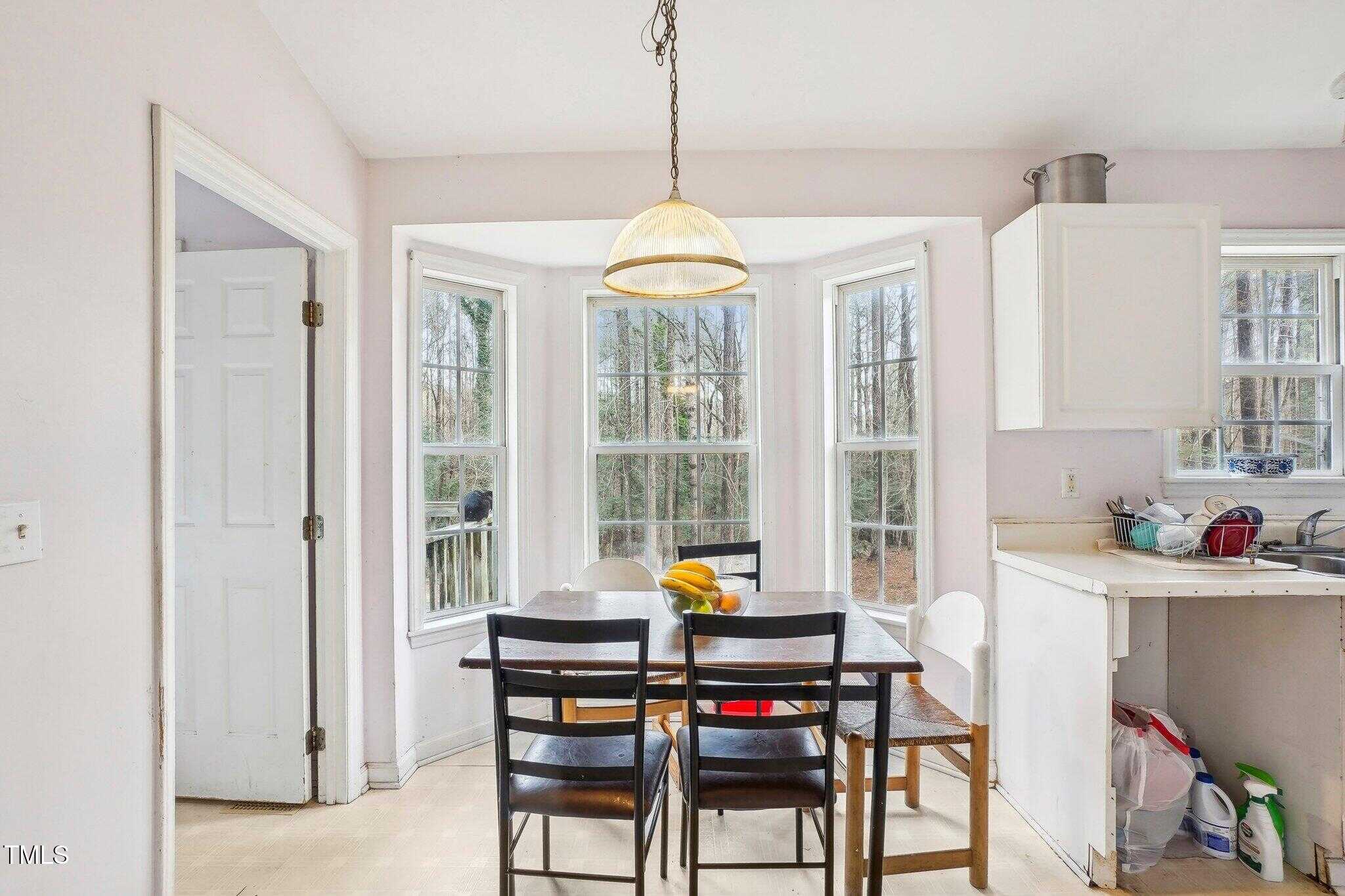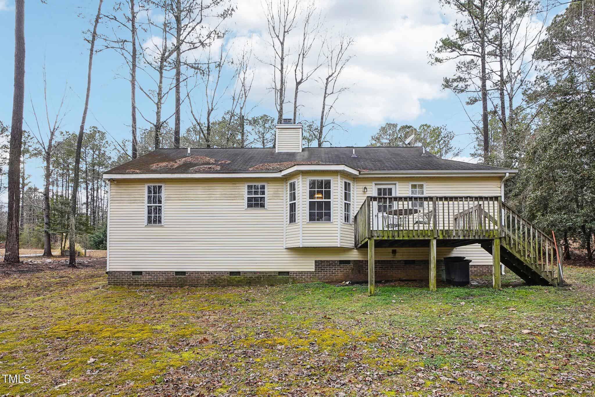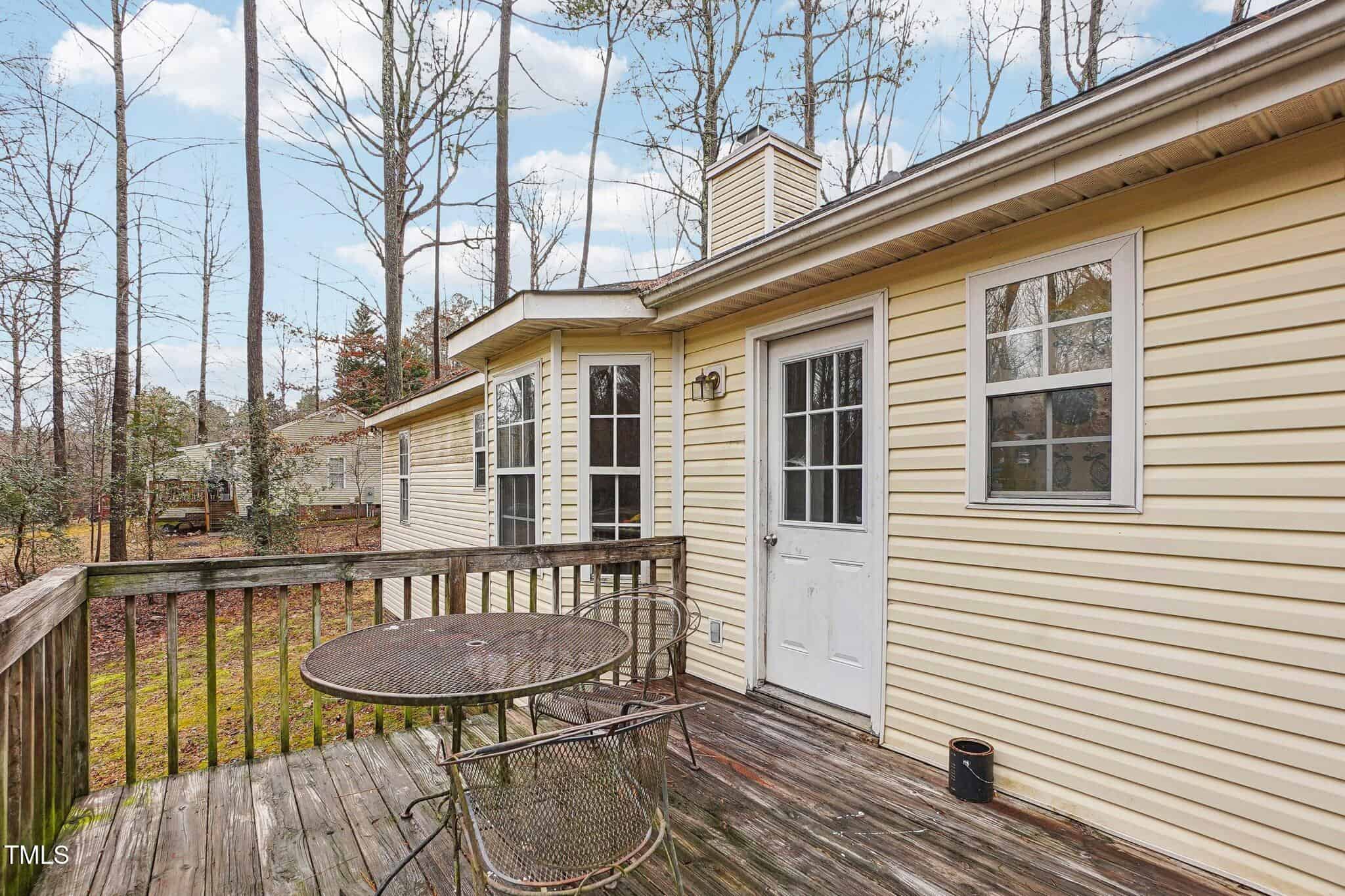 Welcome to 195 Crooked Creek Run, a charming home nestled on a spacious 0.85-acre lot in the serene community of Louisburg, NC. This delightful property boasts a welcoming front porch, perfect for relaxing and enjoying the peaceful surroundings. Inside, you’ll find a cozy living room with a beautiful fireplace, ideal for chilly evenings. The bright and airy breakfast nook offers a cozy spot for casual dining with a view of the backyard. Step outside to the back deck, a great place for outdoor entertaining or simply unwinding in nature. With ample space both indoors and outdoors, this home is perfect for those looking for comfort and tranquility in a picturesque setting.