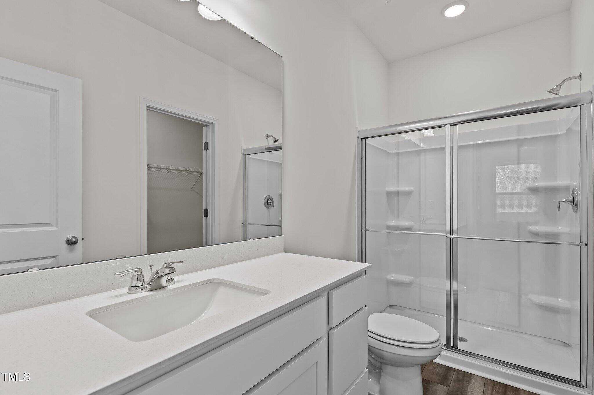 Primary Bath: White Shaker Cabinets, LVP Flooring & Walk-In Shower!