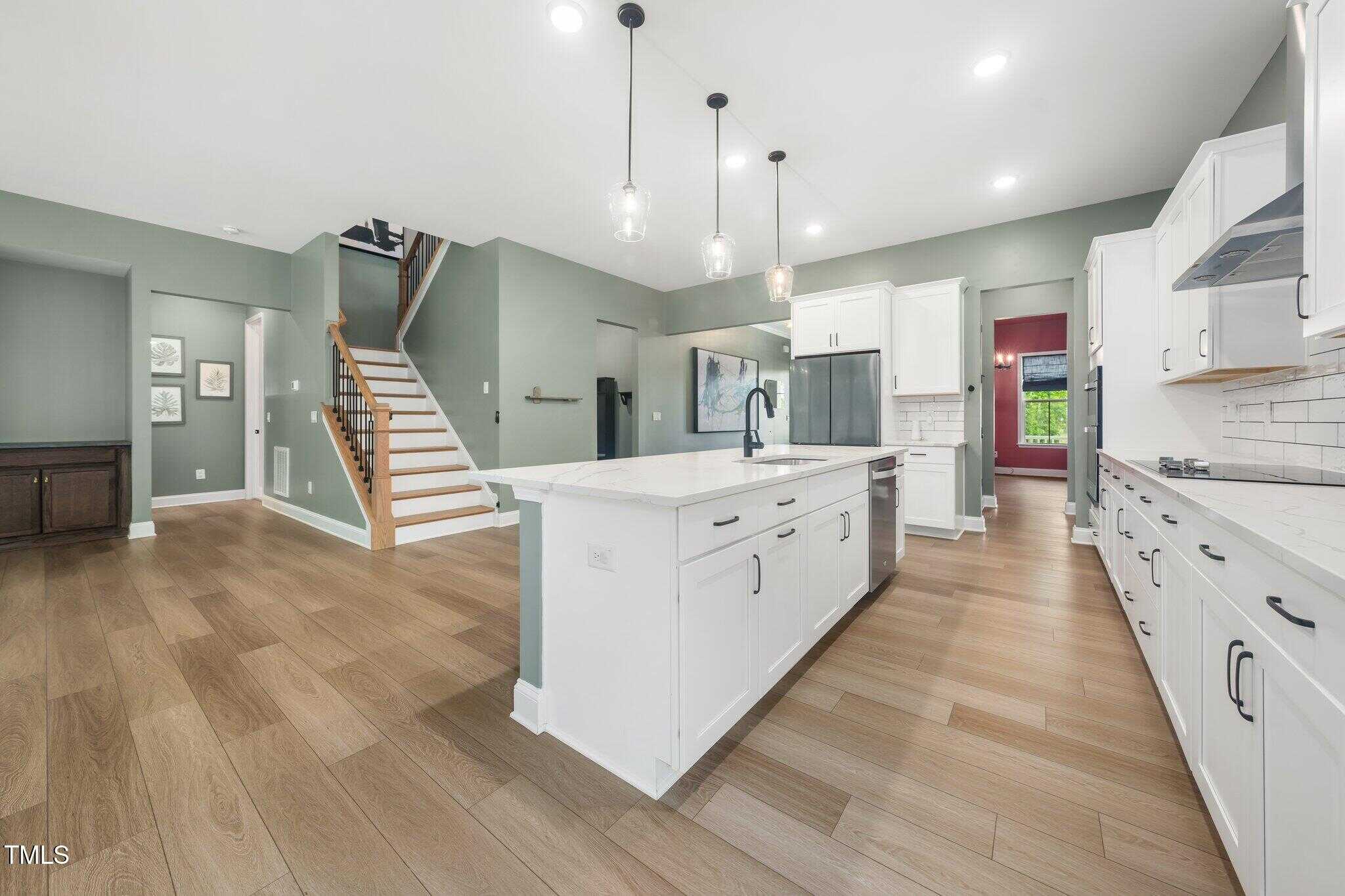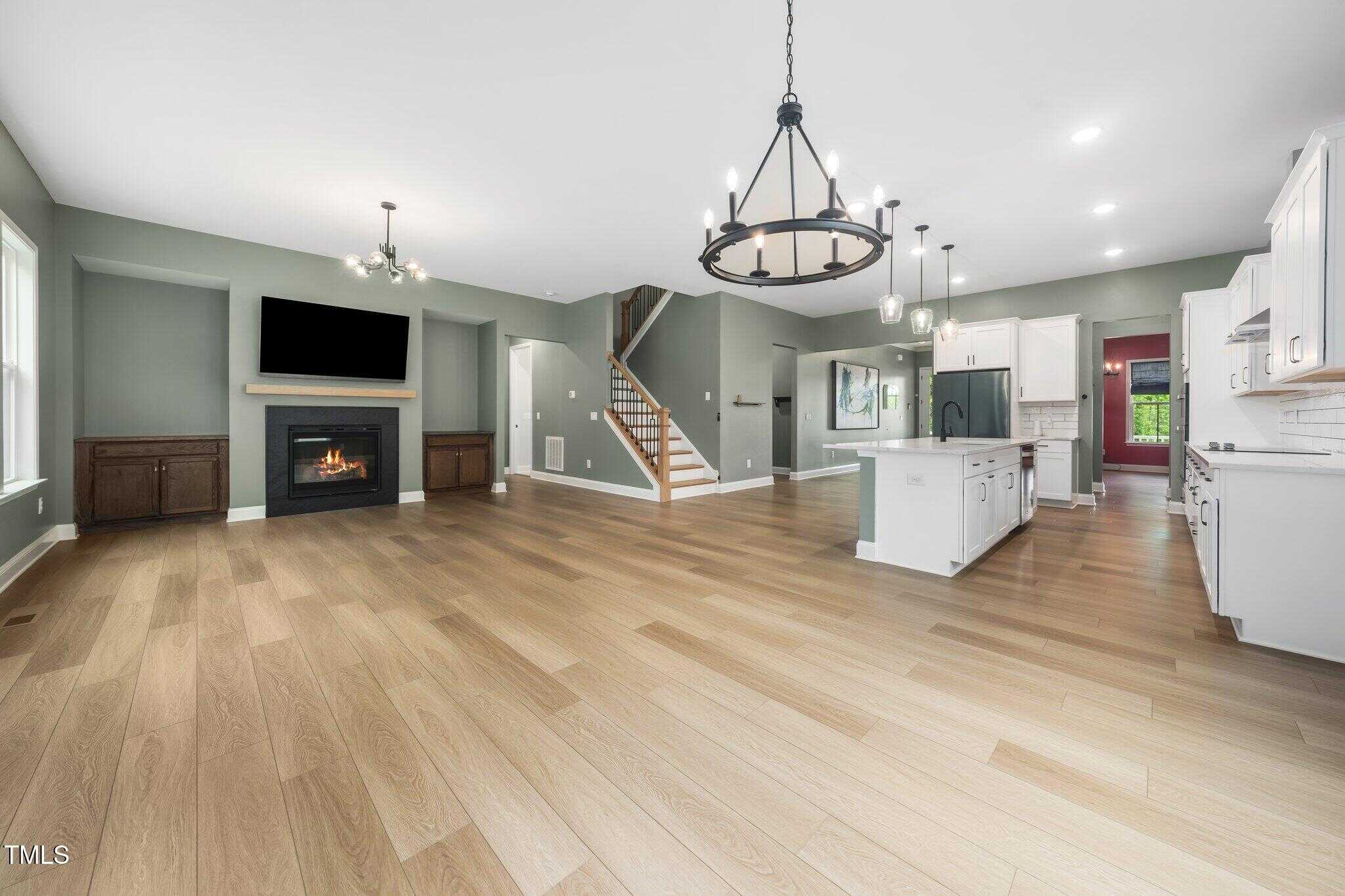 The main level features luxury vinyl flooring throughout. The open kitchen has endless cabinets under gorgeous quartz countertops, an elegant dining room, a mud room, and a butler’s pantry that flows into a walk-in pantry, providing ample storage for every need. Whole house water filtration system adds peace of mind to the private well, with the addition of a reverse osmosis filtration system attached to refrigerator. The living room is enhanced by custom built-ins, adding both character and function to your space. Upstairs, a versatile loft offers additional living space. The large laundry room is conveniently located near primary suite. Primary suite boasts separate vanities, a tiled shower with glass doors, a soaking tub, and a spacious walk-in closet. Secondary rooms share a convenient Jack-and-Jill style bathroom, with another full bathroom located near office / bonus room.
