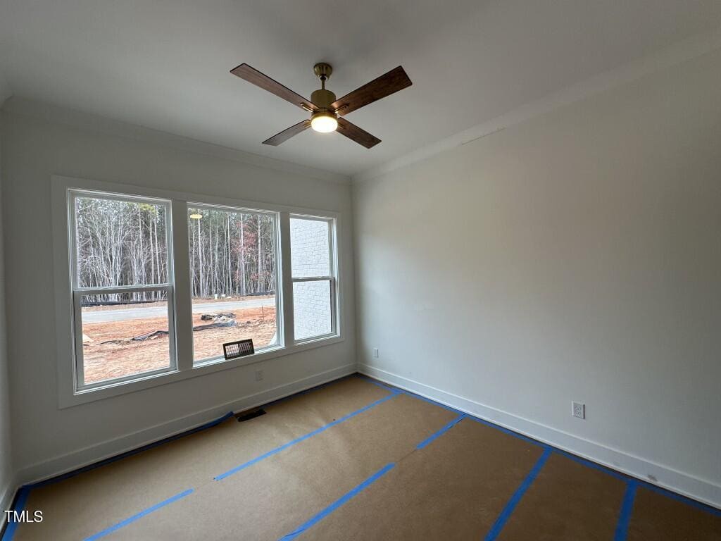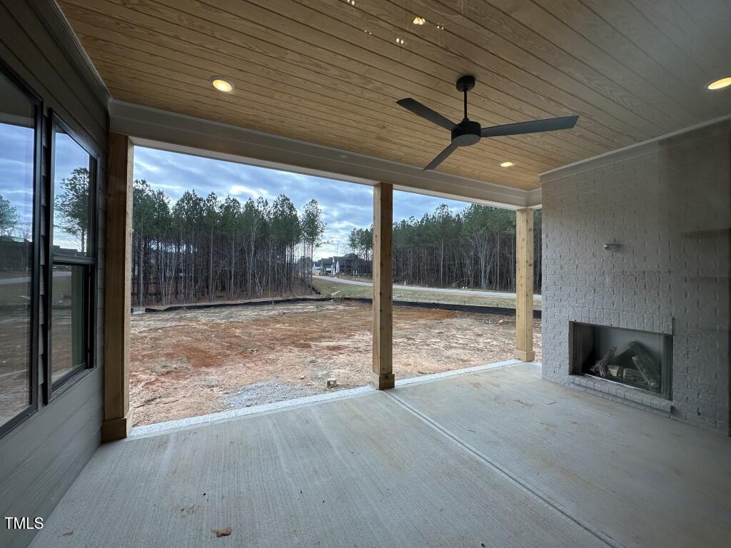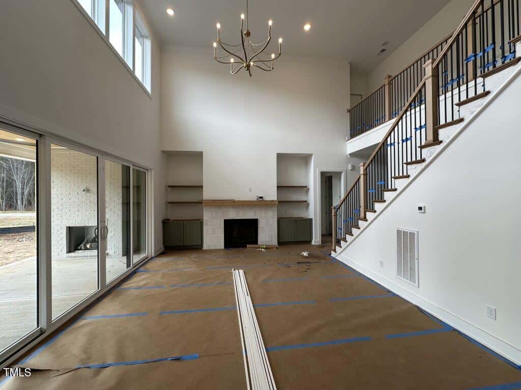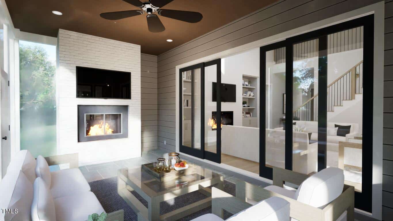 Situated on a spacious .69-acre corner lot, this home includes a 3-car garage. Inside, the living room welcomes you with a soaring two-story ceiling, a cozy gas log fireplace, built-ins, and large sliding glass doors that open to an oversized patio. The patio, complete with a wood-burning brick fireplace, creates a perfect setting for relaxing North Carolina evenings.