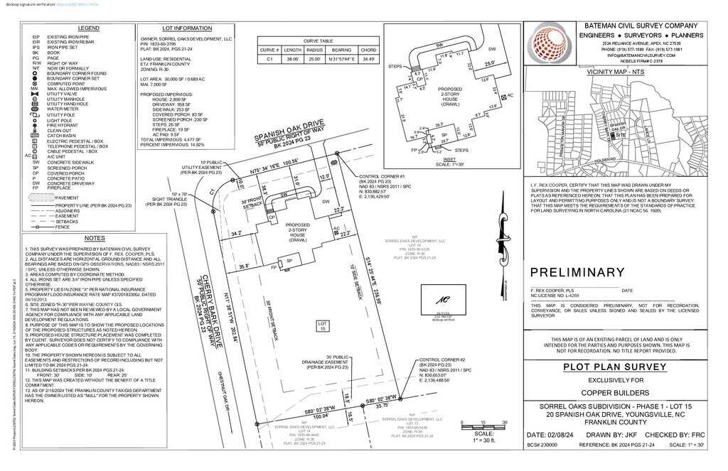 This stunning custom-built home by Copper Builders is located in the newly established Sorrell Oaks subdivision. Set in the peaceful town of Youngsville, NC, Sorrell Oaks offers a serene lifestyle with the beauty of North Carolina’s landscapes while providing easy access to Raleigh, Wake Forest, and other nearby cities. Situated on a spacious .69-acre corner lot, this home includes a 3-car garage. Inside, the living room welcomes you with a soaring two-story ceiling, a cozy gas log fireplace, built-ins, and large sliding glass doors that open to an oversized patio. The patio, complete with a wood-burning brick fireplace, creates a perfect setting for relaxing North Carolina evenings. The main level hosts both the owner’s suite and a private guest suite. The owner’s suite features a vaulted ceiling, a luxurious bath with a freestanding tub, and a zero-entry tiled shower with a bench seat. The kitchen centers around a large quartz island with a seamless extension into a connected eat-in table—ideal for gathering and dining—and sits adjacent to a sunlit dining space. Upstairs, you’ll find two additional bedrooms, each with ensuite baths, along with a spacious game room that offers plenty of room for comfort and entertainment. This home beautifully balances luxury with the charm of peaceful surroundings—don’t miss your chance to experience life at Sorrell Oaks!