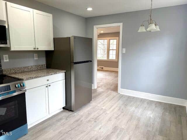 $225,000 w/ $3000 CC for Buyer at Asking Price! SELLER READY TO SELL! Totally REMODELED & Move-In Ready 1080 SF Brick RANCH for One Story Living on CORNER LOT w/ 210′ of Road Frontage. 3 BR (Primary w/ Accent Wall 15.2×10) & 1 BA. UPDATES Include: All NEW Electrical, Plumbing, Fixtures & LVP Flooring; Sheet Rock Ceilings & some walls, Gutted kitchen w/ GRANITE Counters Tops & Accent Backsplash, cabinets & All New SS Appls;, New Laundry Closet w/ Stackable Washer/Dryer that STAYS & NEW Water Heater; Totally Gutted Bathroom w/ Tile Surround Tub; and Painted Inside. New Storm Doors + NEW 10×9.5 Deck /Veranda at Side Entry. 12×12 Storage Bld in Back Yd. Other Features Include Replacement windows & Gas Furnace & Sep AC. Quiet Neighborhood close vicinity to Walkable Downtown with Shopping and Dining. Great for first time home Buyers, Seniors & Anyone who wants a Turn-Key Home with all renovations complete. Peace and comfort combined – don’t miss out on this Gem! CAN VIEW AT A MOMENTS NOTICE!