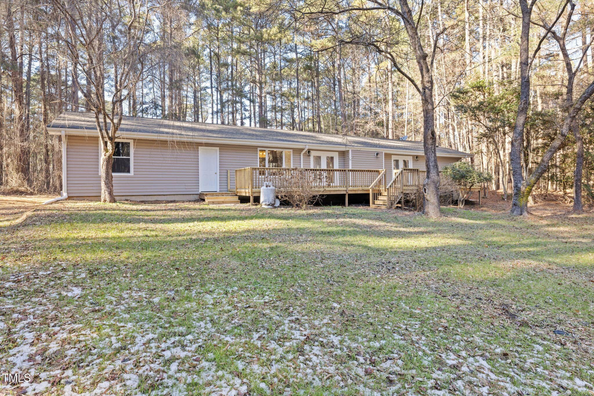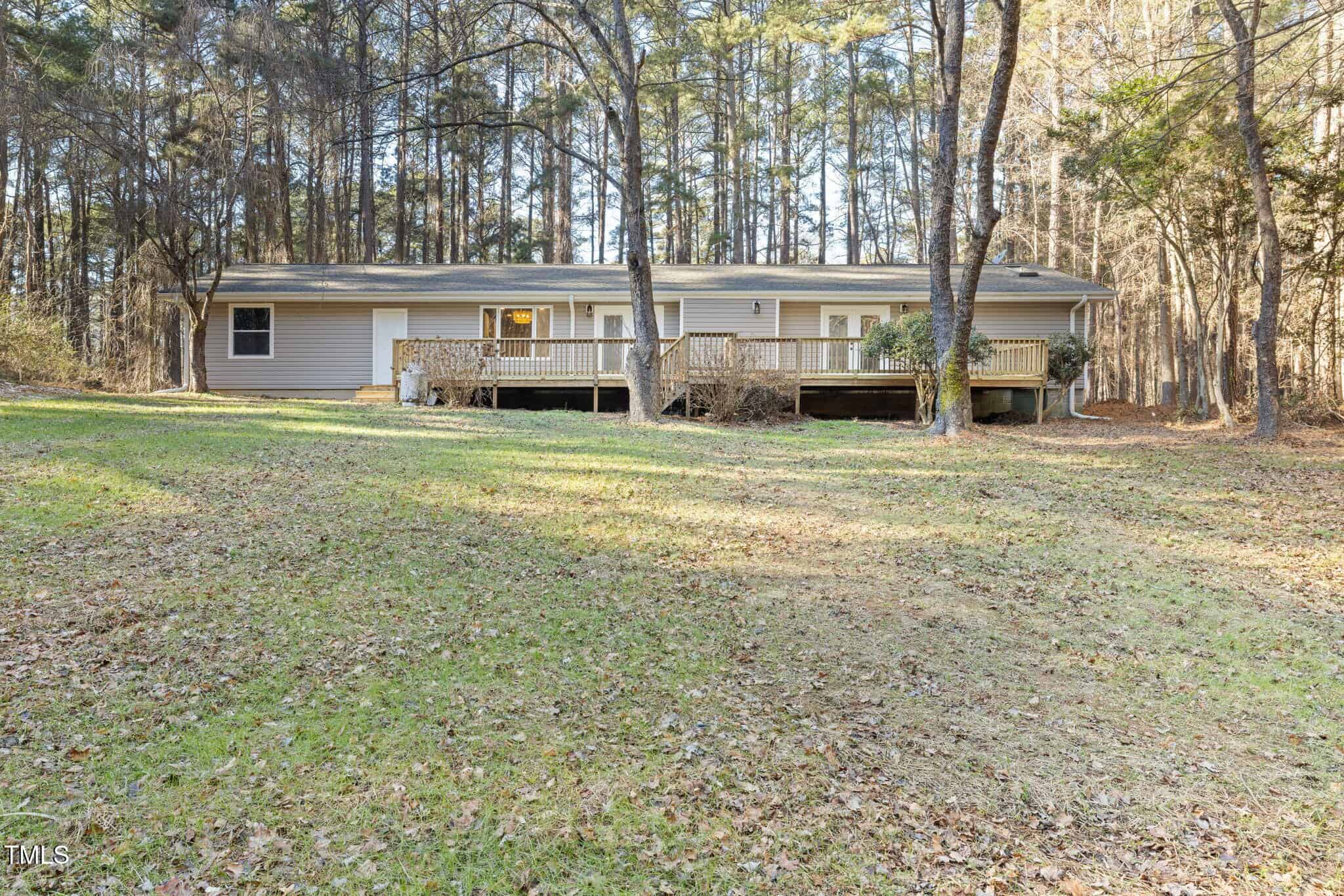 Ever dreamed of owning a beautifully renovated ranch on over TWO acres with an ADU? Look no further!! Welcome to 202 Cardinal Drive, a stunning, recently renovated property offering modern amenities and endless potential. Nestled just minutes from downtown Youngsville, this home provides the perfect balance of peaceful country living and convenient access to city life. As you approach, you’ll notice the two-car garage and spacious driveway that provides abundant parking for family and friends. Step inside to an open-concept great room that’s perfect for entertaining! The updated kitchen features brand-new stainless-steel appliances, a large pantry, and ample cabinet space for storage. The luxurious primary suite is a true retreat, with TWO closets, including a walk-in, and direct access to the expansive back deck, allowing you to enjoy the serenity of this two-acre property. The spa-like primary bathroom boasts a beautiful barn door, stunning herringbone tile in the walk-in shower, a 72-inch vanity, and a skylight that floods the space with natural light while maintaining privacy. The two additional bedrooms offer generous closet space, and the third bedroom is large enough for a cozy sitting area, couch, or table. Step outside and you’ll find an impressive 460+ square-foot deck that stretches nearly the entire length of the home—ideal for enjoying the outdoors. The expansive backyard leads you to the standout ADU (Accessory Dwelling Unit), offering a 460+ square feet patio perfect for grilling, game nights with friends, and ample space for outdoor furniture to bring living outdoors. In addition, the ADU offers 400+ square feet of flexible, conditioned space. Whether you envision it as a man cave, teen retreat, craft room, home office, kids playroom, or guest suite, the possibilities are endless! Recent renovations include a NEW HVAC system, septic tank, ADU roof, bathroom flooring, vanities, granite/marble countertops, light and plumbing fixtures, and refinished engineered hardwood floors. Properties like this are rare. Don’t miss your chance to make 202 Cardinal Drive your dream home!