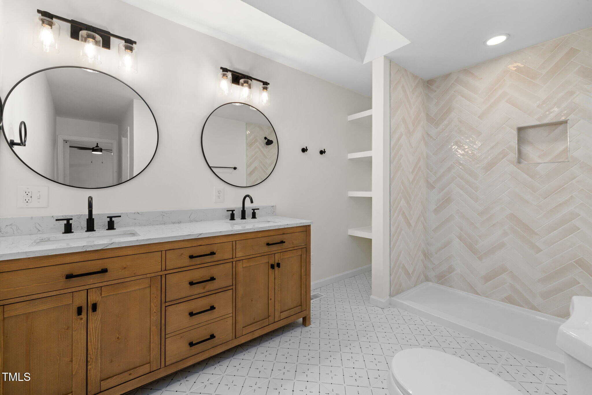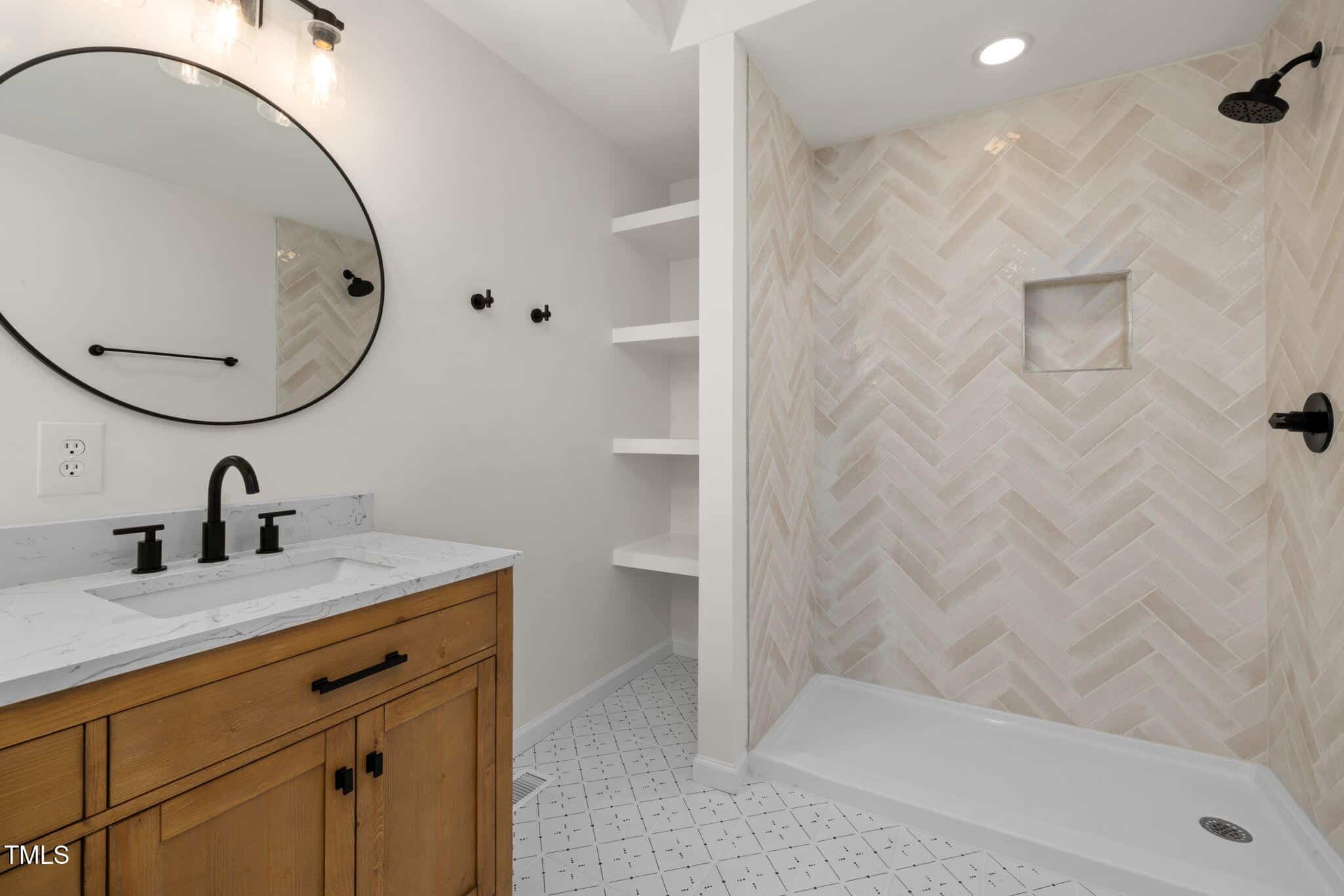 🚿 Herringbone Tile Walk-In Shower
