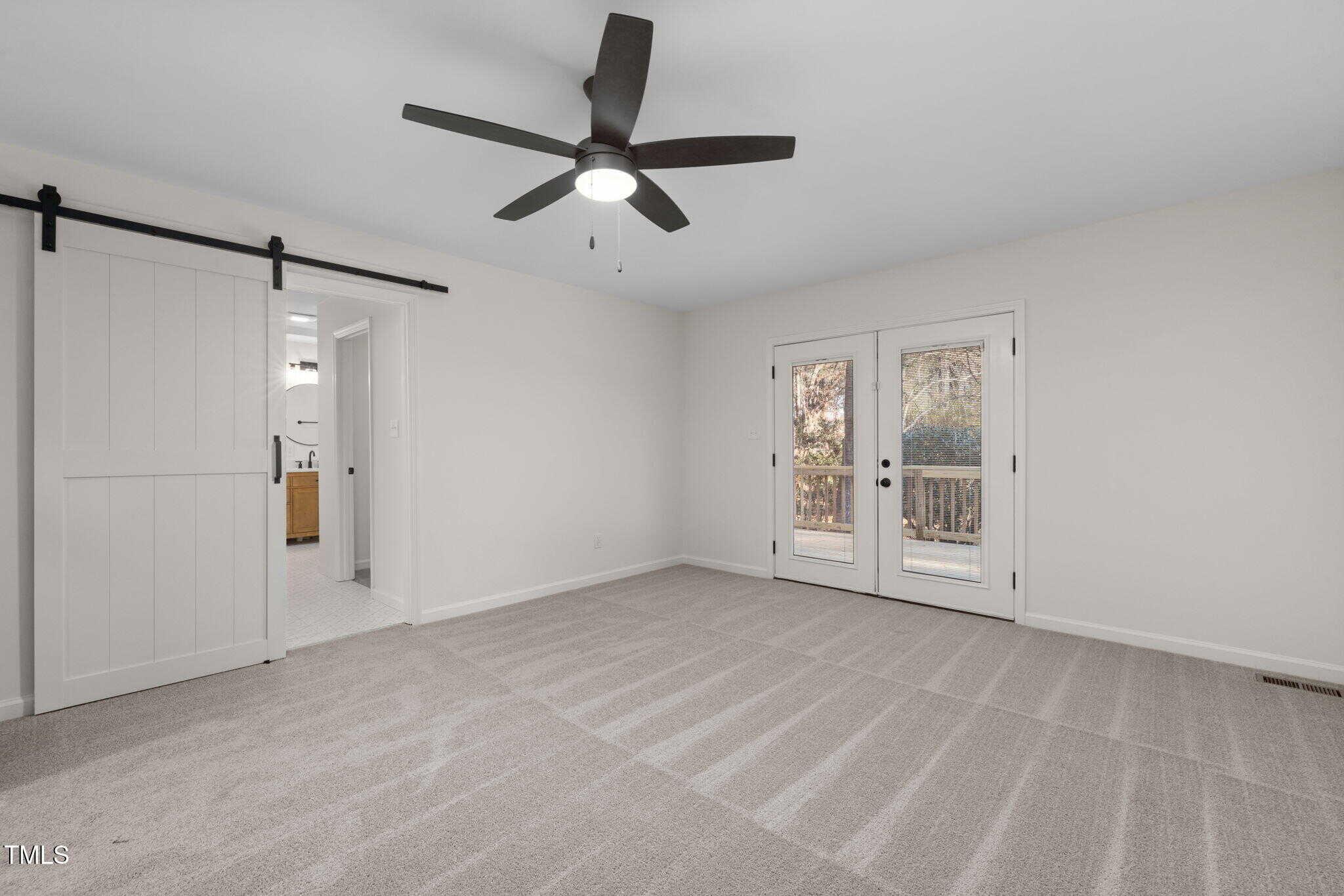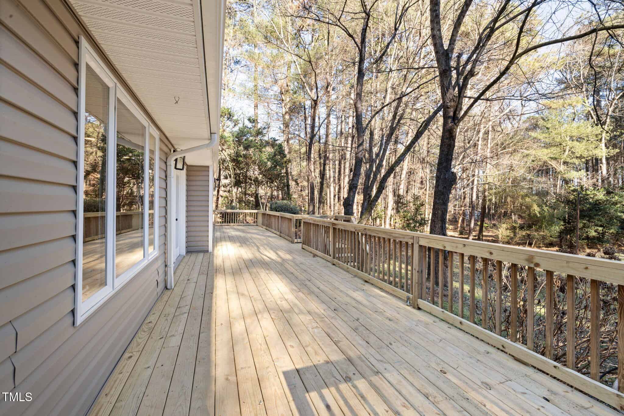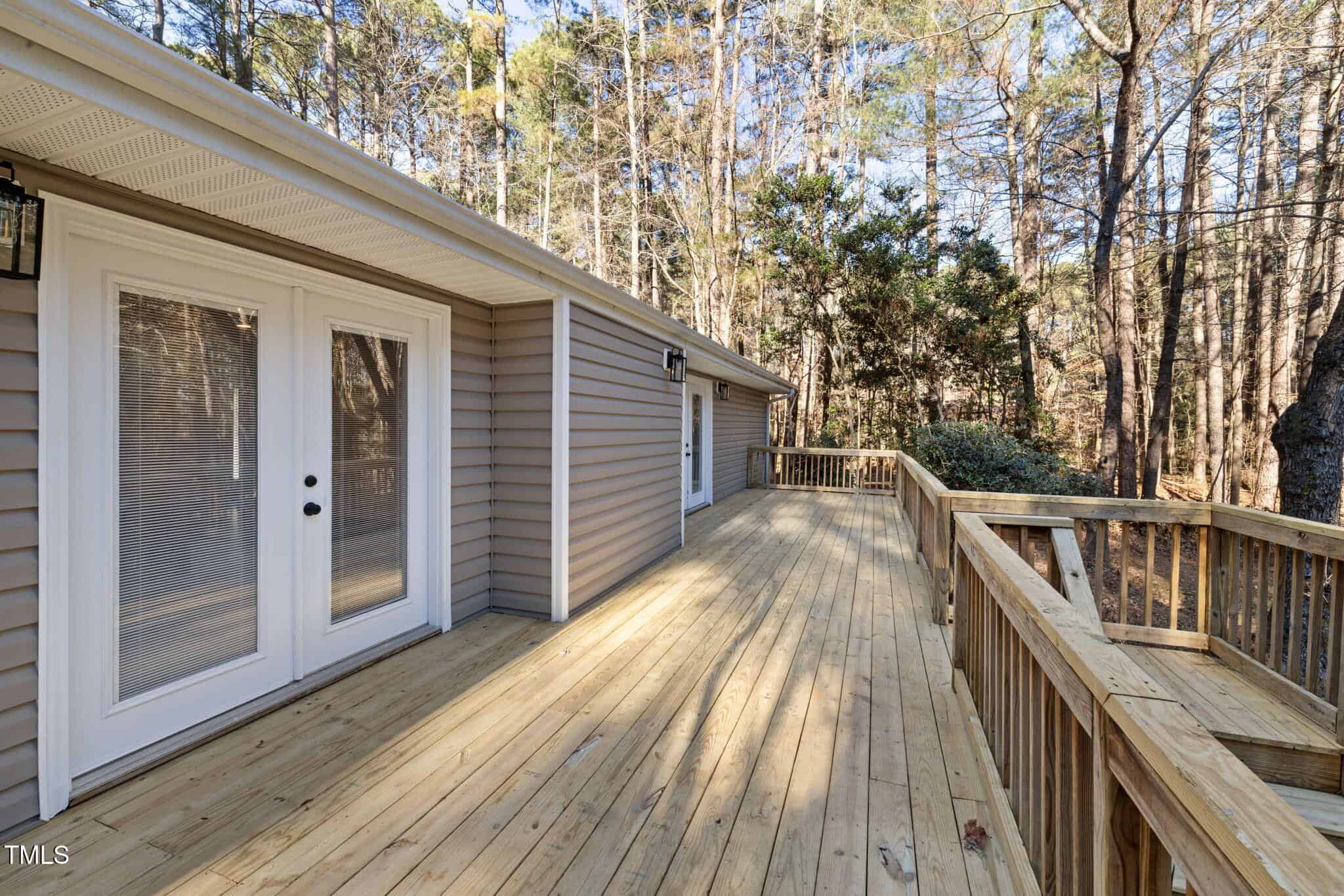 The spa-like primary bathroom boasts a beautiful barn door, stunning herringbone tile in the walk-in shower, a 72-inch vanity, and a skylight that floods the space with natural light while maintaining privacy. The two additional bedrooms offer generous closet space, and the third bedroom is large enough for a cozy sitting area, couch, or table. Step outside and you’ll find an impressive 460+ square-foot deck that stretches nearly the entire length of the home—ideal for enjoying the outdoors.