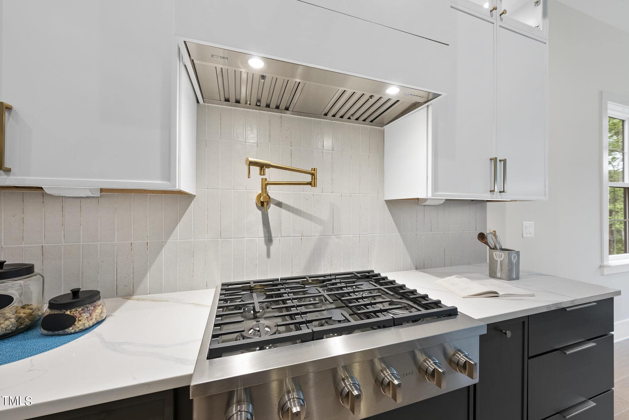 Gourmet Kitchen offers a Large Island w/Quartz Top & Barstool Seating, Accent Pendant Lighting, Designer Backsplash, Custom Painted Cabinets, Stainless Steel Appliance Package Incl Built in Gas Range Top, Double Wall Oven, & Huge Walk in Pantry!