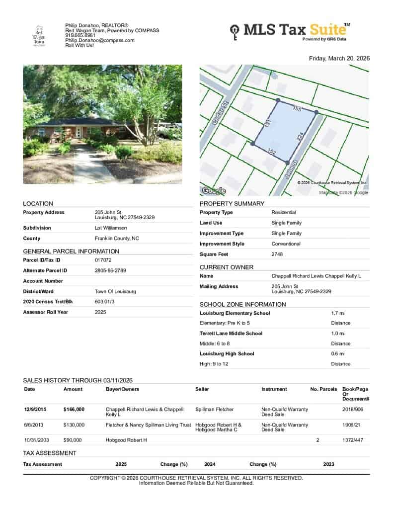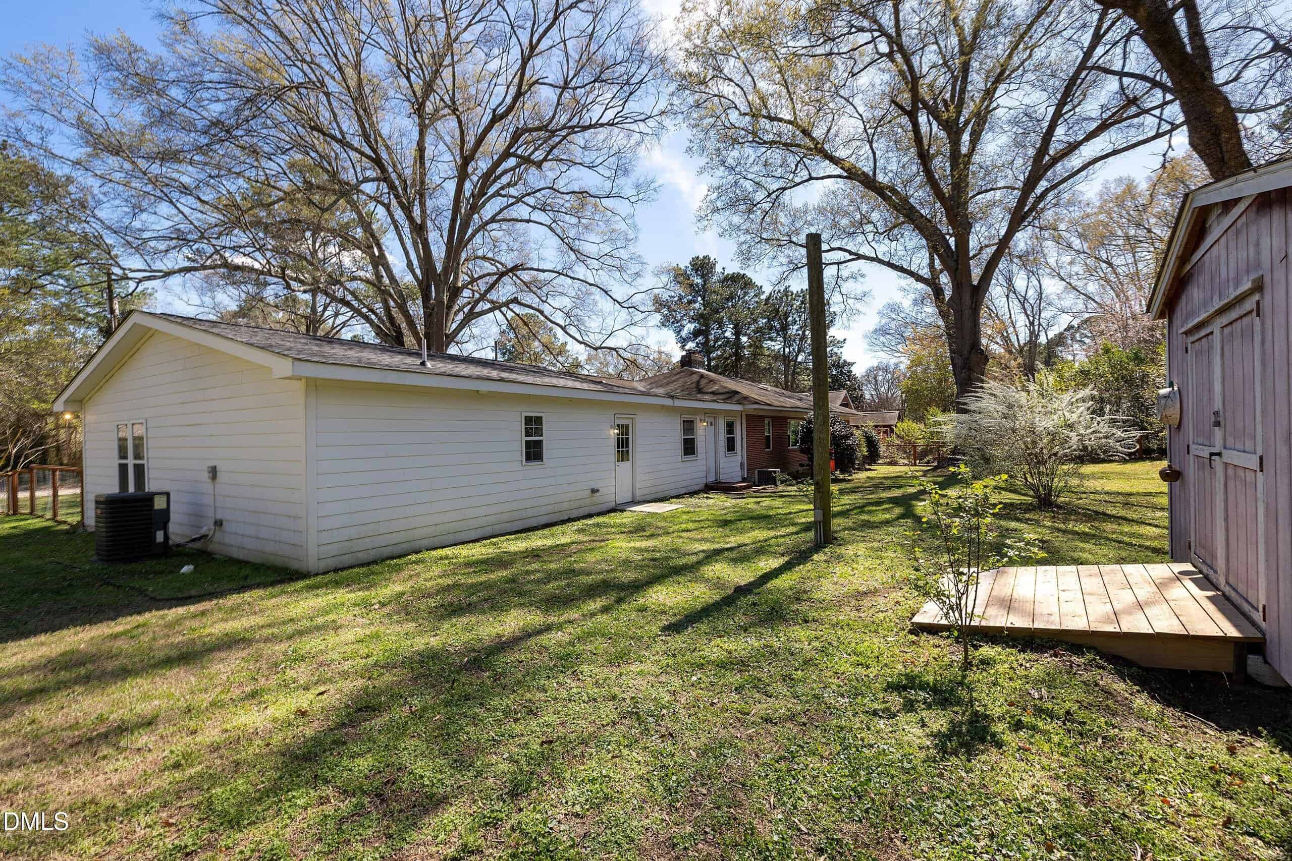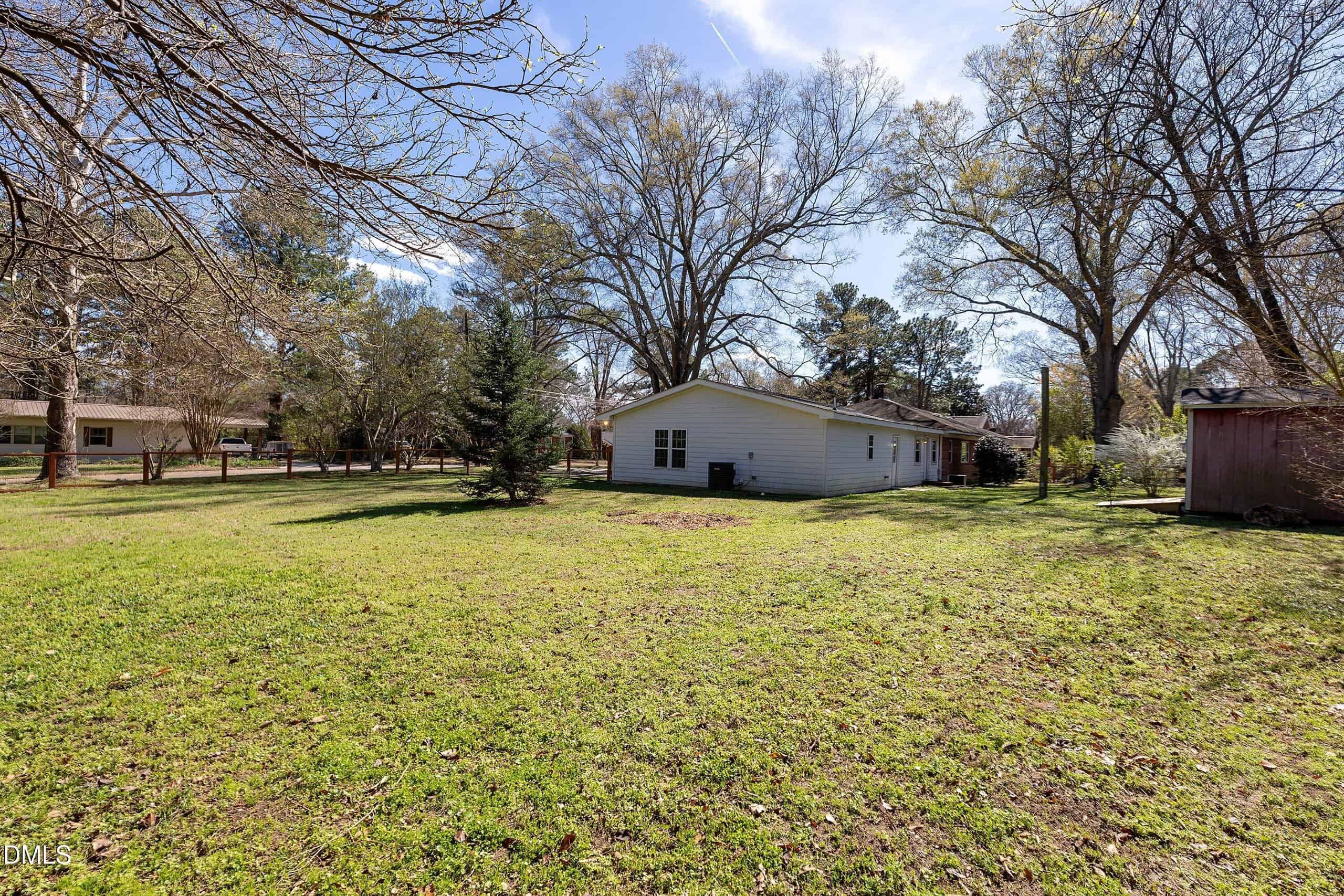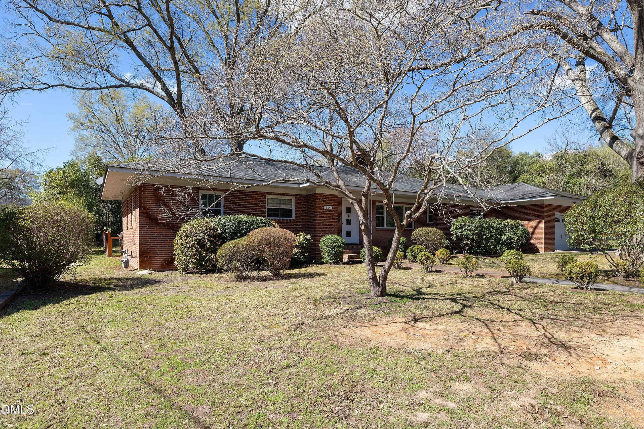 Welcome to 205 John Street — where small-town living marries suburban homesteading to create the life you’ve just dreamed about — until now. Let’s start with the house: a 4-bedroom ranch plan (all first-floor living) with 3 FULL bathrooms in a linear floorplan that allows for flexible uses for the different seasons of your life. Starting from the left wing of the house, you find 3 bedrooms with a shared full bath. The middle section offers the charm of a 1950s brick home with an oversized living room, paneled study, updated kitchen w/walk-in pantry, another full bathroom and delightful architectural details like large picture windows, doors with round glass panes and exposed brick walls. The right wing of the house is the gift of modern luxury: a spacious owners’ suite built in 2022 that can accommodate an office, bedroom and sitting room w/ sleek contemporary bathroom w/ glass shower w/bench and navy blue vanity. Outside, you’ll find 3/4 of a acre of usable, flat fenced yard. There’s plenty of space for dogs to run or for children to play soccer or for gardeners to grow tomatoes, asparagus and other summertime bounties. Fig trees, blueberry bushes, camellia and rhododendron make the land fruitful, beautiful and fragrant. The city of Louisburg allows chickens too — for those who want farm fresh eggs every morning even within city limits. Speaking of city, if you’ve never visited Louisburg, leave your car on John Street and walk to the quaint downtown to enjoy restaurants, shopping, bars and Louisburg College. If you’re itching for a night in the Big City, hop on 401 and head to downtown Raleigh. Within an hour, you’re in the midst of the Raleigh nightlife and weekend festivals.