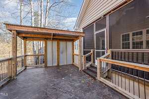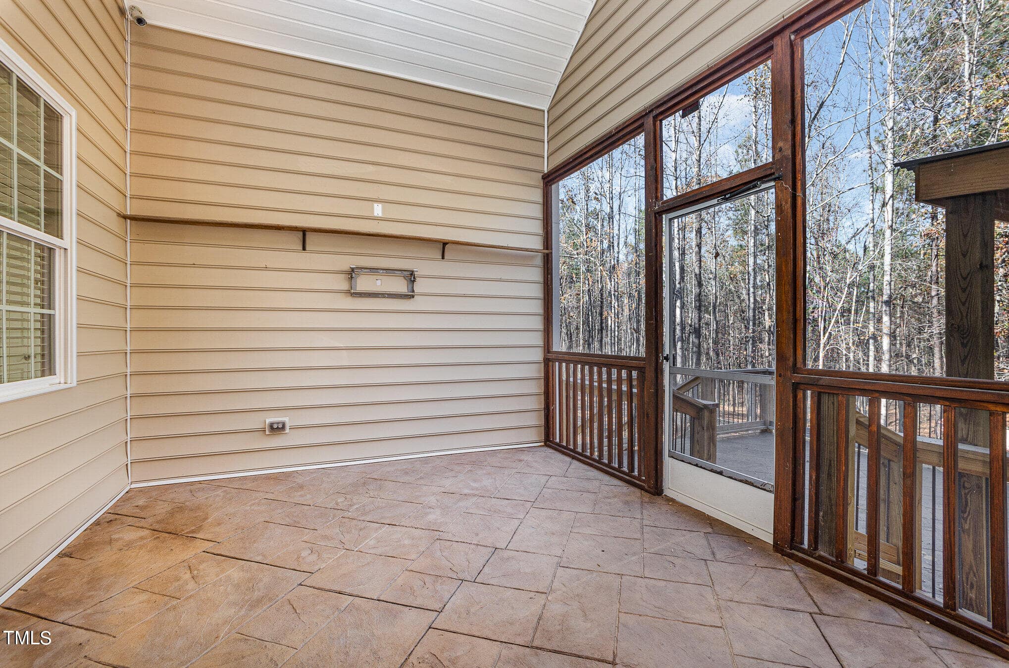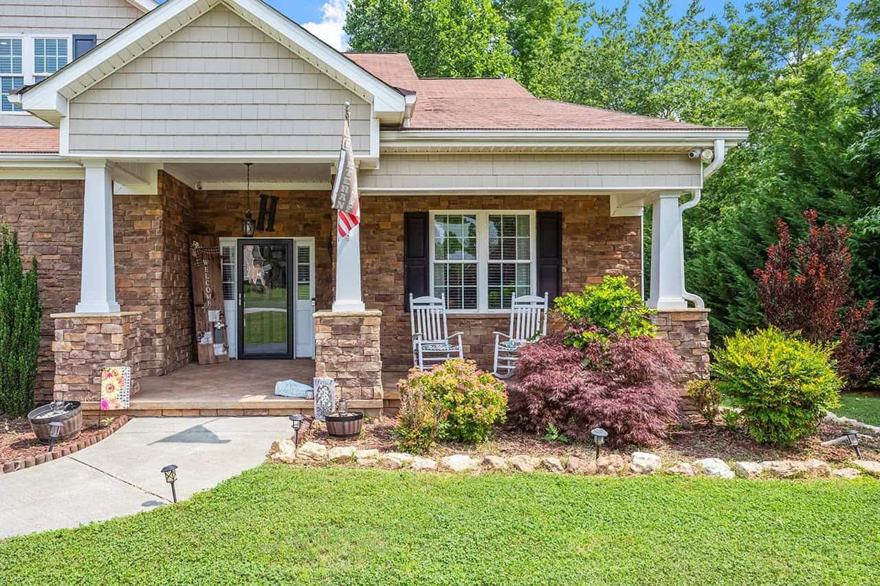 3 season outdoor living on stamped concrete covered front porch and breezy screen porch.