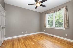 Quiet cut-de-sac nearly one acre fenced lot with private wooded views.