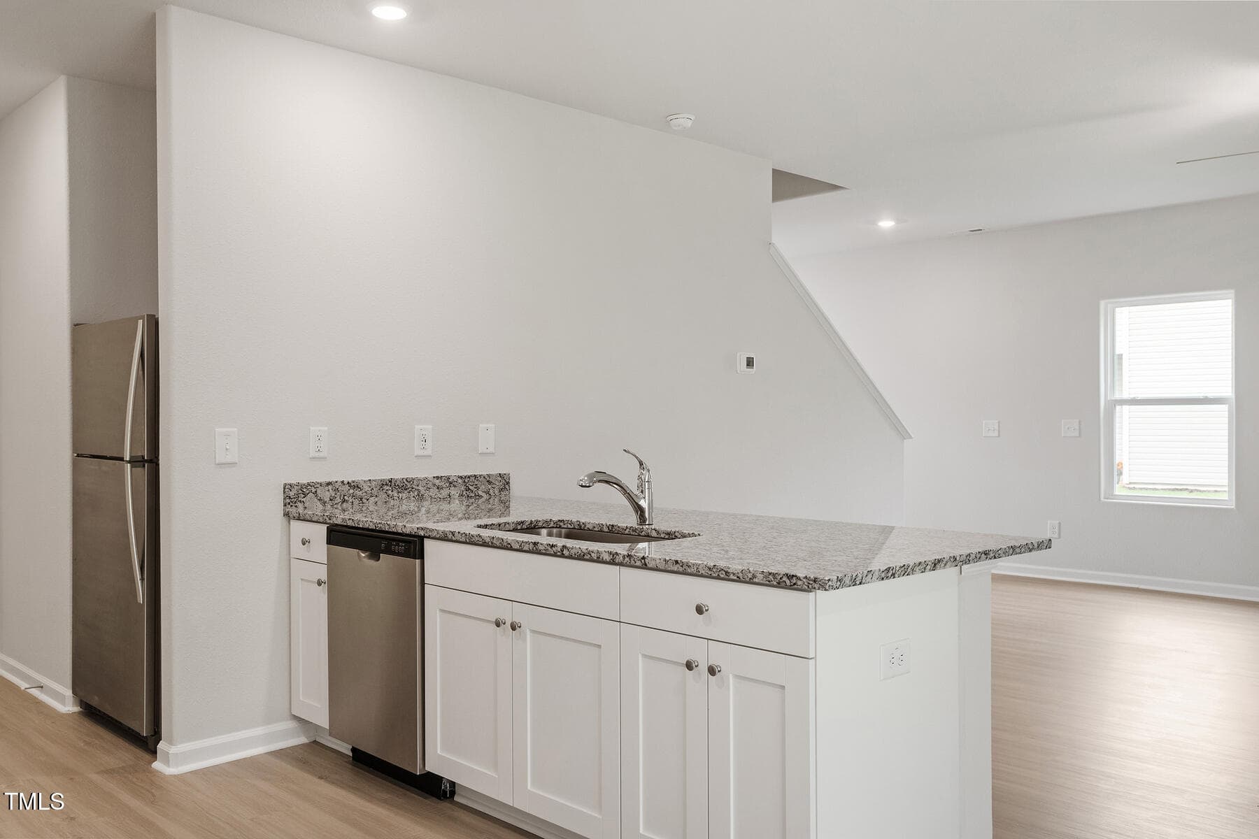 The first floor of this 3-bedroom home showcases a large living room with a cozy dining area and a gorgeous kitchen. Each of the generously sized bedrooms are located on the second level, along with a conveniently placed laundry room. Luxury vinyl-plank flooring, energy-efficient appliances, wood cabinetry with crown molding, designer lighting and a two-tone paint scheme are just a few of the many exciting features you will find in this home – all at no extra cost to you!