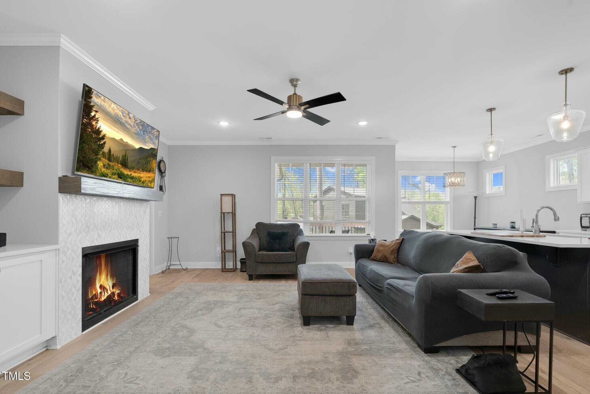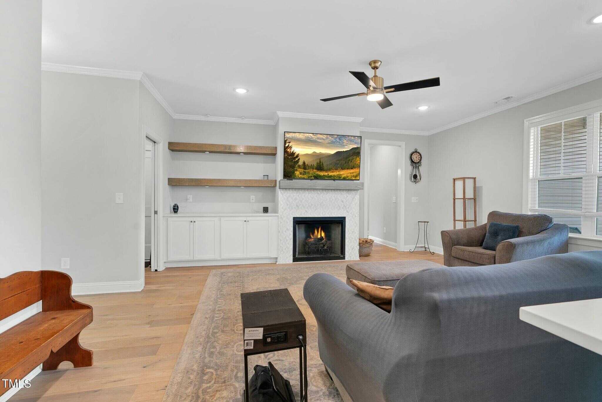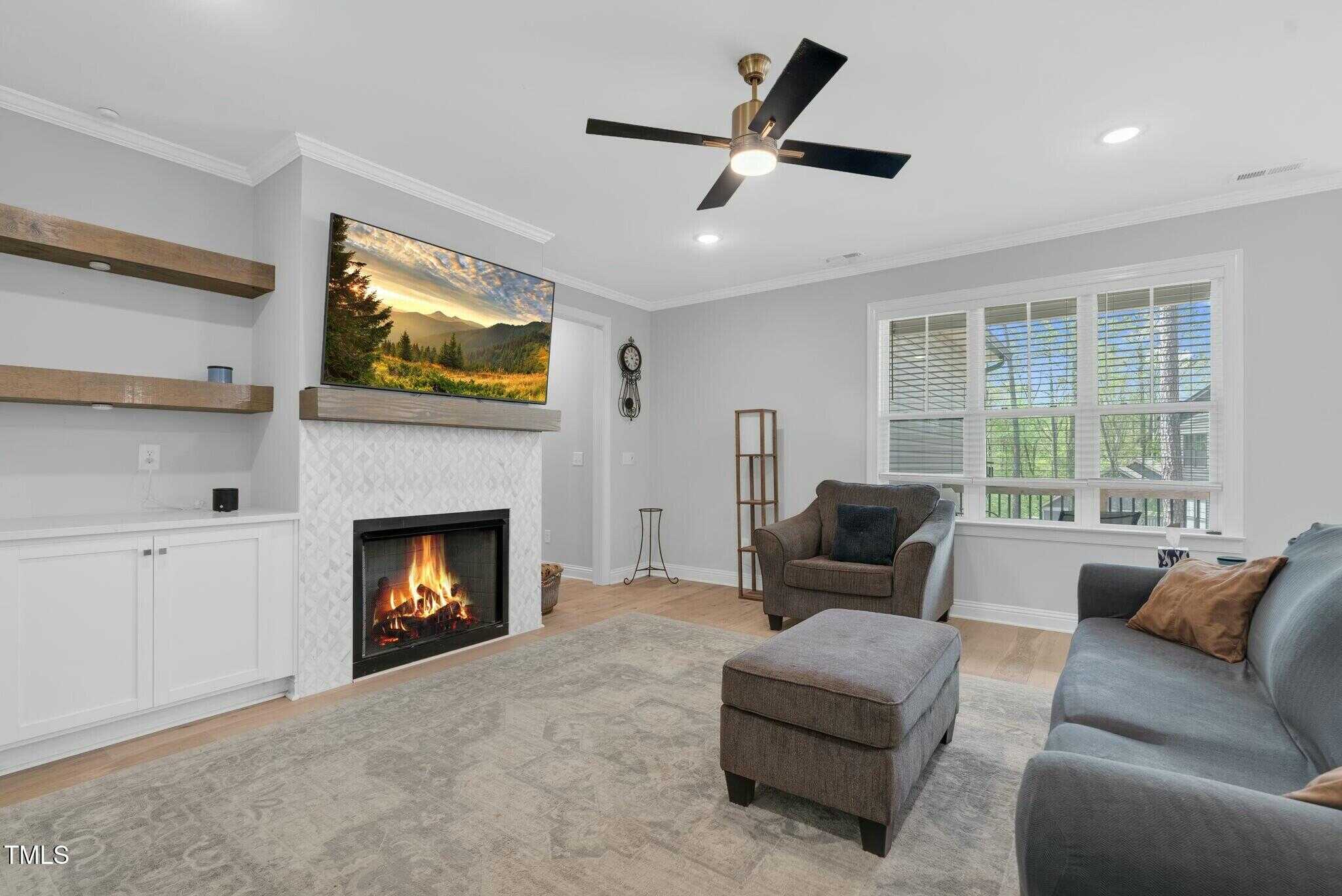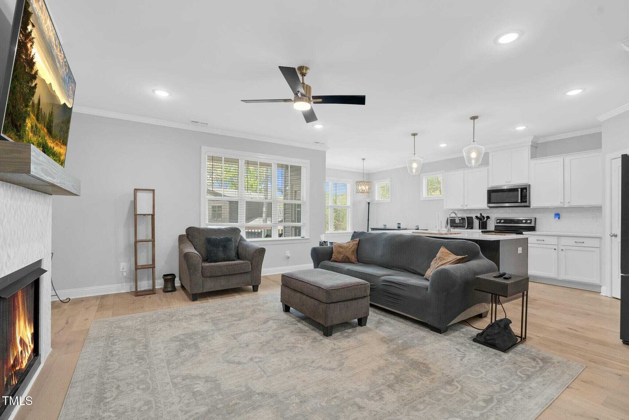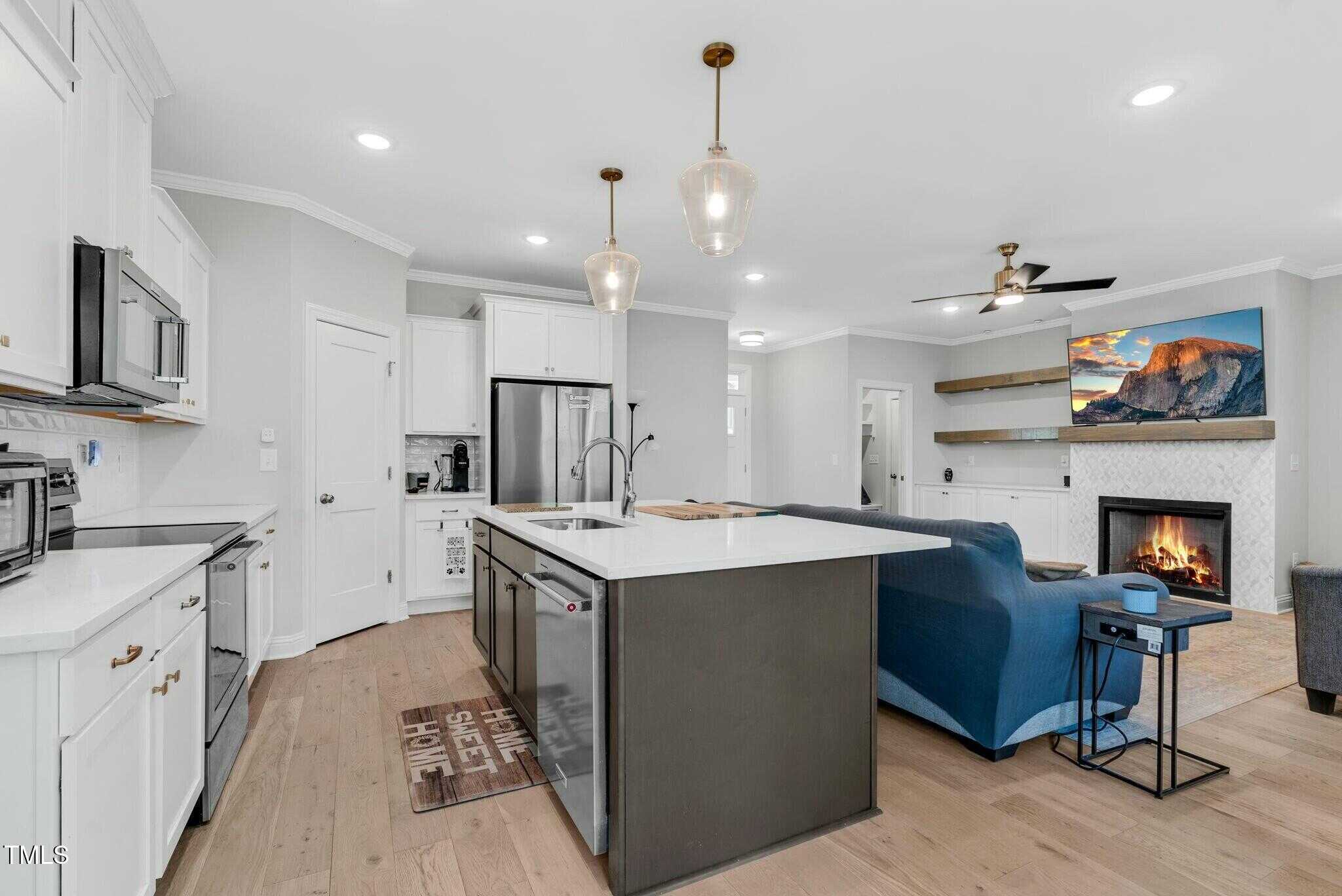 Open living at its finest. Bright white kitchen with granite countertops, large island, and stainless steel appliances. Built in bookcases surround the fireplace. Owners Suite has a beautiful large bathroom with large tiled walk-in shower, water closet, dual vanity, and walk in closet.