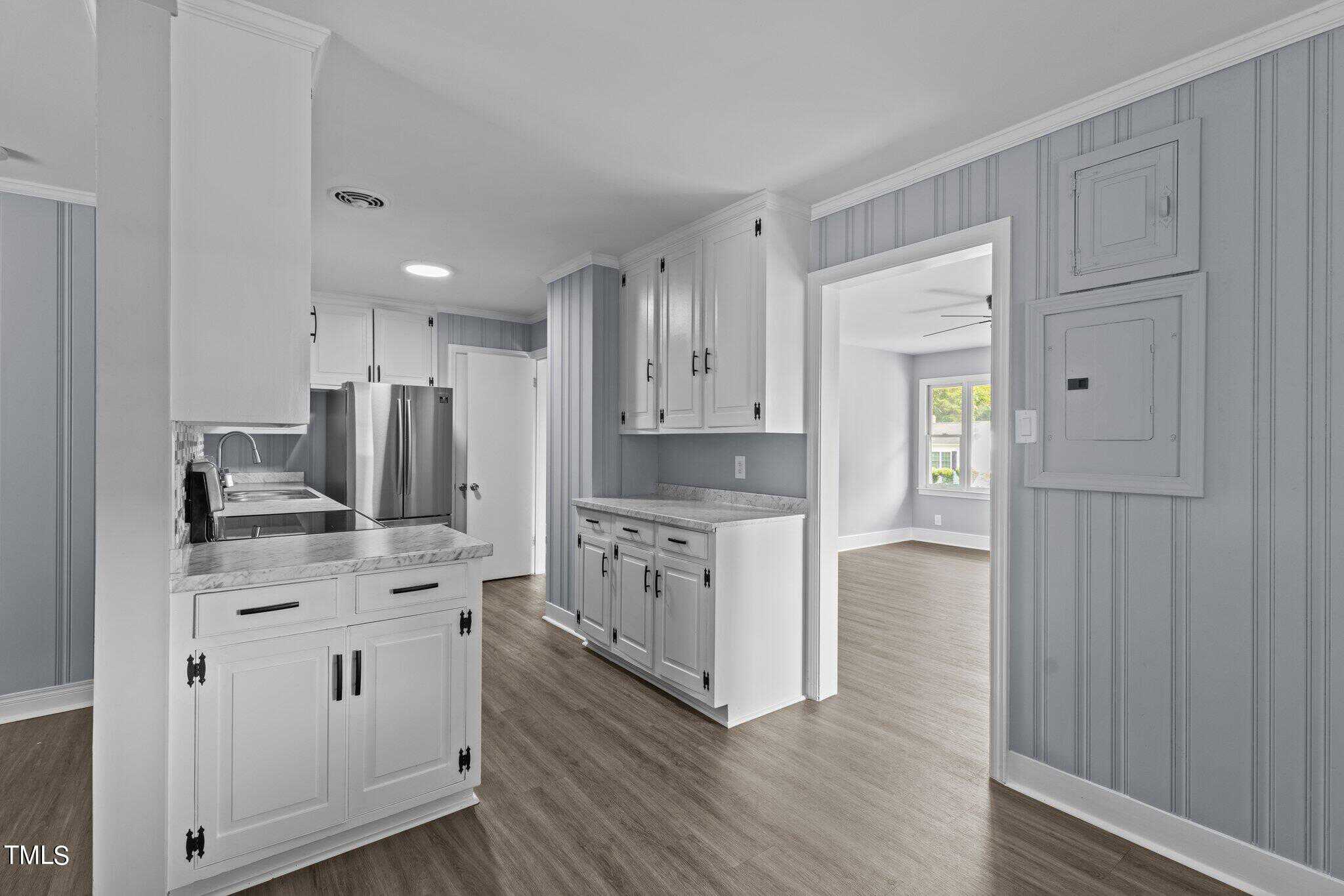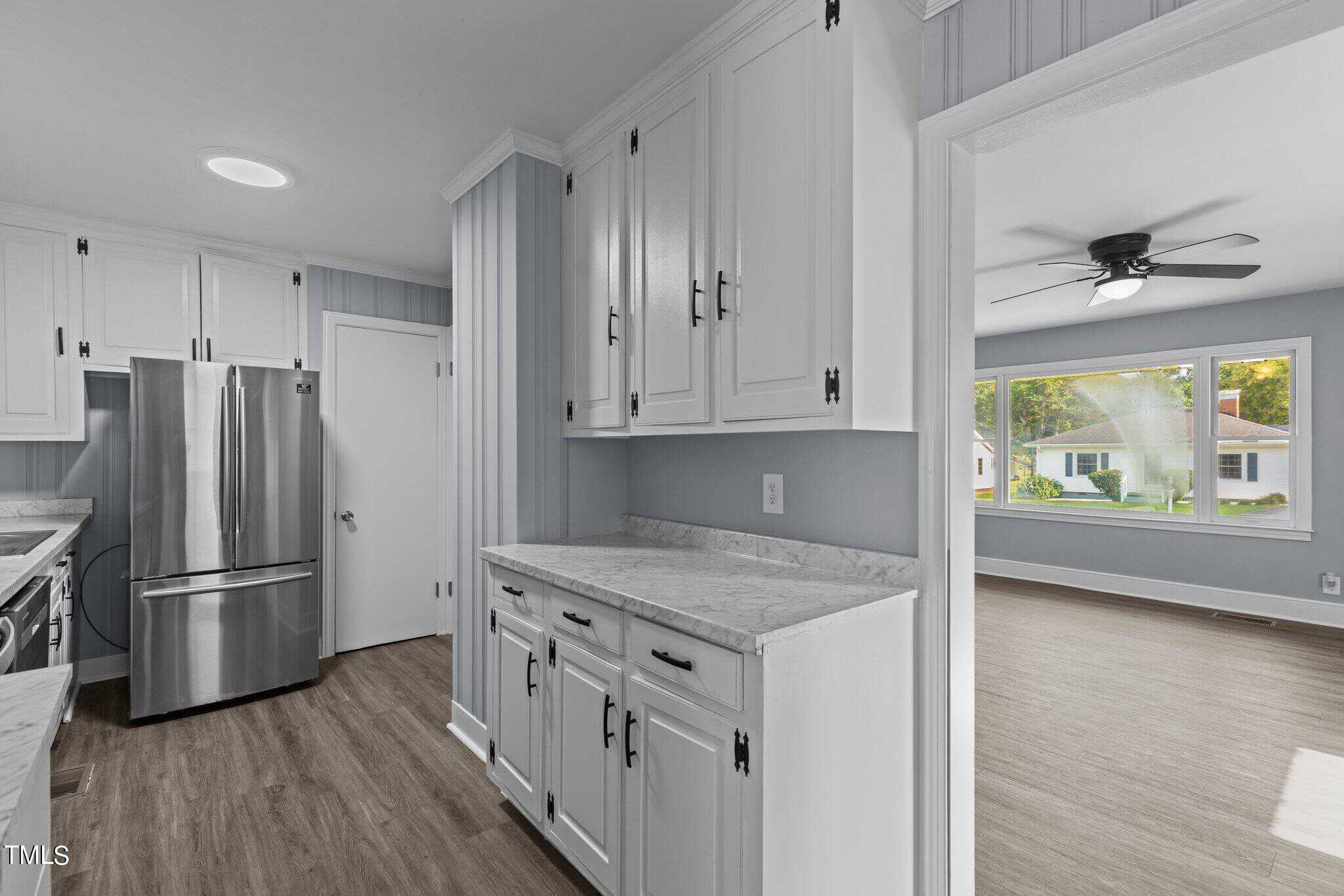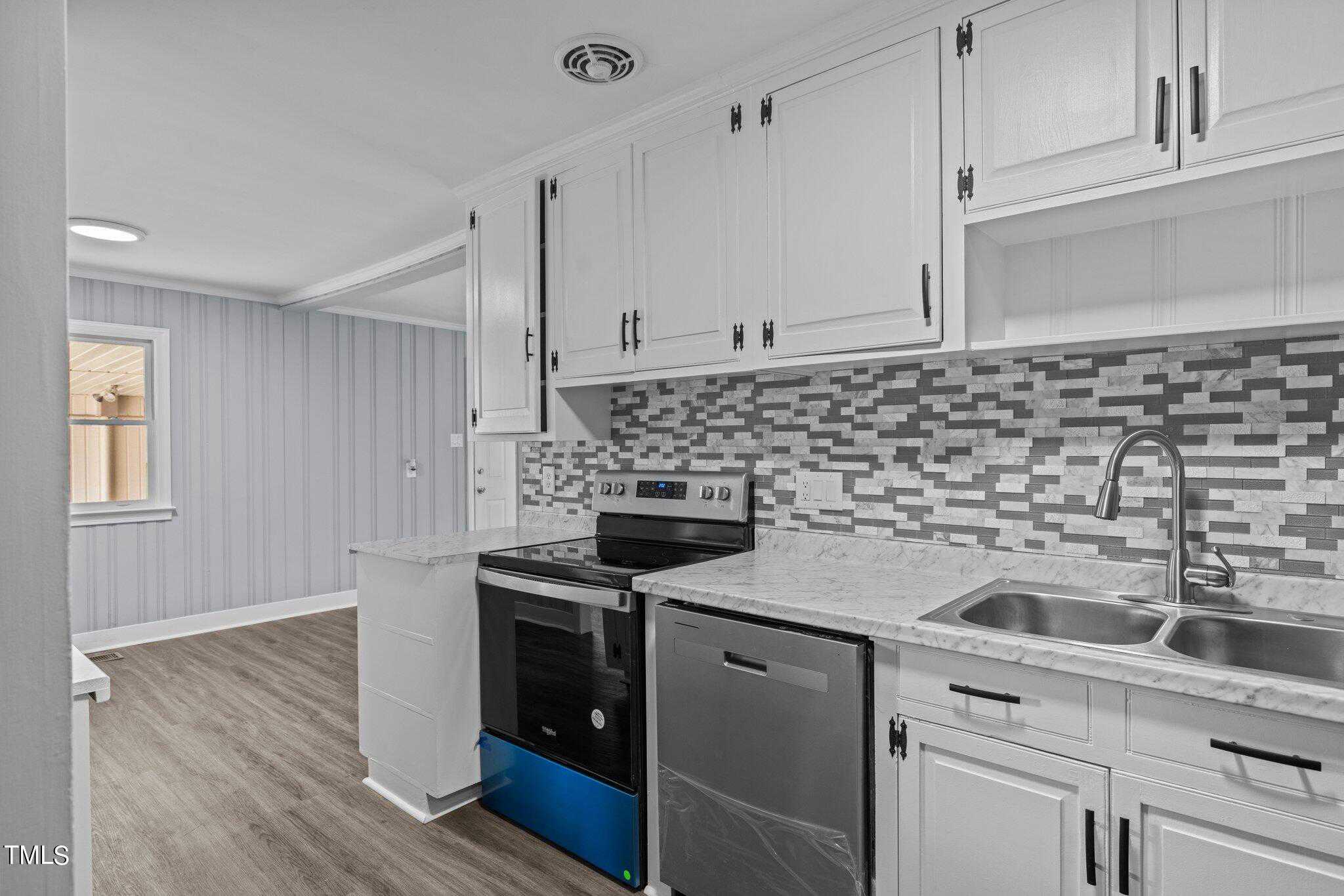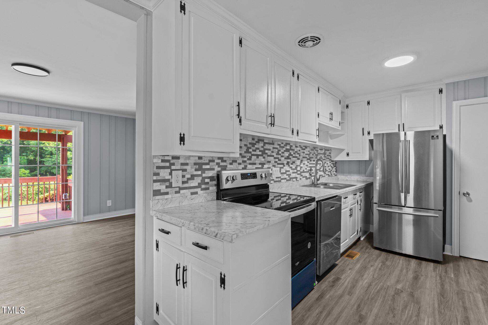 With 4 bedrooms and 2 gorgeous new baths, you can relax and unwind with ease. The lovely, upgraded kitchen dining combo has white cabinetry that offers a wealth of storage space, stainless steel appliances, corresponding counter tops and an oversized refrigerator.