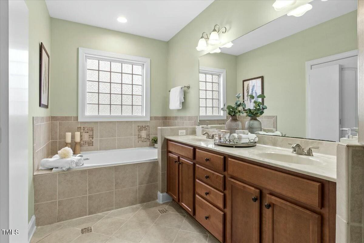 Located in the peaceful and sought-after Olde Brassfield subdivision, this charming 3-bedroom, 2.5-bathroom home perfectly blends comfort, style, and natural beauty. The expansive floor plan welcomes you with a foyer featuring built-in displays, leading to a cozy living area with a stunning stone fireplace. The heart of the home is the thoughtfully designed kitchen, complete with an eat-in dining area for casual meals, plus a formal dining room for more refined gatherings. The primary suite boasts a spacious bedroom with cathedral ceilings and a walk-in closet, while the en-suite bathroom offers a separate walk-in shower and a luxurious jetted soaker tub.
