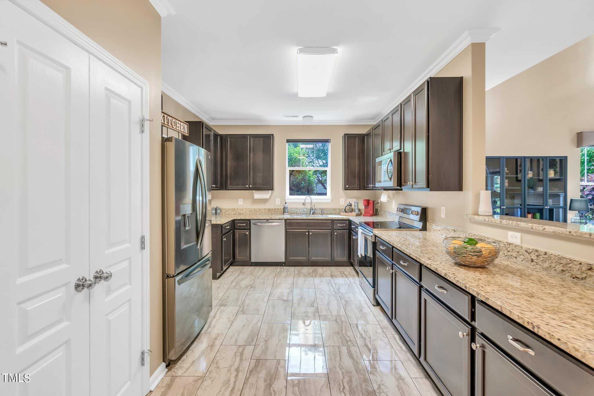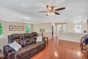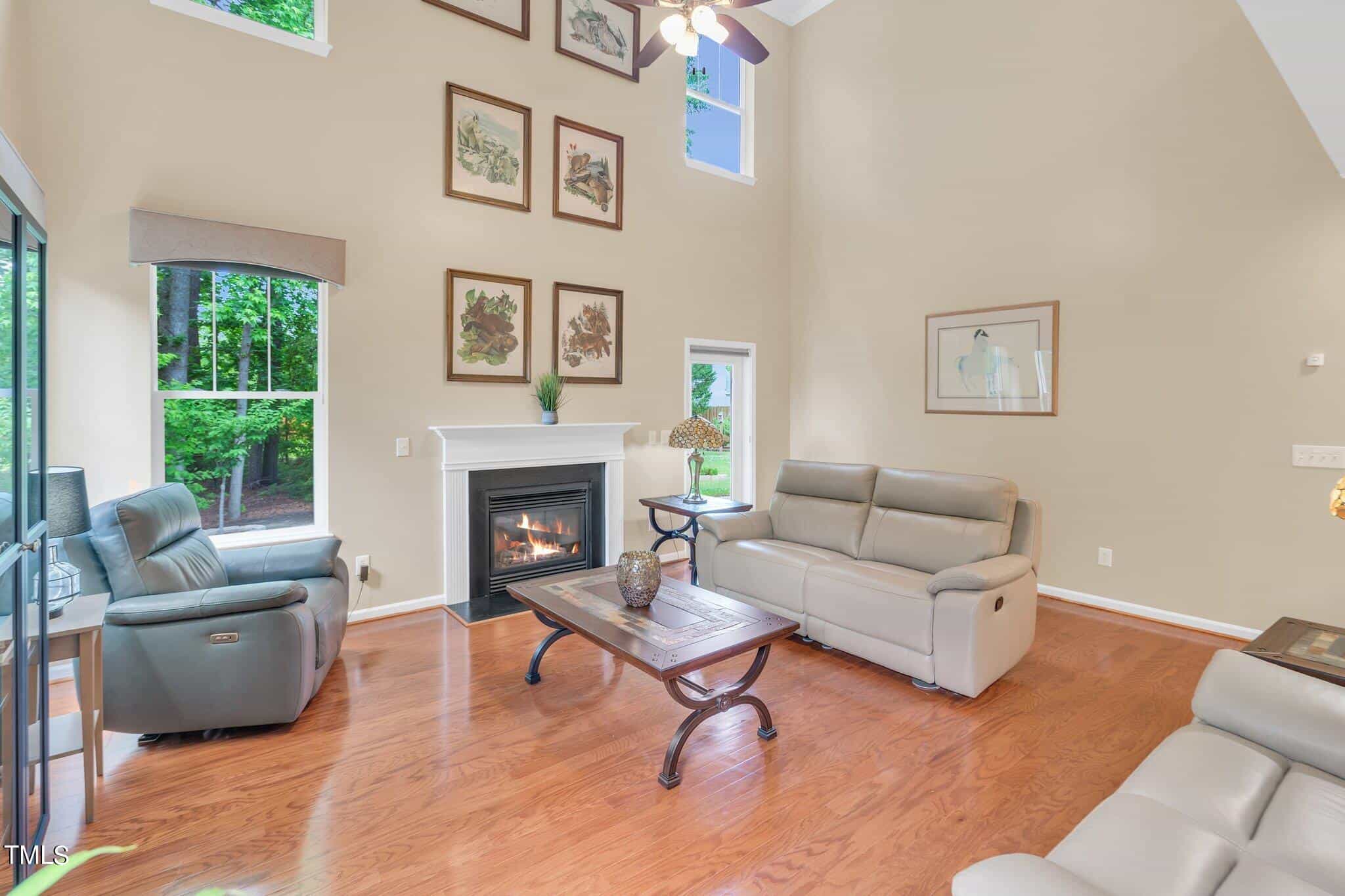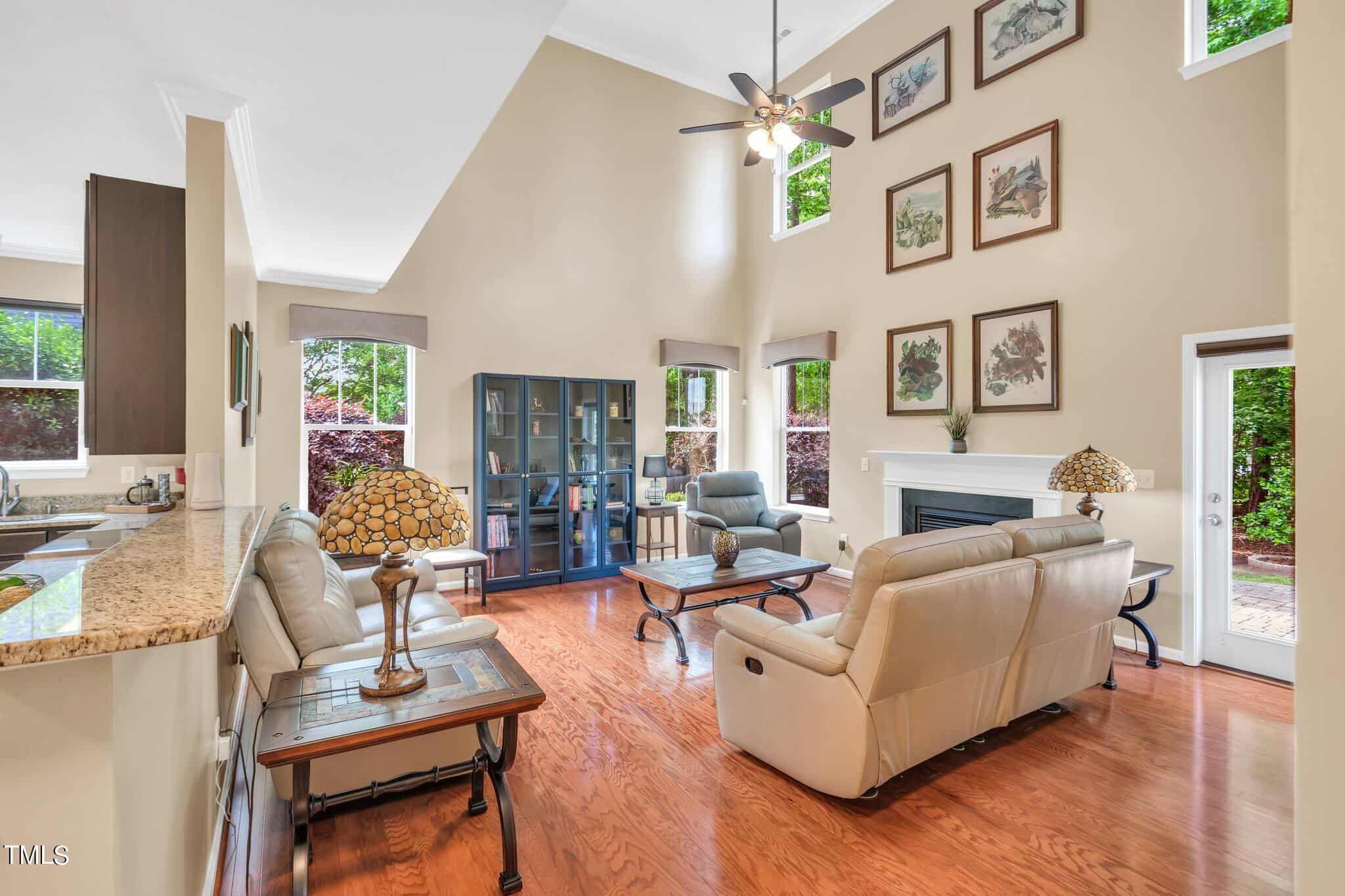 Large family room with fireplace and lots of windows. Automatic electronic blinds throughout. New oven & Refrigerator in kitchen. All new toilets, new gutter guards, new A/C compressor.