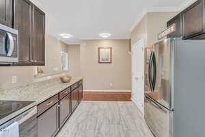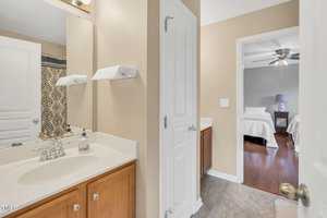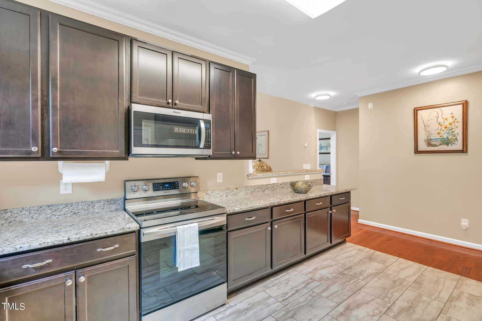 The kitchen boasts of new cabinets, new ceramic floors and granite counter tops. New light fixtures in kitchen & hallway. New ceiling fans & other light fixtures.