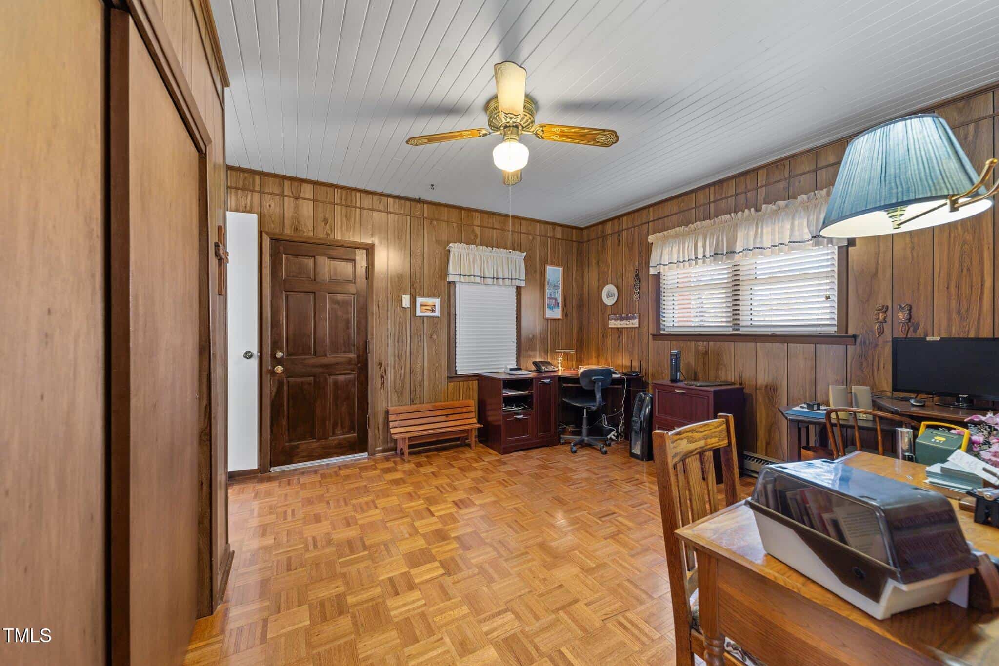 Recent upgrades. New Roof (11/24); Created second BA w/ all new fixtures, flooring, walls and Stackable W/D hookup area (11/24); completely painted light grey inside (10/24). 20×12 Enclosed WORKSHOP w/in attached garage + BASEMENT WORKSHOP w/ inside/outside entrances. Tankless Gas Water Heater, Dual Pane Replacement Windows. Parque, Oak & Pine + Vinyl Floors. Combo DR/LR w/ FP & Gas Logs. Separate Breakfast Rm but can remove wall to enlarge Kitchen. Separate Den w/ Pine Paneling. 3rd BR can be office office dining & garage and walks into New Bathroom. 2nd BA has handicap walk in shower. Baseboard Heat NOT hooked up (except 3rd BR) as has central heat and air w/ Heat Pump. Wonderful 456′ Road Frontage on Hillsboro & W Thorndale. Large Triangle well landscaped level lot w/ paved circular drive. $650 HBW included in $5000 CC.