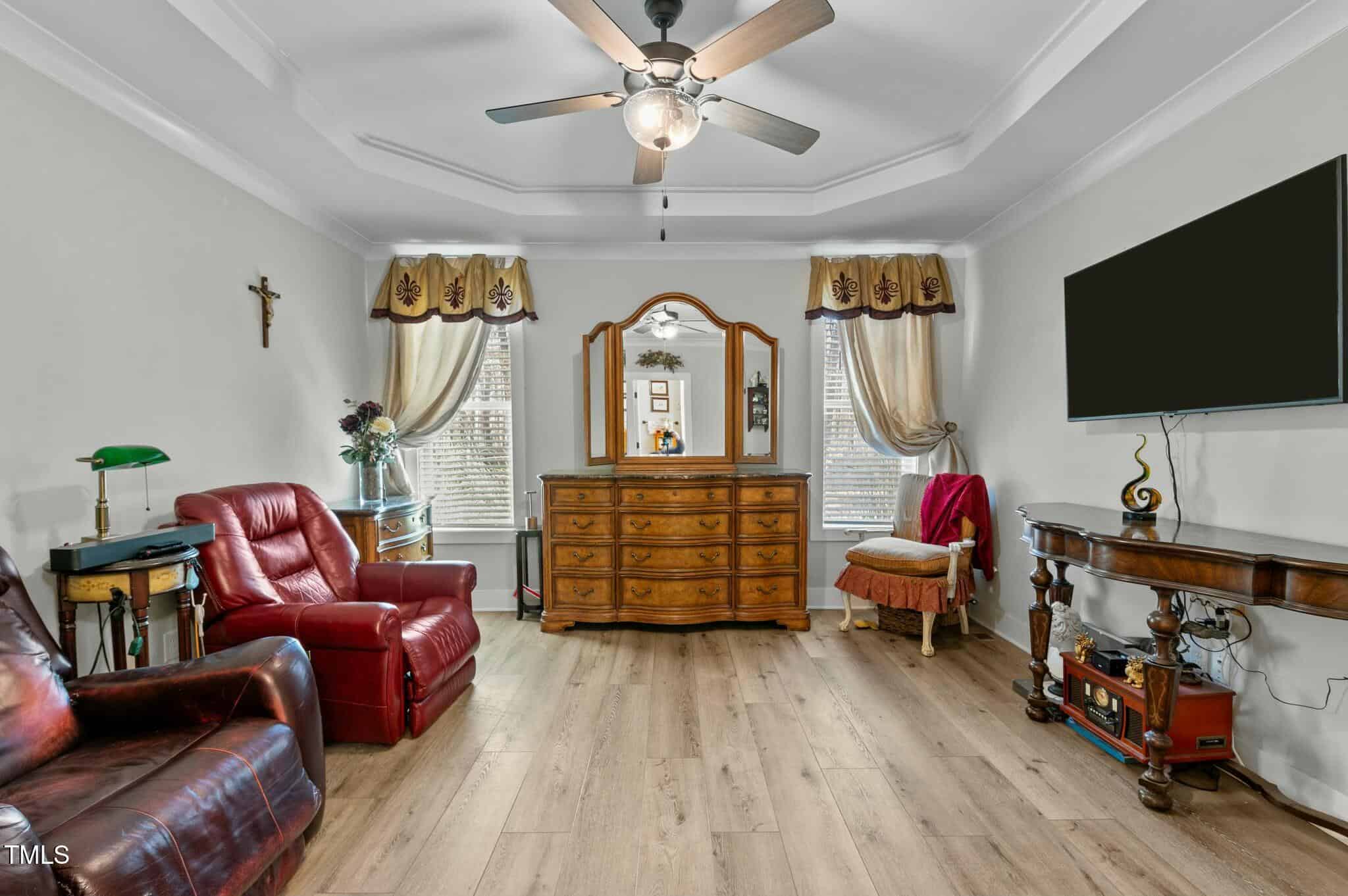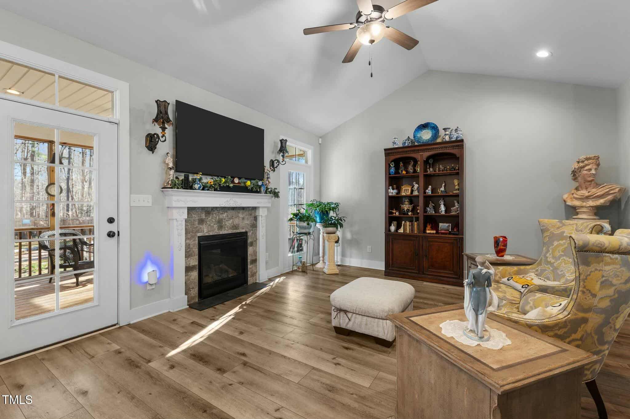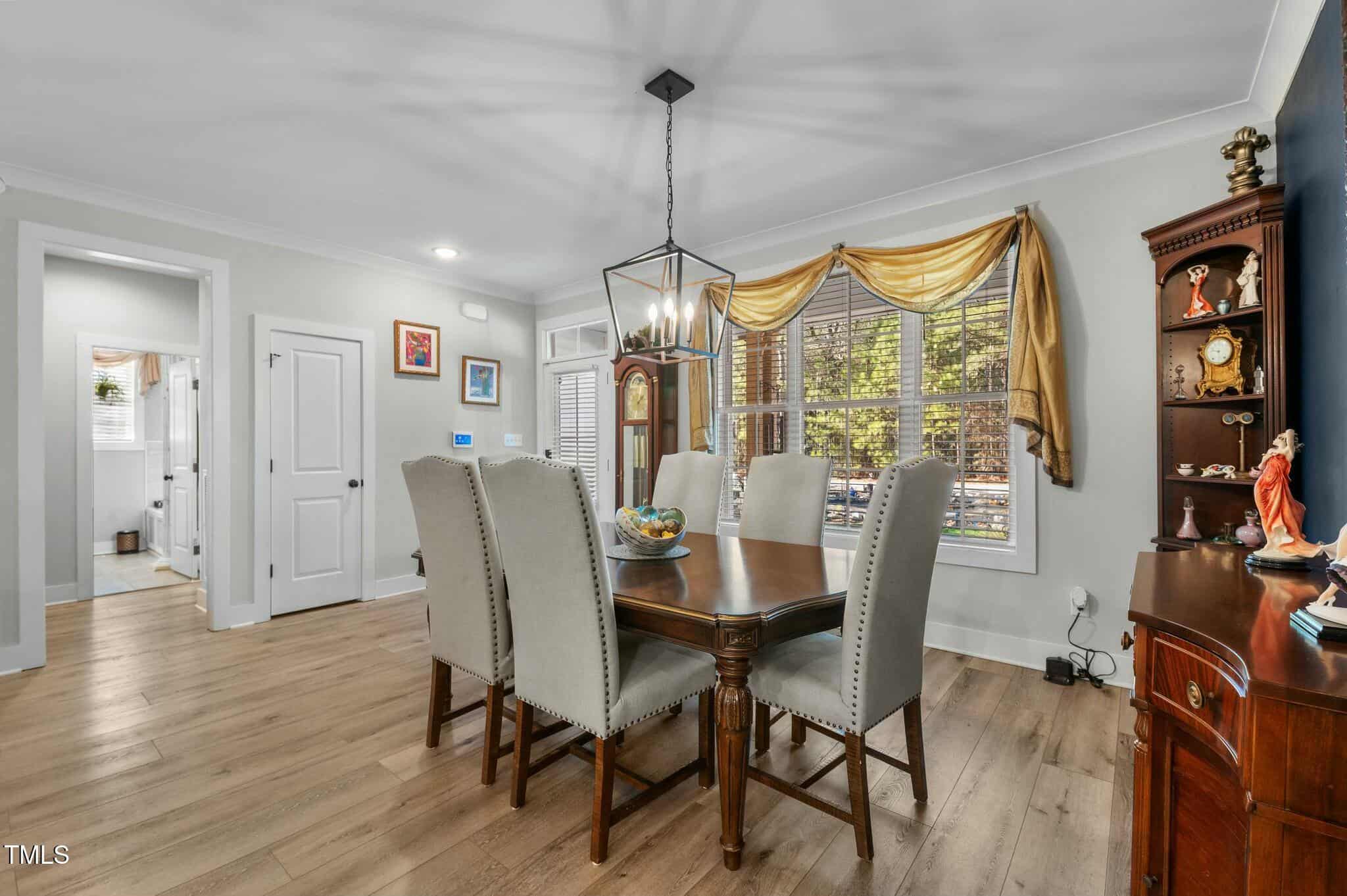Welcome to 225 Rudd Rd in Youngsville, NC – a stunning 3-bedroom, 3-bathroom custom transitional 1.5-story home that offers the perfect combination of modern elegance and peaceful country living. With 2,033 square feet of thoughtfully designed space, this home features upgraded LVP flooring throughout the main floor, including the luxurious primary suite. The custom details are abundant, including a drop zone with a bench, cubbies, and hooks, as well as built-in wood cabinetry and shelving in the family room that add both functionality and charm.