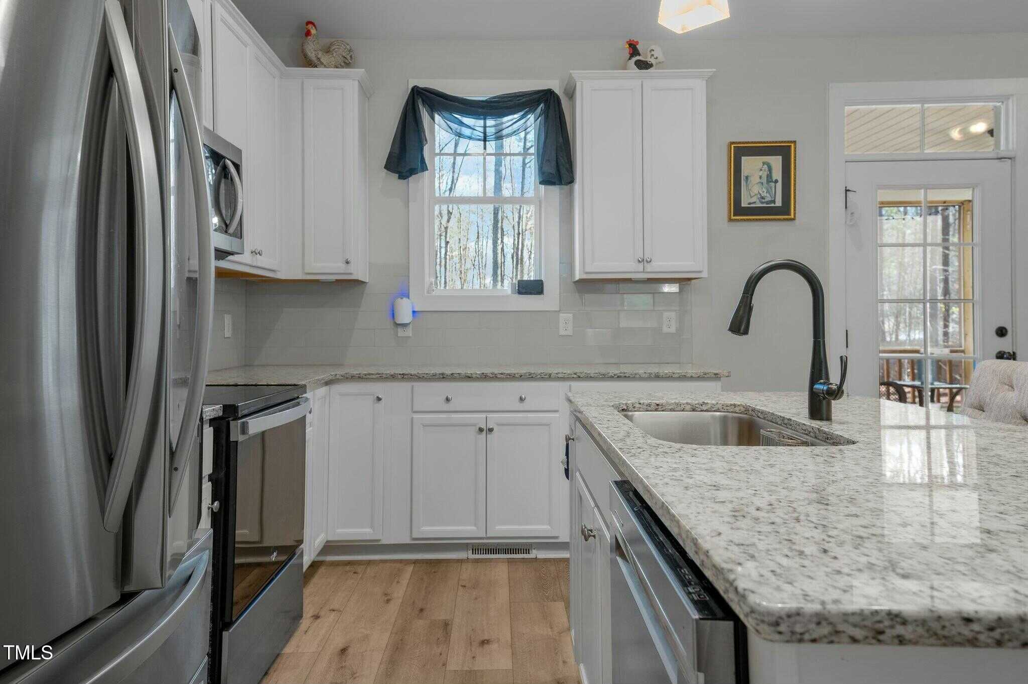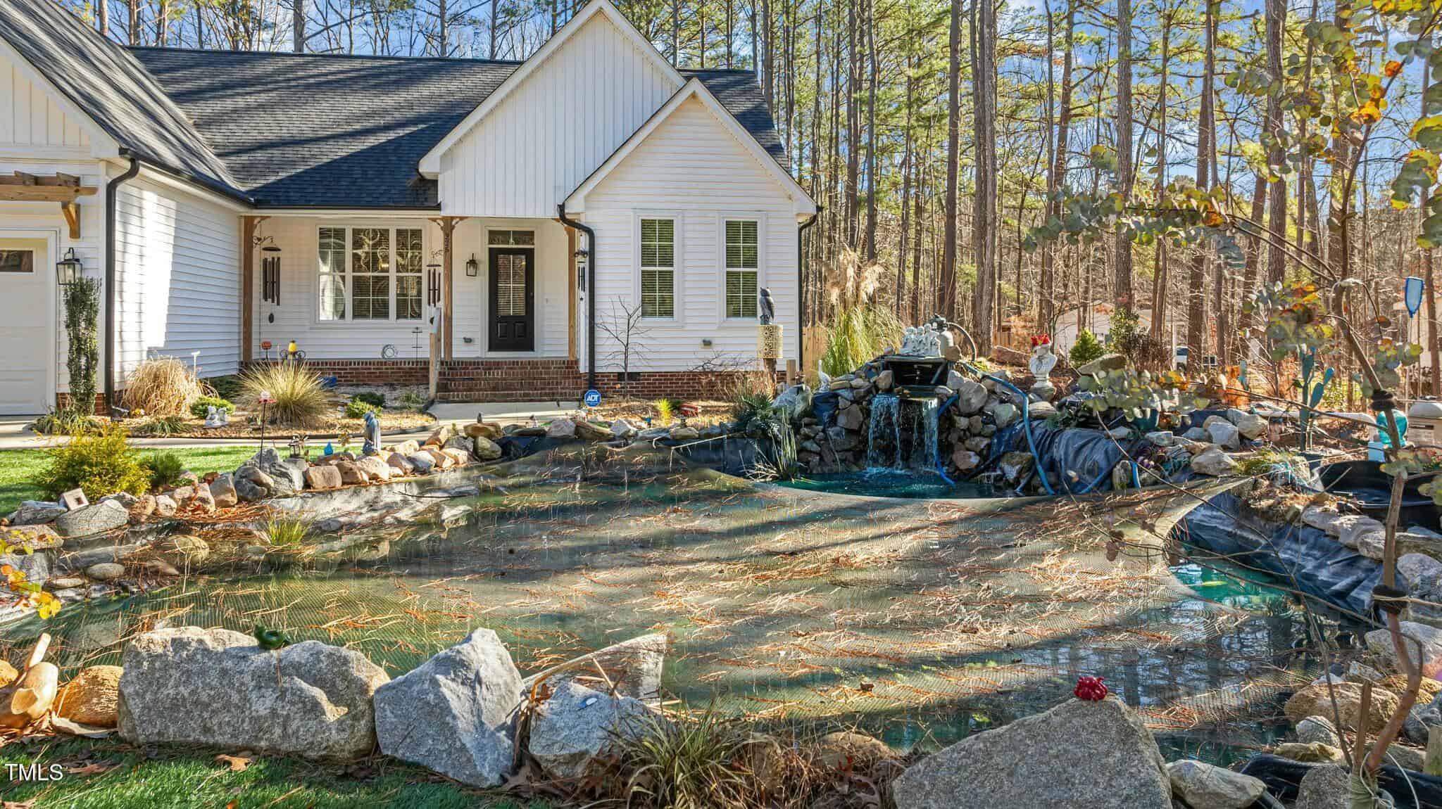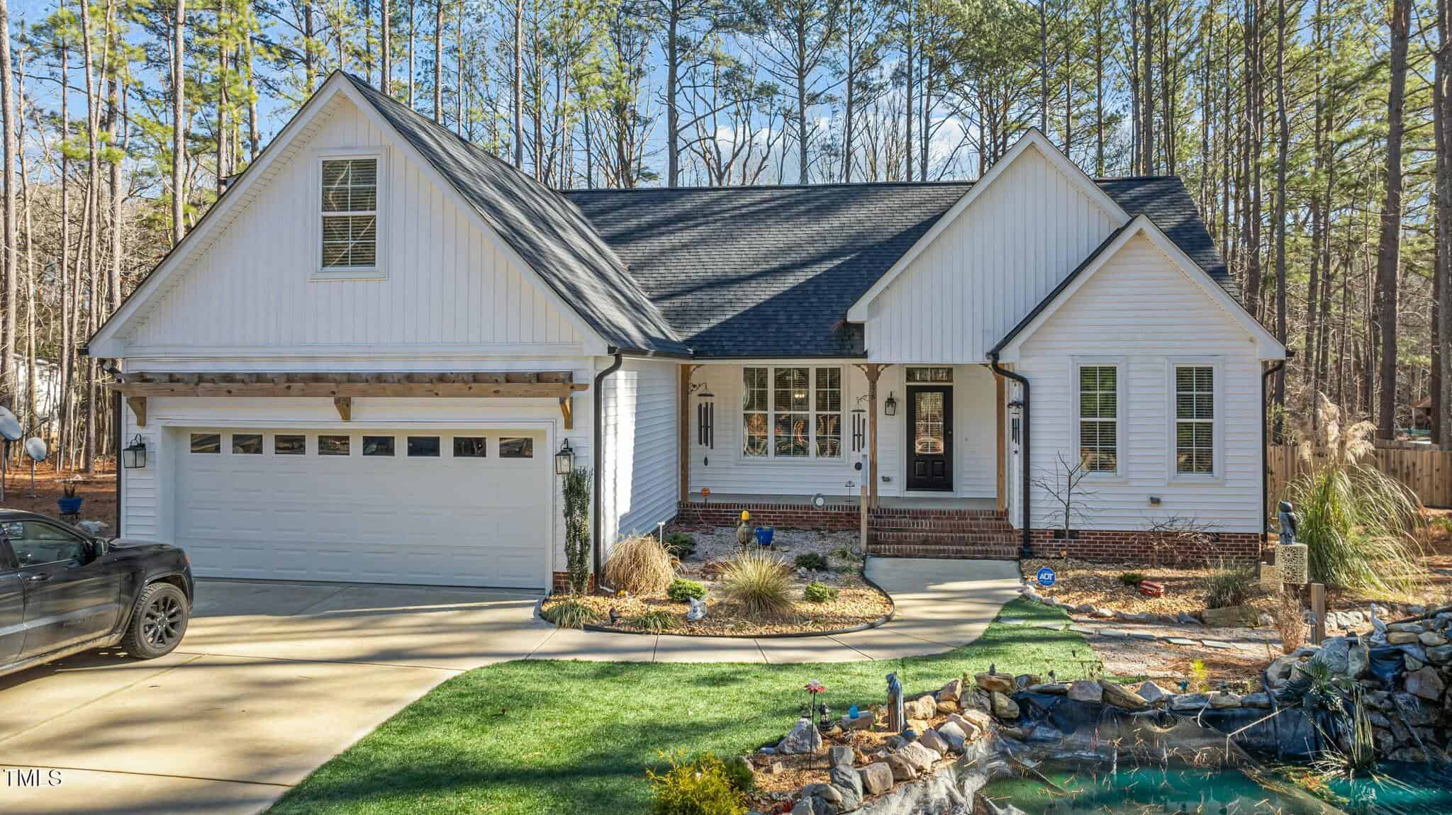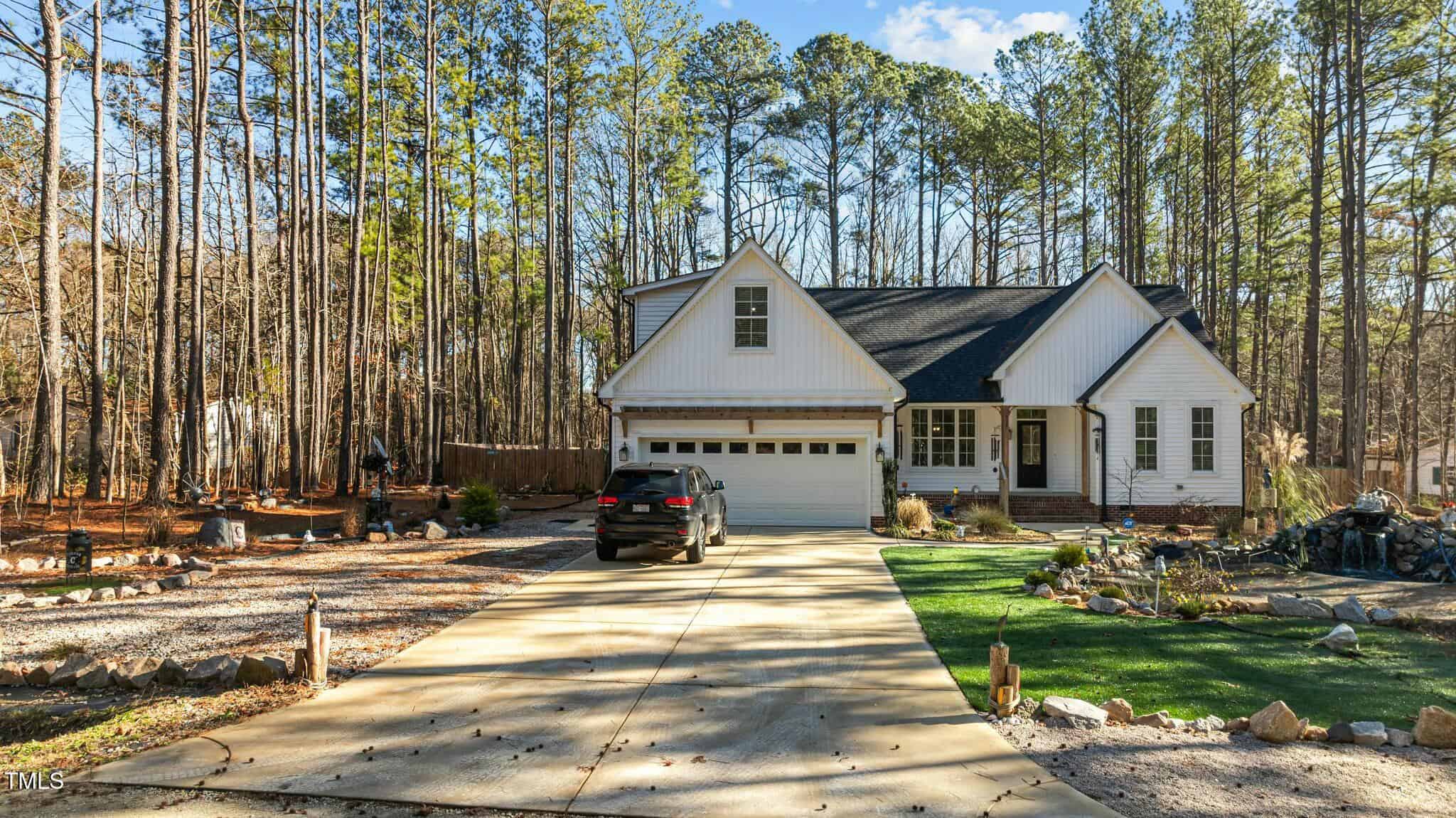 Welcome to 225 Rudd Rd in Youngsville, NC – a stunning 3-bedroom, 3-bathroom custom transitional 1.5-story home that offers the perfect combination of modern elegance and peaceful country living. With 2,033 square feet of thoughtfully designed space, this home features upgraded LVP flooring throughout the main floor, including the luxurious primary suite. The custom details are abundant, including a drop zone with a bench, cubbies, and hooks, as well as built-in wood cabinetry and shelving in the family room that add both functionality and charm. The heart of the home is the chef’s kitchen, complete with a custom center island featuring a granite top, sink, cabinetry, and seating – ideal for entertaining or family gatherings. The large primary suite offers a tranquil retreat, boasting a walk-in closet and a custom-tiled luxury bath. Outside, the Forever Green artificial turf in the front yard provides a lush, maintenance-free lawn year-round. Situated on a premium 2.05-acre lot, this property backs to a wooded buffer and stream, offering the ultimate in privacy and serene views. Despite its quiet, country feel, this home is conveniently located just minutes from downtown Youngsville and close to excellent shopping. Don’t miss your chance to own this exceptional property that perfectly blends style, comfort, and location.