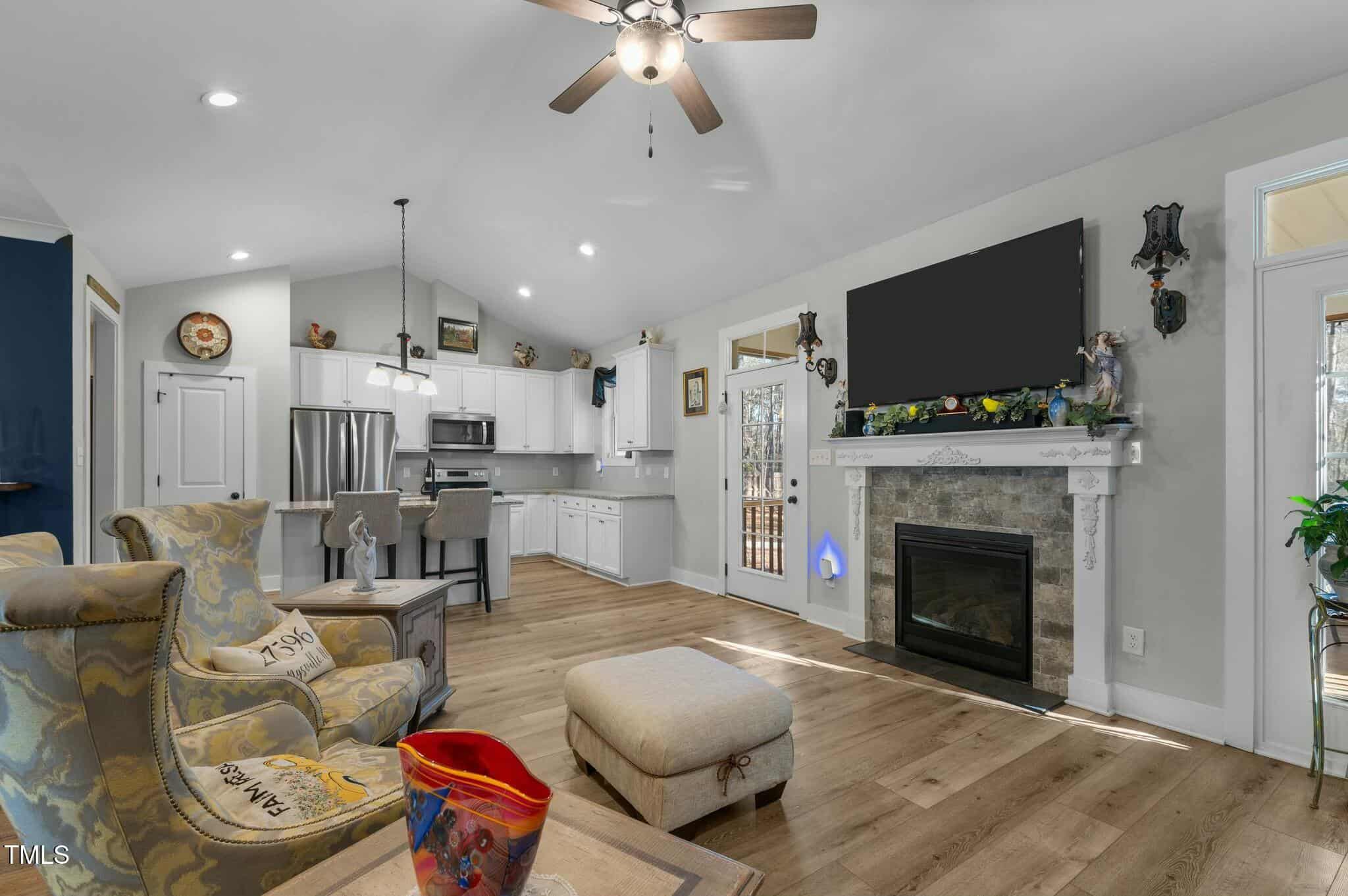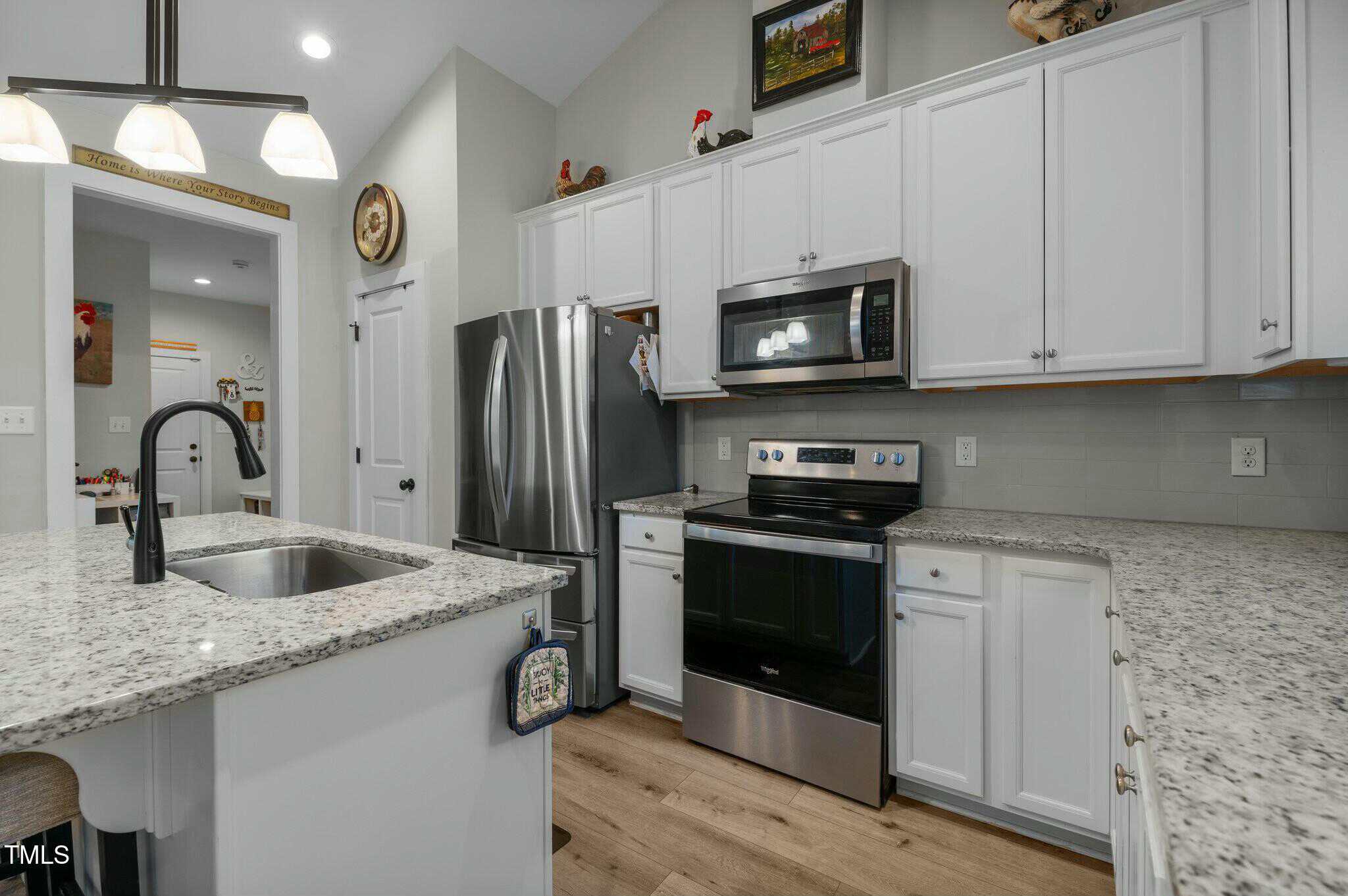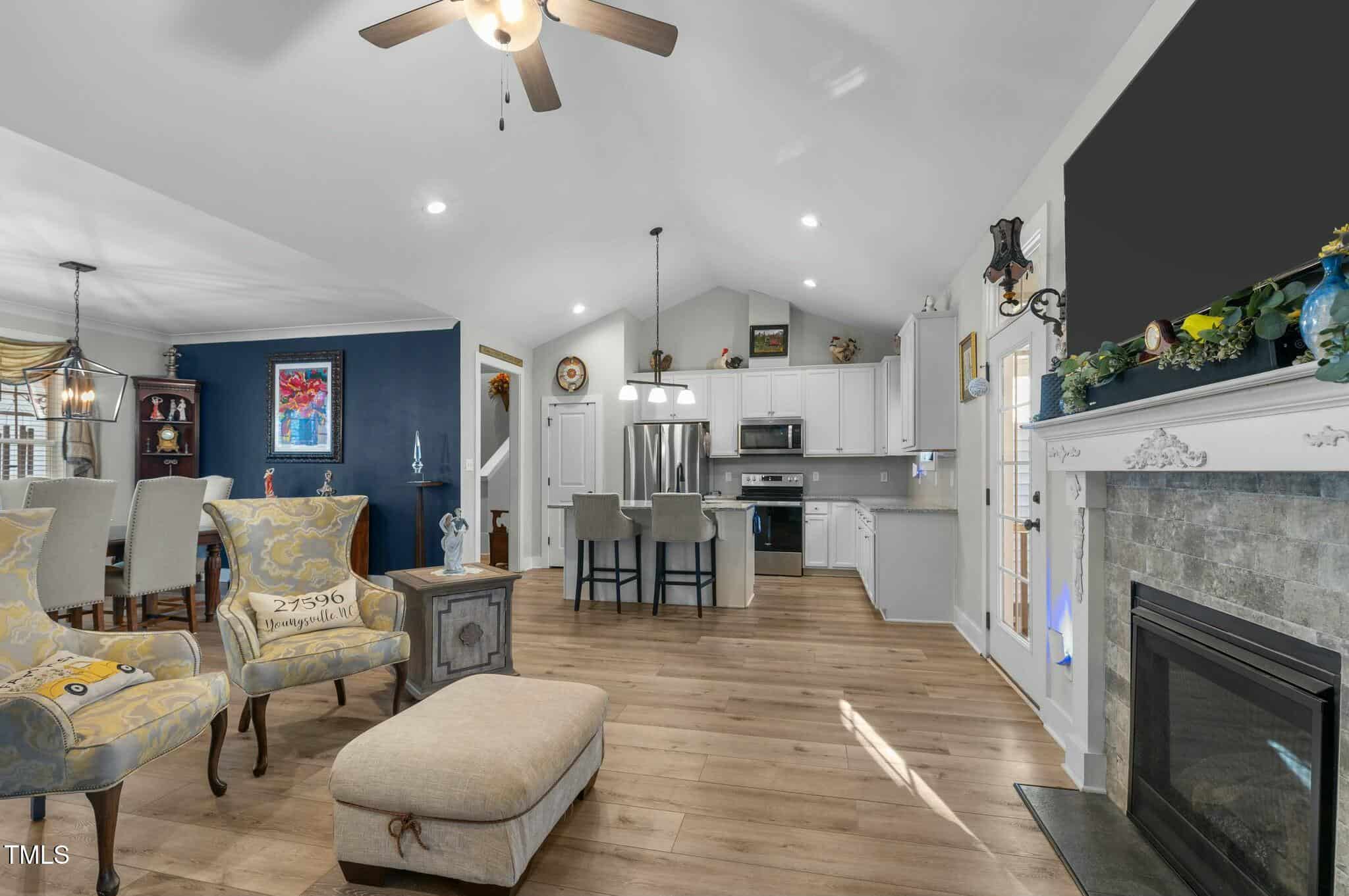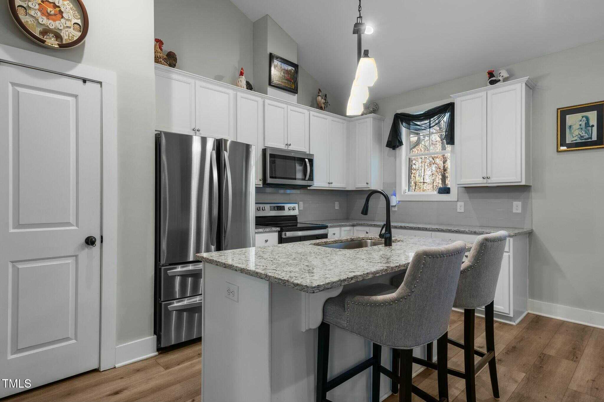 Welcome to 225 Rudd Rd in Youngsville, NC – a stunning 3-bedroom, 3-bathroom custom transitional 1.5-story home that offers the perfect combination of modern elegance and peaceful country living. With 2,033 square feet of thoughtfully designed space, this home features upgraded LVP flooring throughout the main floor, including the luxurious primary suite. The custom details are abundant, including a drop zone with a bench, cubbies, and hooks, as well as built-in wood cabinetry and shelving in the family room that add both functionality and charm. The heart of the home is the chef’s kitchen, complete with a custom center island featuring a granite top, sink, cabinetry, and seating – ideal for entertaining or family gatherings. The large primary suite offers a tranquil retreat, boasting a walk-in closet and a custom-tiled luxury bath. Outside, the Forever Green artificial turf in the front yard provides a lush, maintenance-free lawn year-round. Situated on a premium 2.05-acre lot, this property backs to a wooded buffer and stream, offering the ultimate in privacy and serene views. Despite its quiet, country feel, this home is conveniently located just minutes from downtown Youngsville and close to excellent shopping. Don’t miss your chance to own this exceptional property that perfectly blends style, comfort, and location.