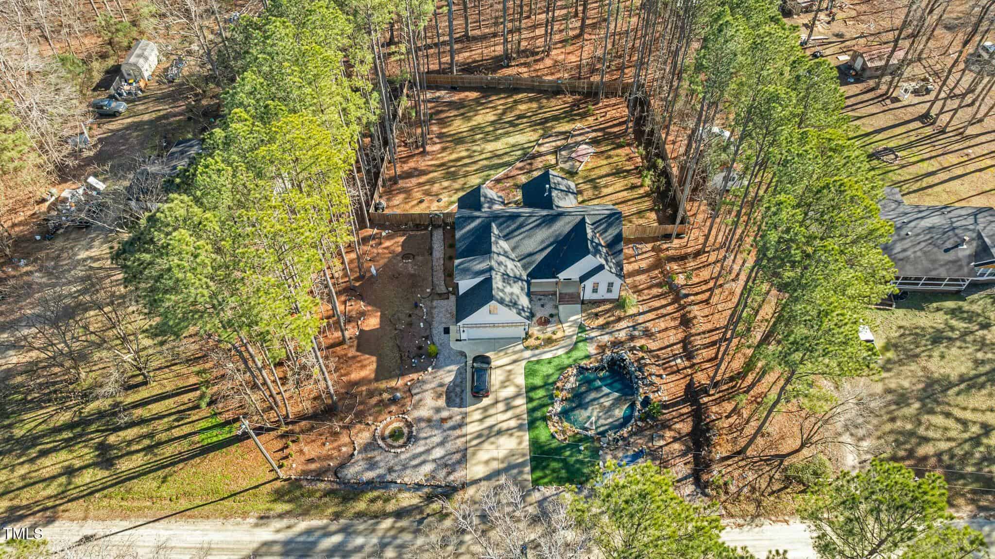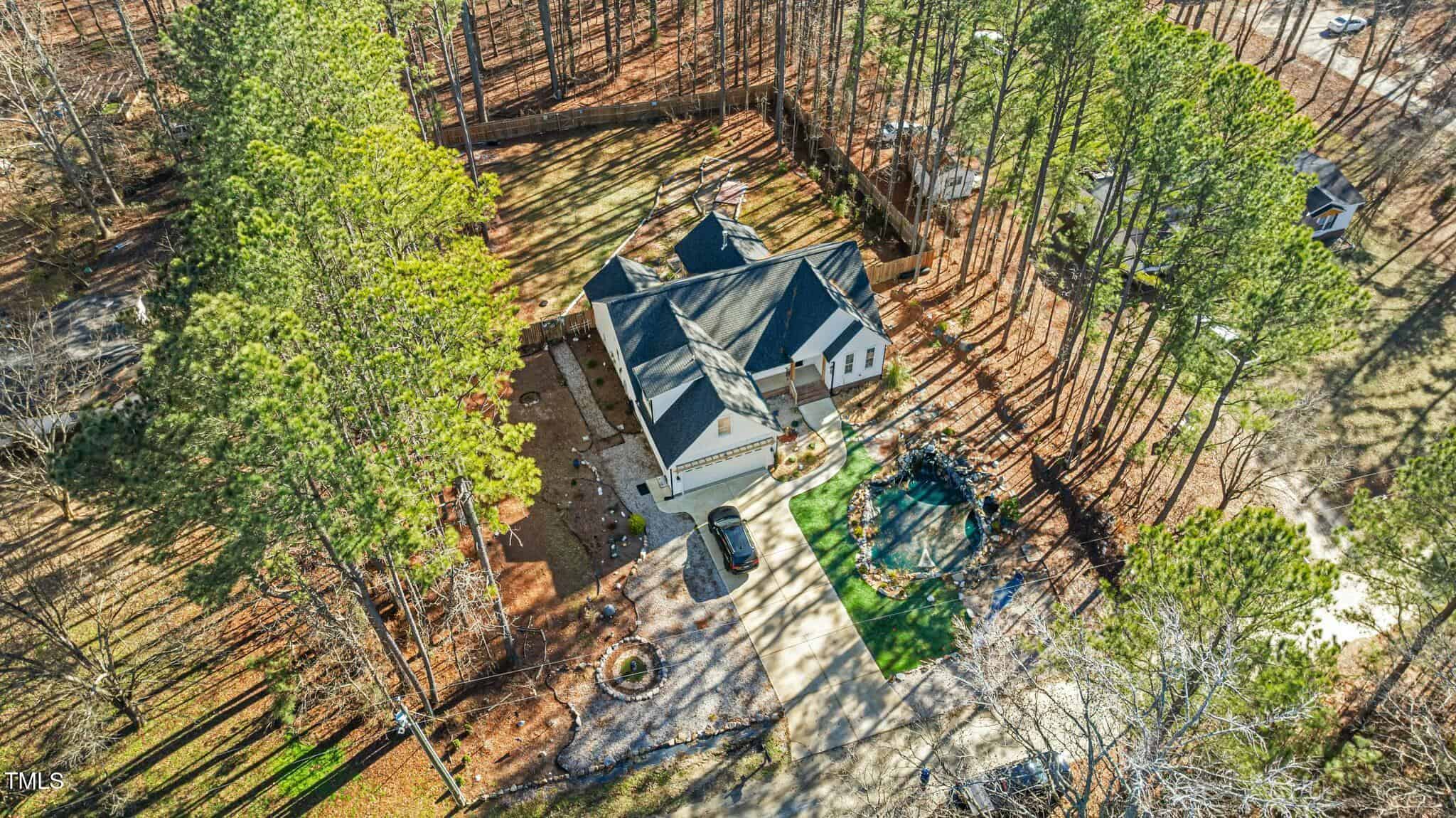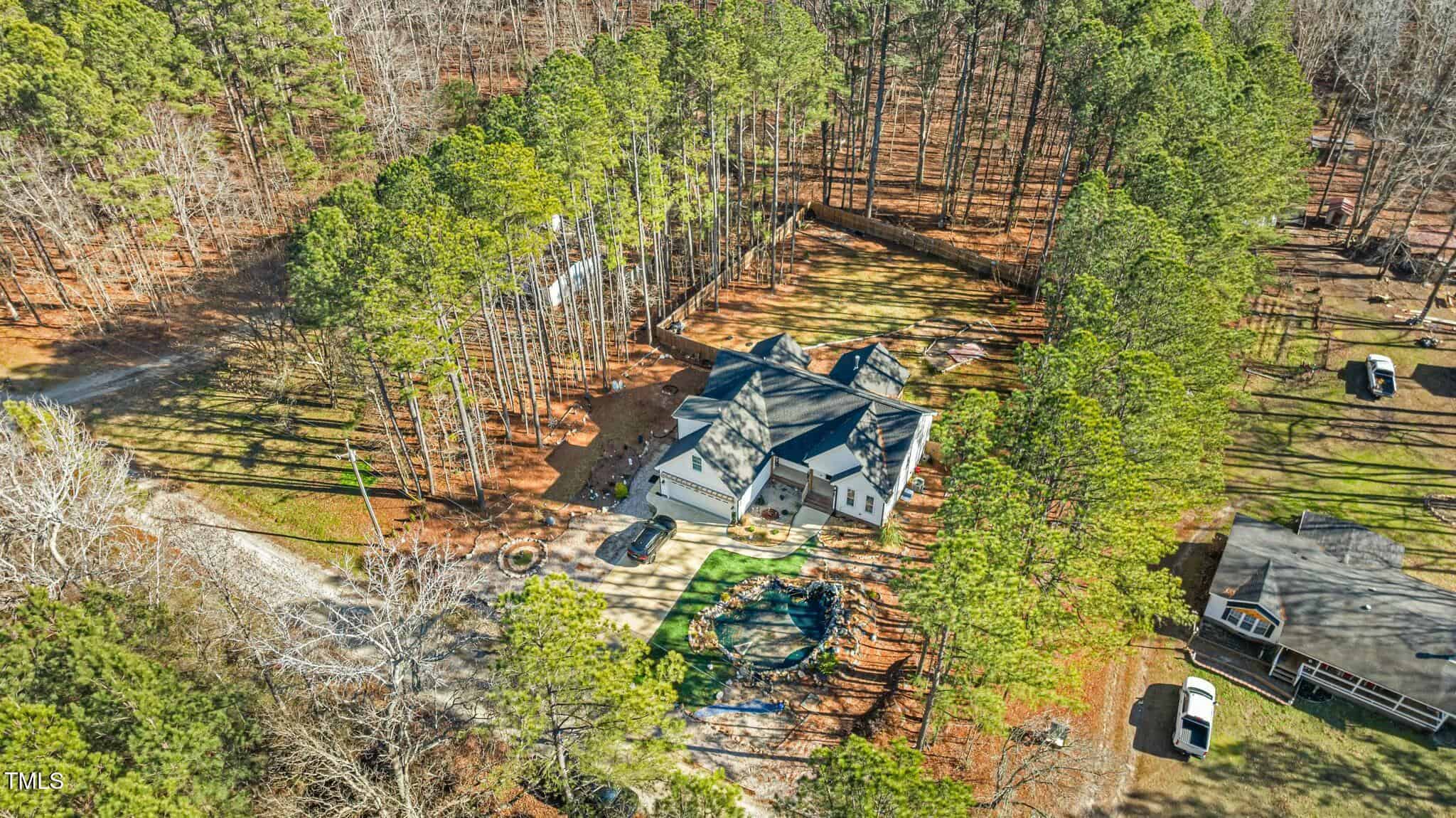 The heart of the home is the chef’s kitchen, complete with a custom center island featuring a granite top, sink, cabinetry, and seating – ideal for entertaining or family gatherings. The large primary suite offers a tranquil retreat, boasting a walk-in closet and a custom-tiled luxury bath. Outside, the Forever Green artificial turf in the front yard provides a lush, maintenance-free lawn year-round. Situated on a premium 2.05-acre lot, this property backs to a wooded buffer and stream, offering the ultimate in privacy and serene views. Despite its quiet, country feel, this home is conveniently located just minutes from downtown Youngsville and close to excellent shopping. Don’t miss your chance to own this exceptional property that perfectly blends style, comfort, and location.